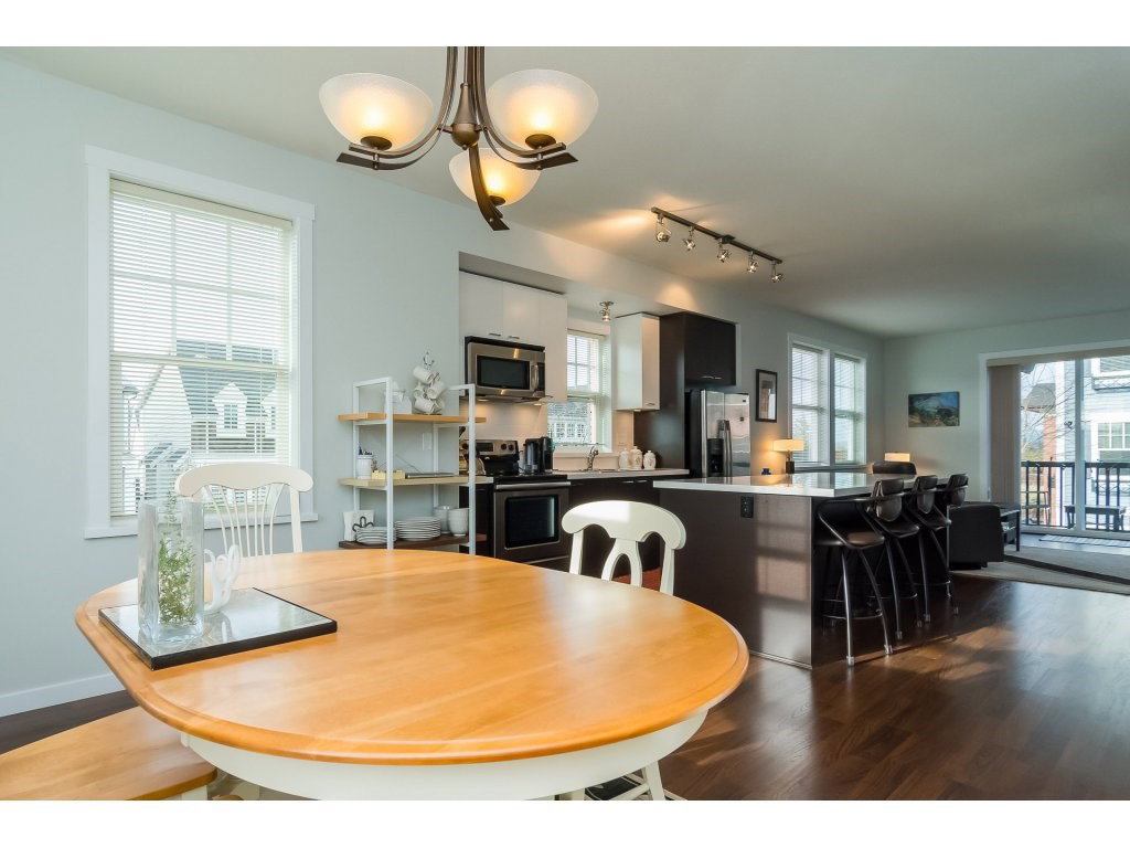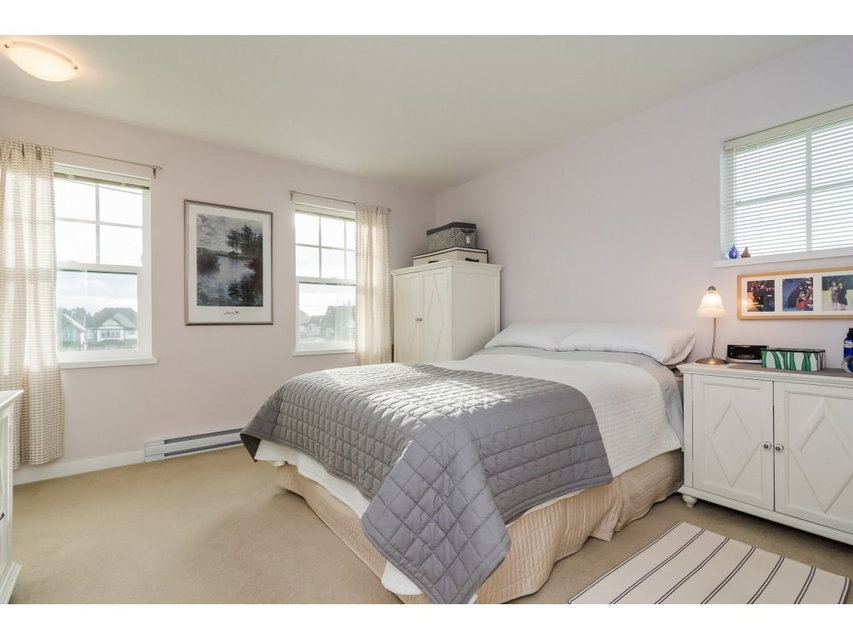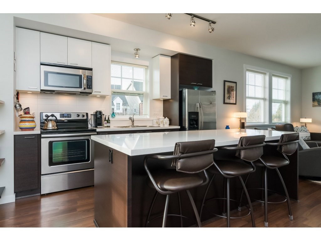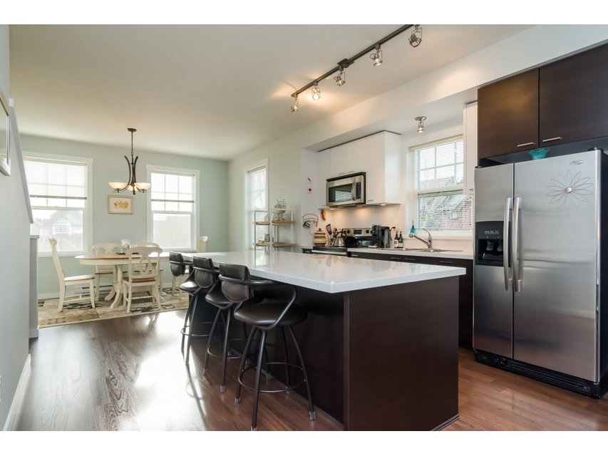 END UNIT OVERLOOKING PARK! Welcome to Knoll, a small, 40 unit complex on a dead end street, nestled between a farm with a picturesque red barn, and a park. This unit boasts North Shore Mountain views from the back, and views of Mount Baker from the front. This 2 bed plus den (easily converted into a 3rd bedroom) features a side door entrance opening into a spacious foyer and a large den. The main floor is open, features a centre kitchen with stainless steel, silestone counters and an oversize kitchen island, and has lots of windows with views galore! Large bedrooms upstairs both have large closets and more stunning views. This is a quiet, delightful complex. OPEN HOUSES: Sat Jan 13th & Sun Jan 14th 2-4pm.