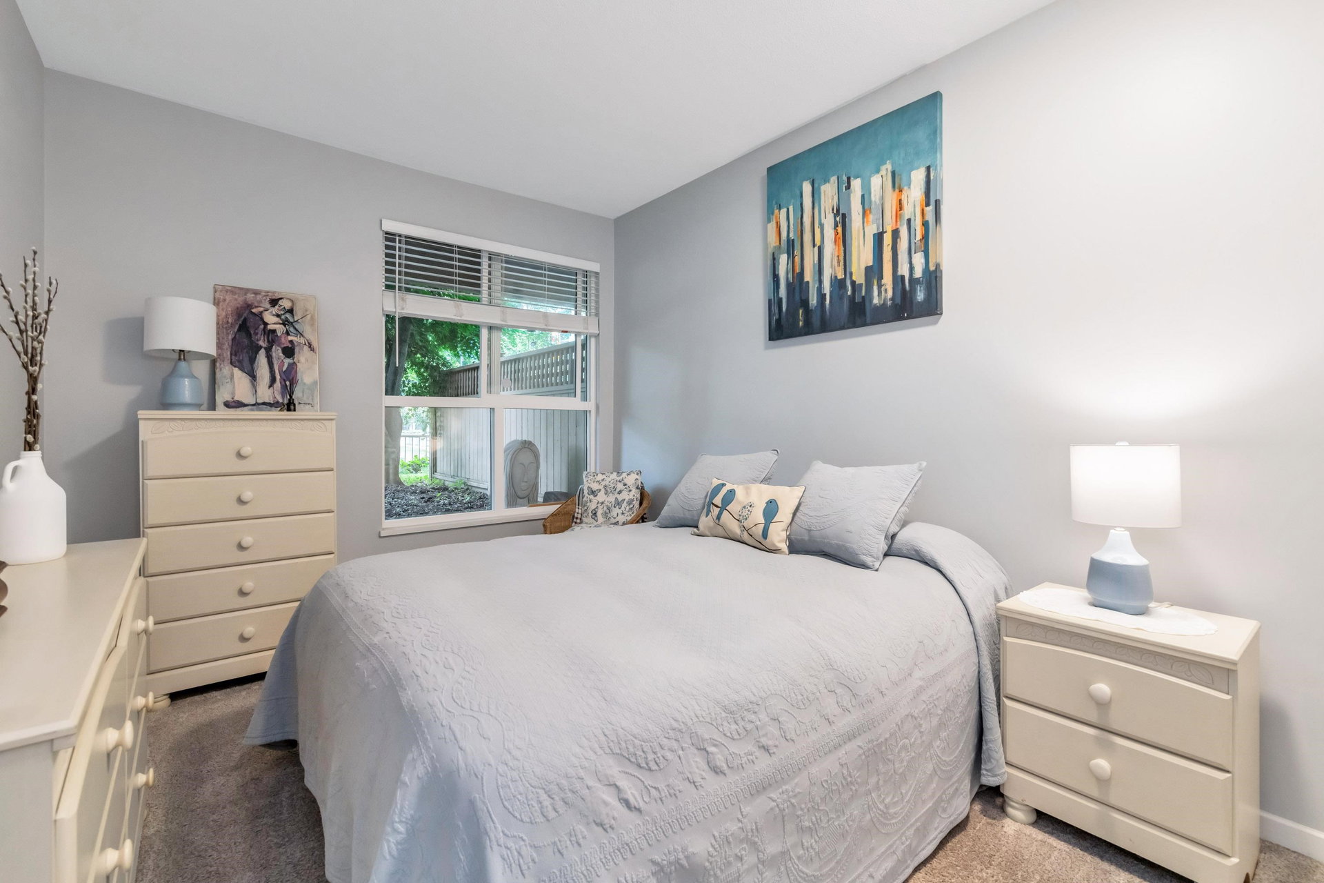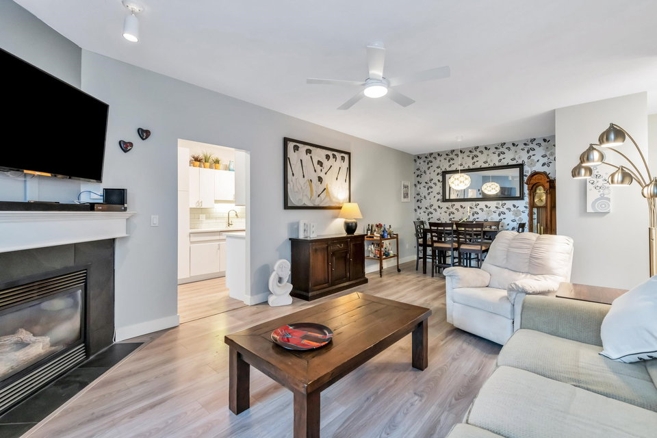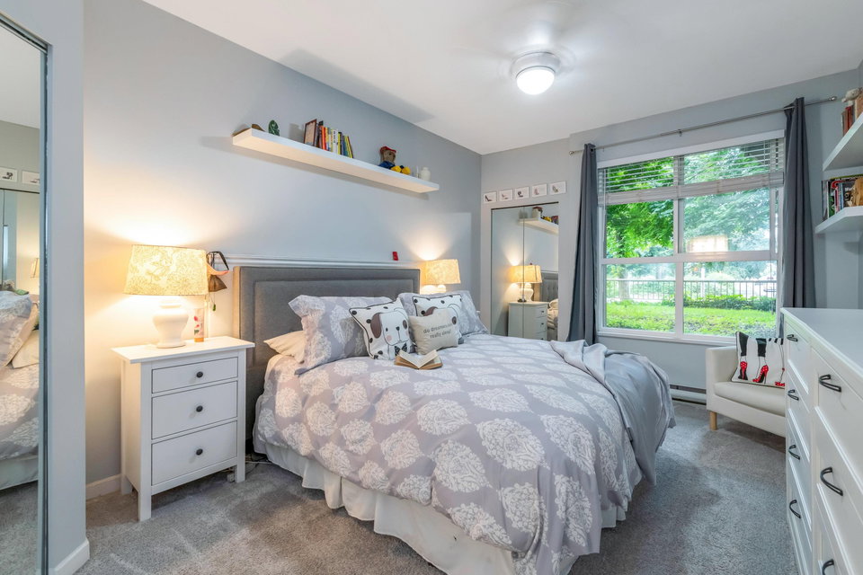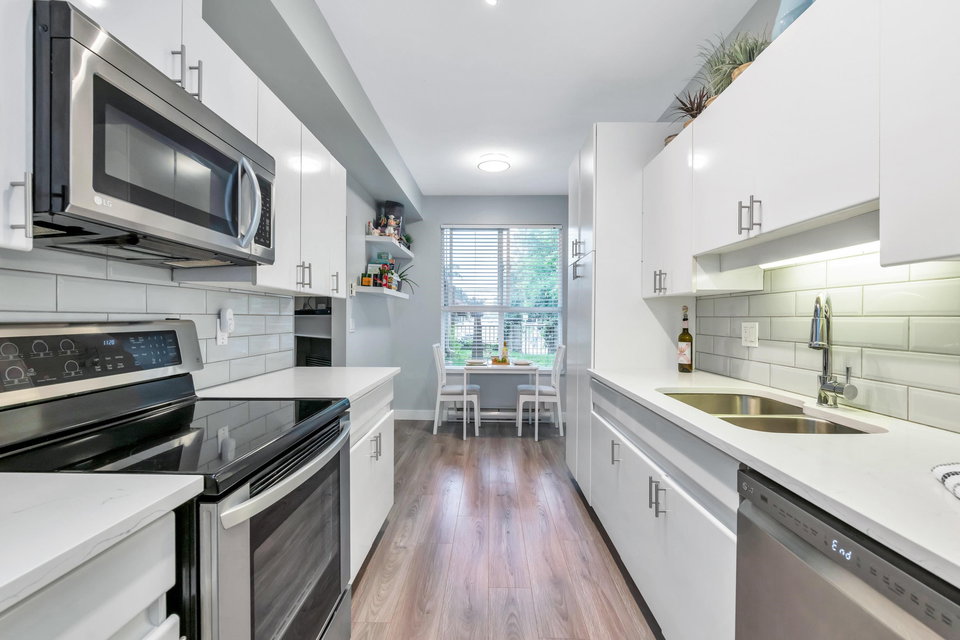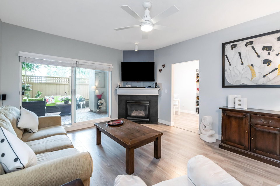 WELCOME HOME to this bright, 2 BED, 2 BATH ground floor unit WITH FULLY FENCED YARD, and extensively RENOVATED. Updates include fresh paint, all new flooring (laminate, carpet & tile), updated bathrooms and kitchen and all appliances (including washer & dryer) in 2020. This spacious unit boasts a separate laundry room, additional cabinetry in the kitchen and laundry and leads out to a fully fenced patio area – great for the pet lover! Centrally located just steps from Guildford Mall, 1 parking spot, 1 storage locker, pets ok, gas included. Call today and make this your new home!