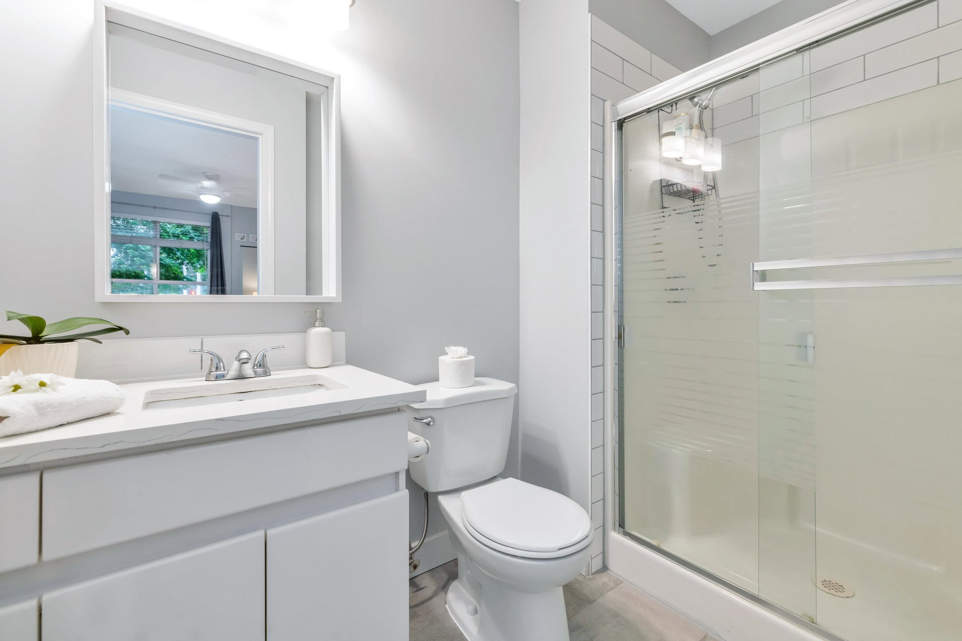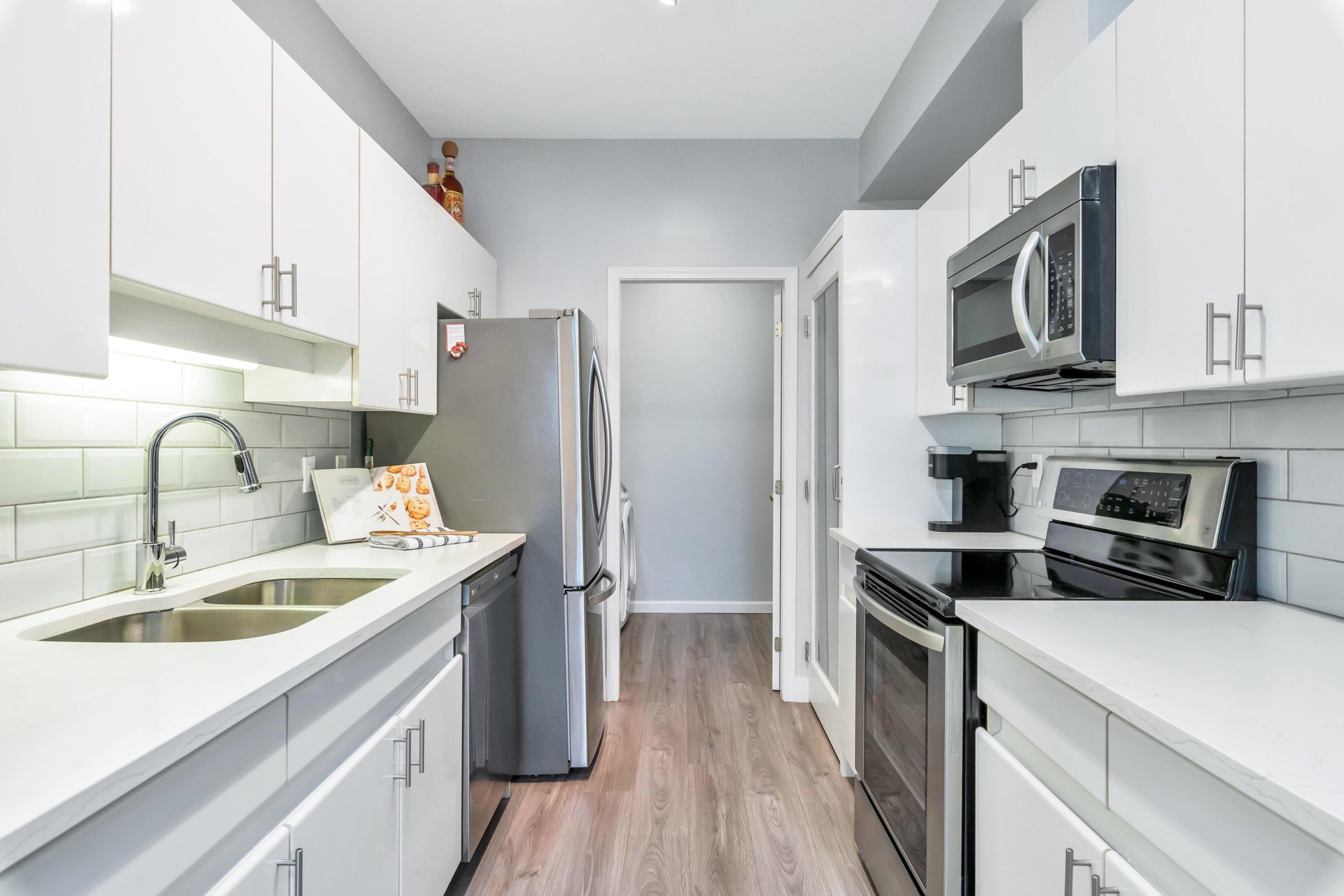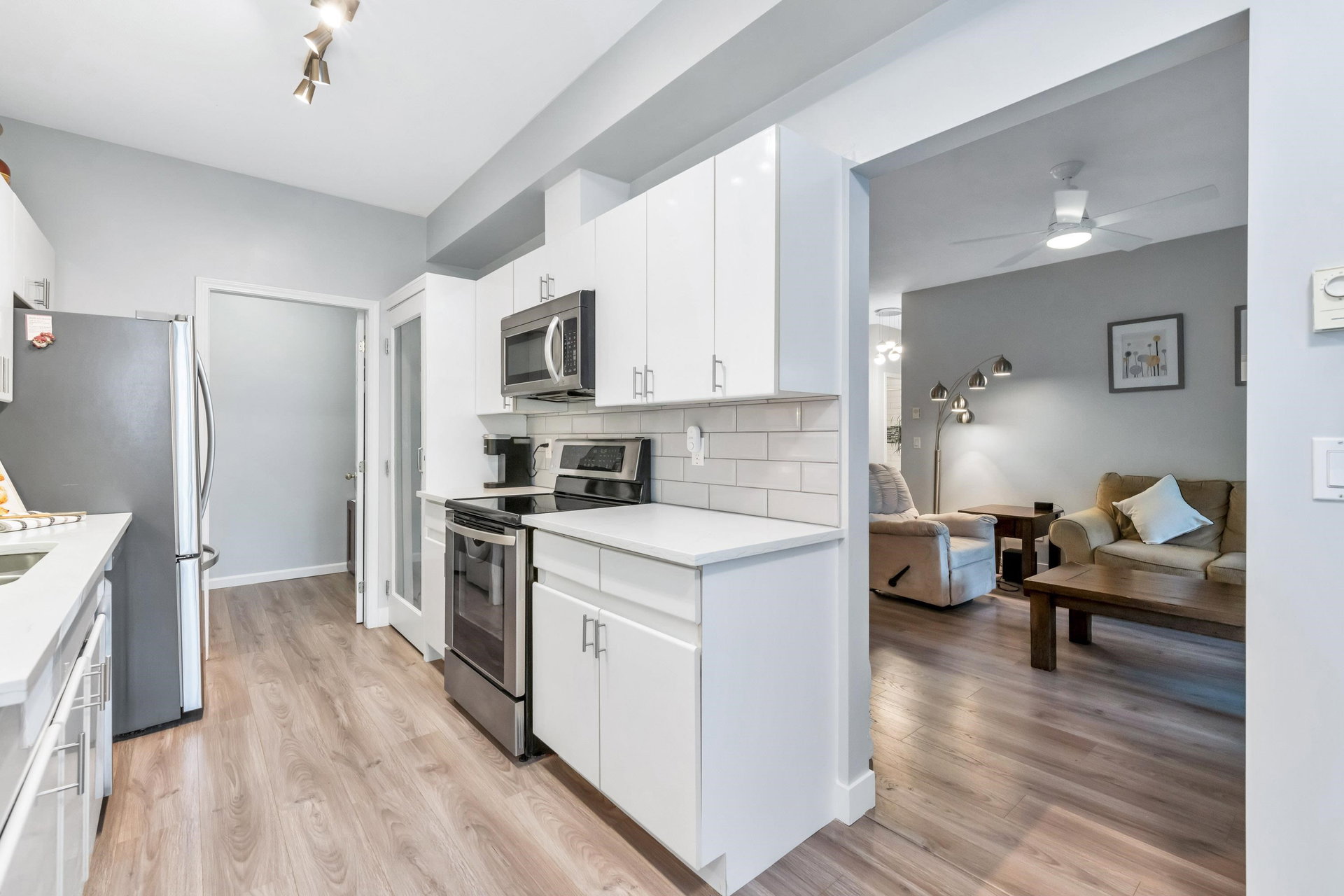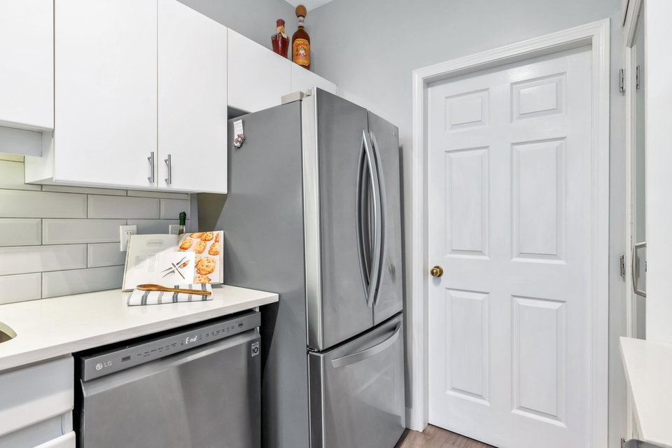 WELCOME HOME to this bright, 2 BED, 2 BATH ground floor unit WITH FULLY FENCED YARD, and extensively RENOVATED. Updates include fresh paint, all new flooring (laminate, carpet & tile), updated bathrooms and kitchen and all appliances (including washer & dryer) in 2020. This spacious unit boasts a separate laundry room, additional cabinetry in the kitchen and laundry and leads out to a fully fenced patio area – great for the pet lover! Centrally located just steps from Guildford Mall, 1 parking spot, 1 storage locker, pets ok, gas included. Call today and make this your new home!