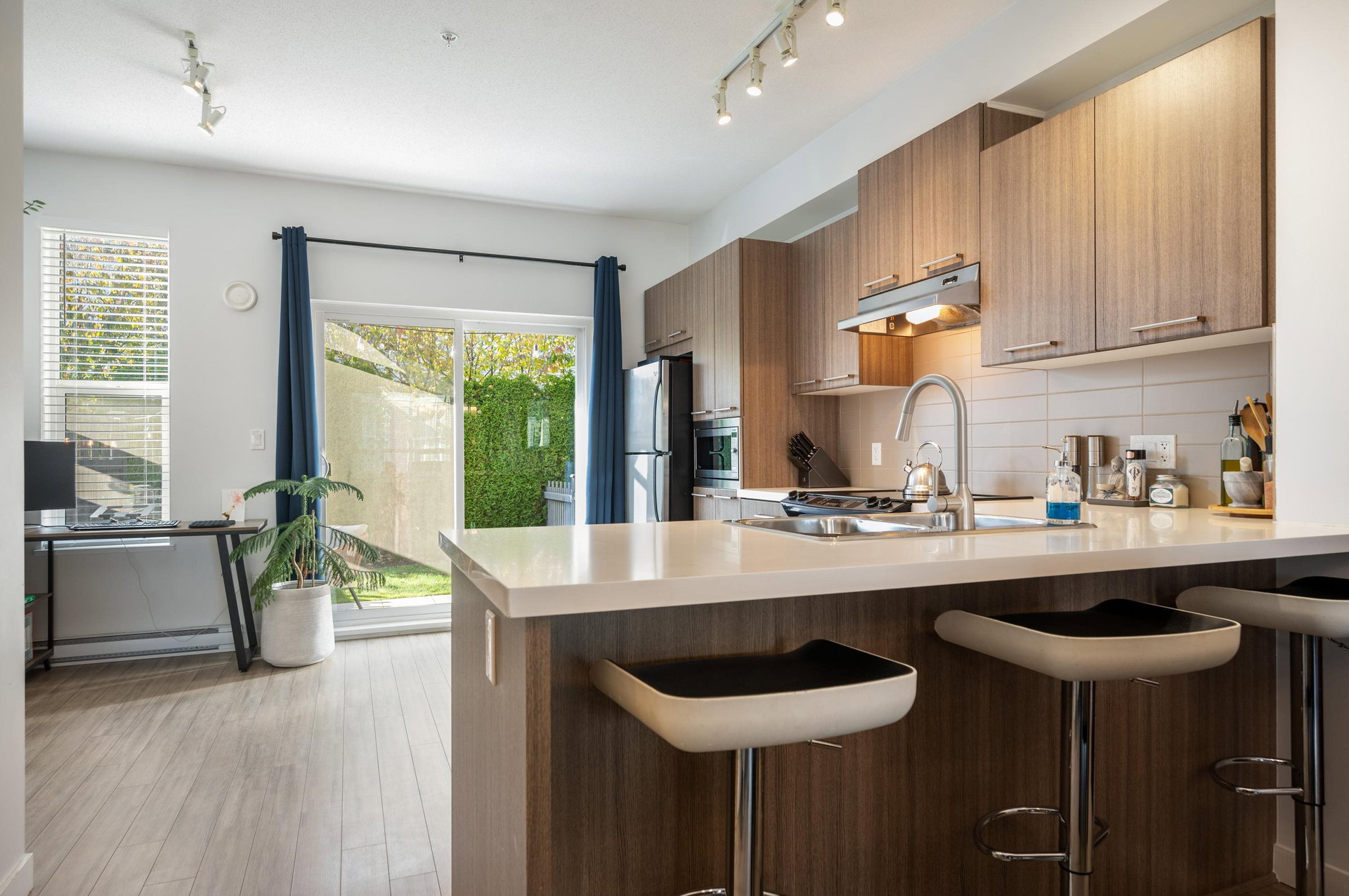 WELCOME HOME to this delightful 2 bedroom, 2 bathroom home located in Red Maple Park, built by one of BC’s leading homebuilders – Polygon. Nicely situated in the complex and away from busy streets, this home has only had 1 owner and boasts an enviable fully fenced, raised backyard accessed off the kitchen. The addition of built ins around fireplace adds a nice touch plus bonus extra storage. Eat-in kitchen, granite, stainless steel appliances and laminate. 2 spacious bedrooms upstairs plus washer & dryer, screens, updated blinds throughout as well as an extension of the patio. Conveniently located within walking distance to schools, groceries, transit and more. Call today and make this cute house your new home!