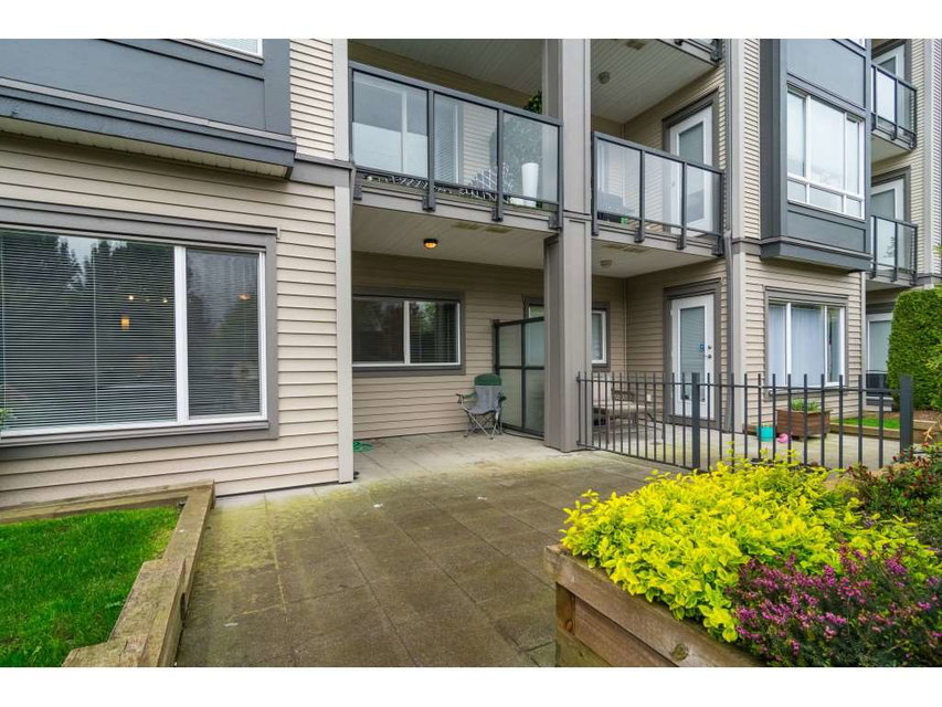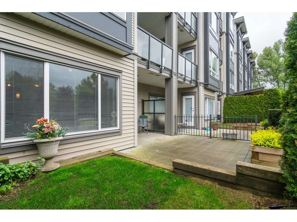 INVESTOR & FIRST TIME BUYER ALERT! WELCOME to this 1 bedroom PLUS DEN in EDGEWOOD located in the heart of Abbotsford, on the quiet side of the building facing a cul-de-sac. This ground floor unit boasts a large, fenced patio/yard so pet lovers – this is for you! Enjoy an open layout with kitchen flowing to dining and living room overlooking the patio. Bedroom with walk in closet and a den for you storage or office. Call today and make this your new home. Rentals ok!