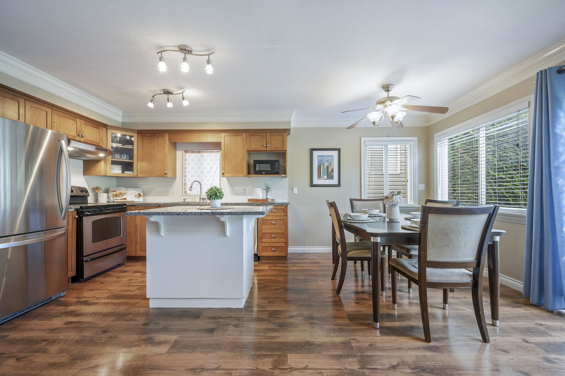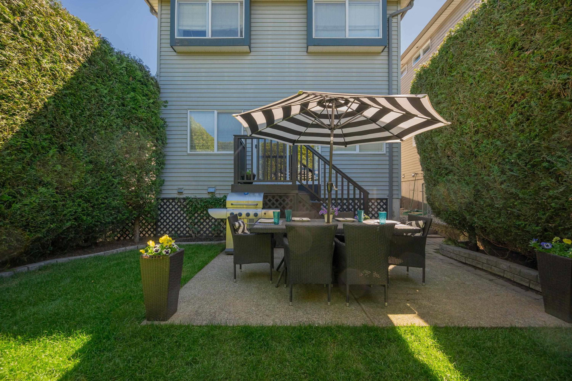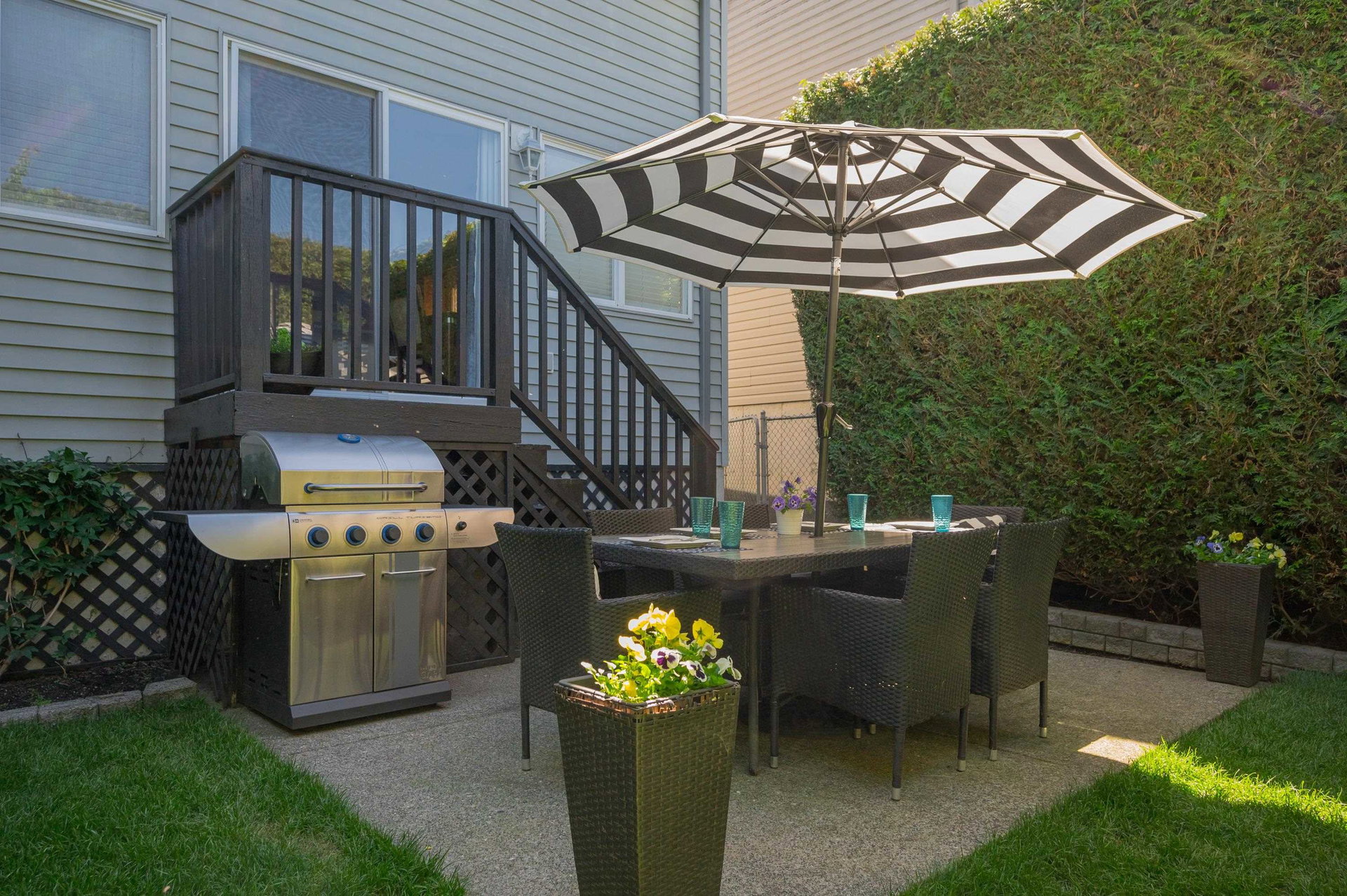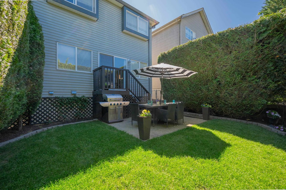 WELCOME HOME to this delightful 4 bed-3-bath home in HYLAND CREEK, a quiet family oriented neighbourhood within walking distance to schools, community centre, shopping & transit. This 3-level home boasts an open kitchen, eating & family area & lots of windows overlooking very private backyard, plus a separate living room. Upstairs features spacious primary suite with sliders onto deck with mountain views and a freshly renovated primary bathroom + FLEX/DEN. The basement has the bonus of a rec room plus a 4th bedroom, along with laundry. Updates to this beautiful home include a newer roof, an expanded driveway, newer fittings on pex plumbing, a newer washer/dryer and new hot water tank and furnace. 3 cats and/or dogs permitted.