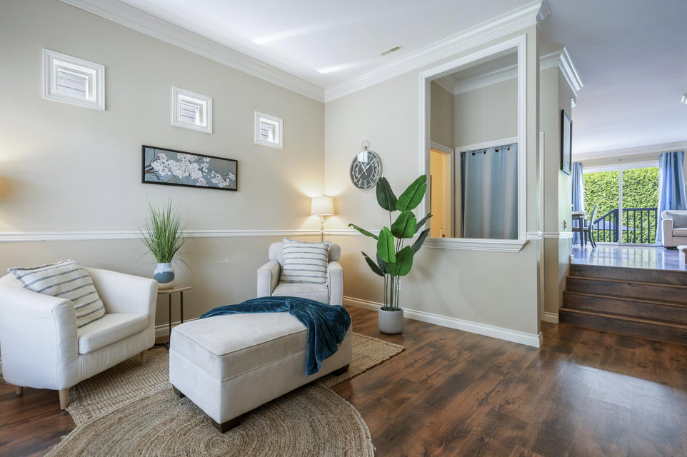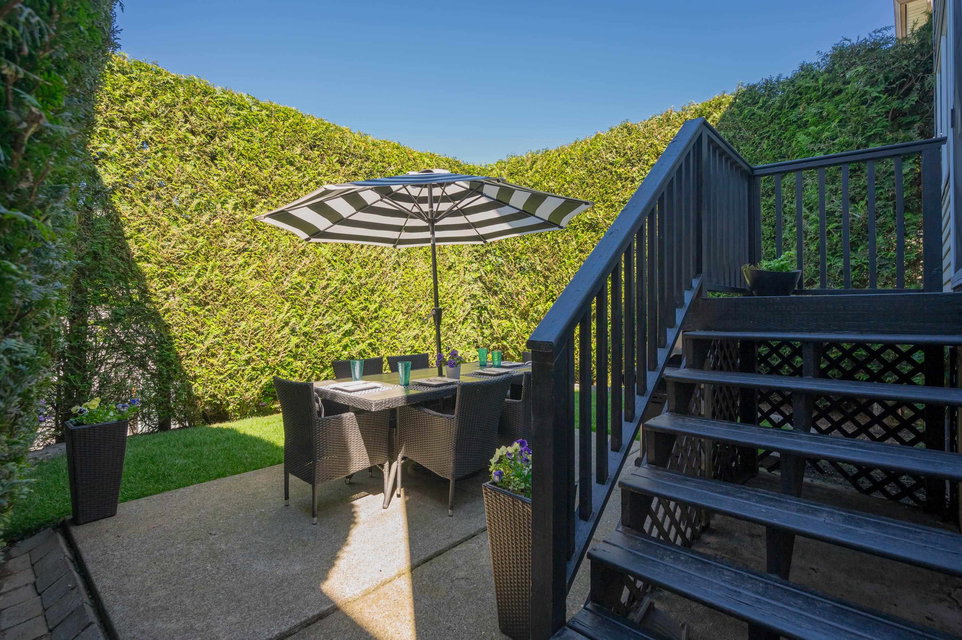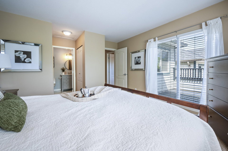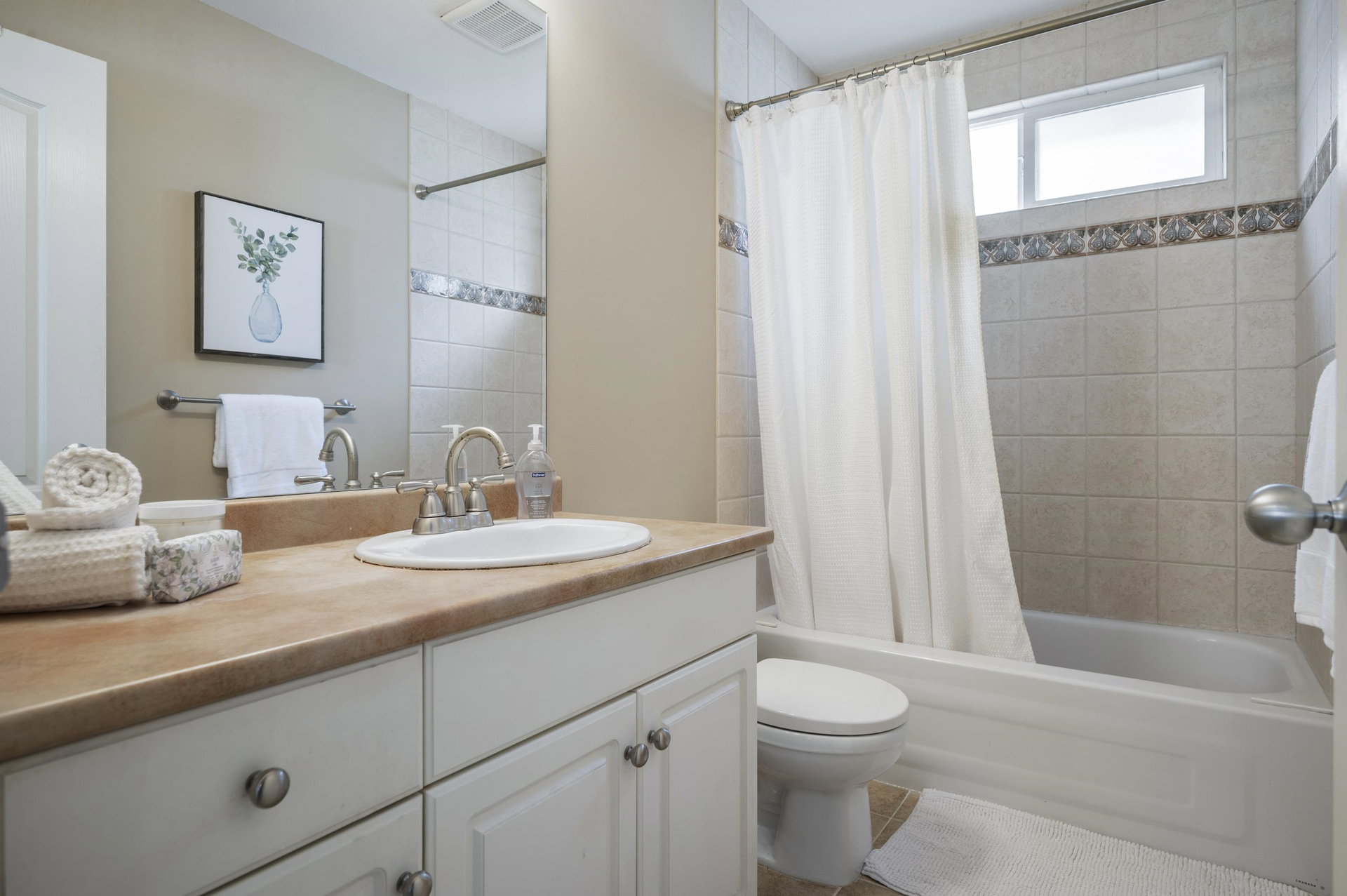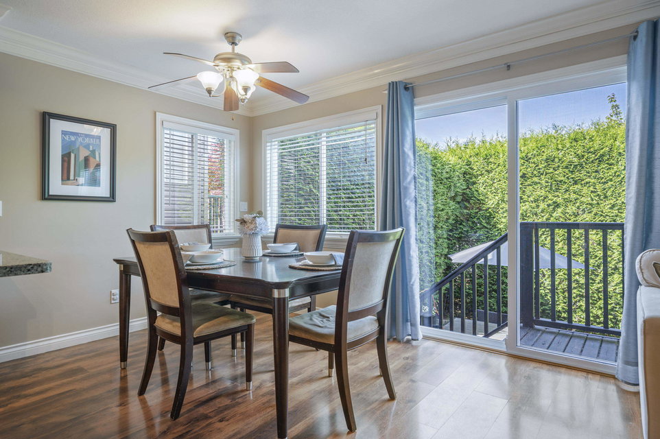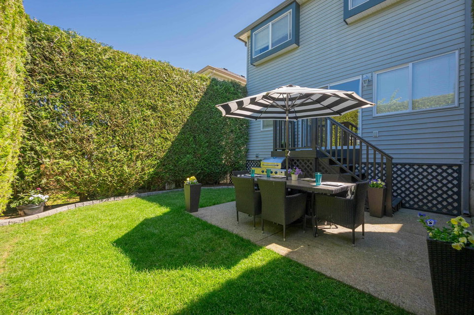 WELCOME HOME to this delightful 4 bed-3-bath home in HYLAND CREEK, a quiet family oriented neighbourhood within walking distance to schools, community centre, shopping & transit. This 3-level home boasts an open kitchen, eating & family area & lots of windows overlooking very private backyard, plus a separate living room. Upstairs features spacious primary suite with sliders onto deck with mountain views and a freshly renovated primary bathroom + FLEX/DEN. The basement has the bonus of a rec room plus a 4th bedroom, along with laundry. Updates to this beautiful home include a newer roof, an expanded driveway, newer fittings on pex plumbing, a newer washer/dryer and new hot water tank and furnace. 3 cats and/or dogs permitted.