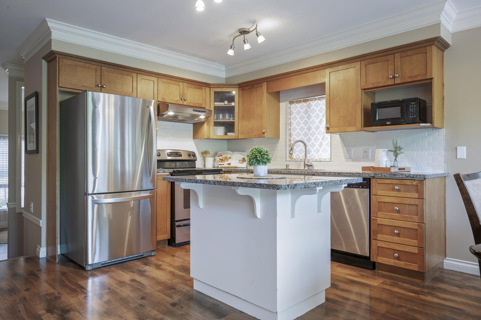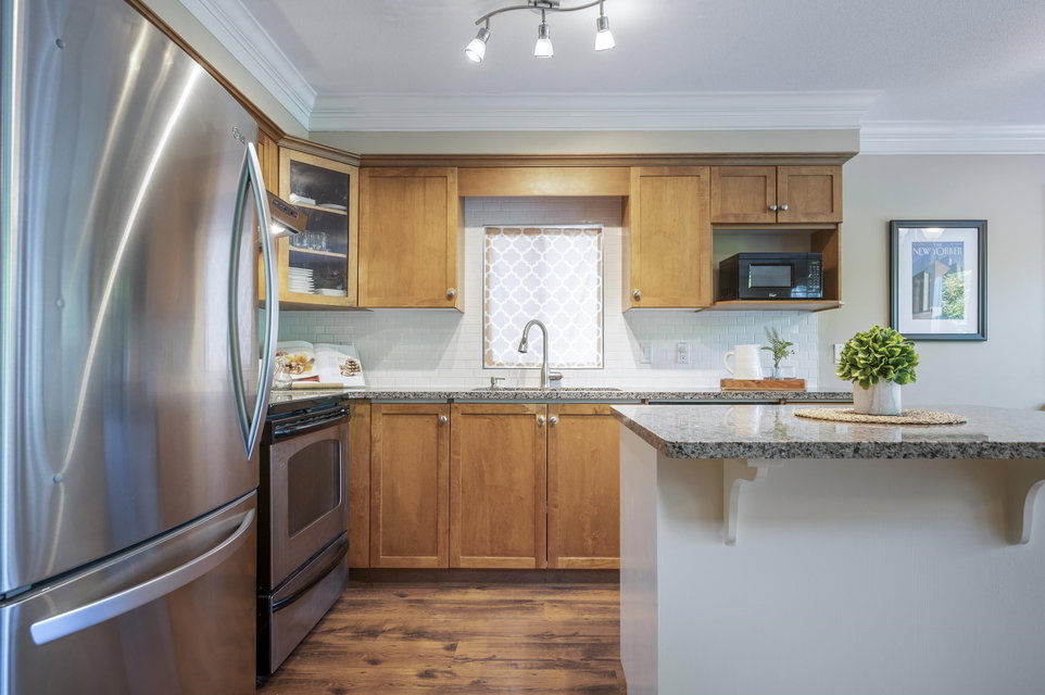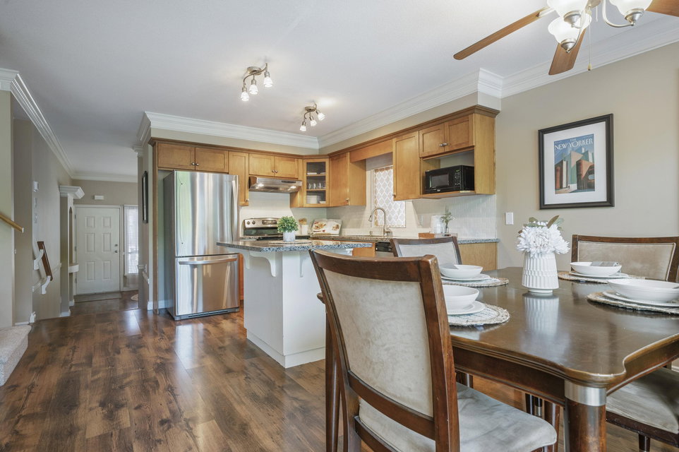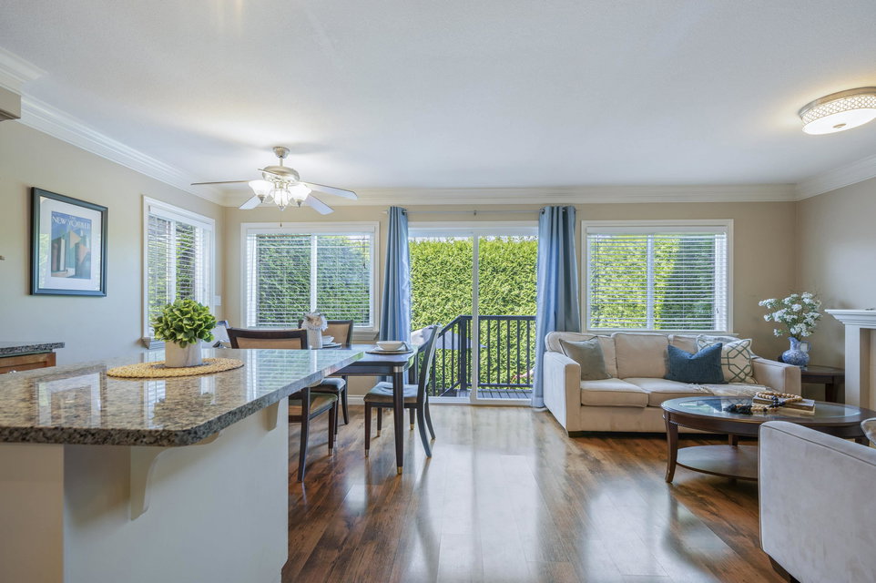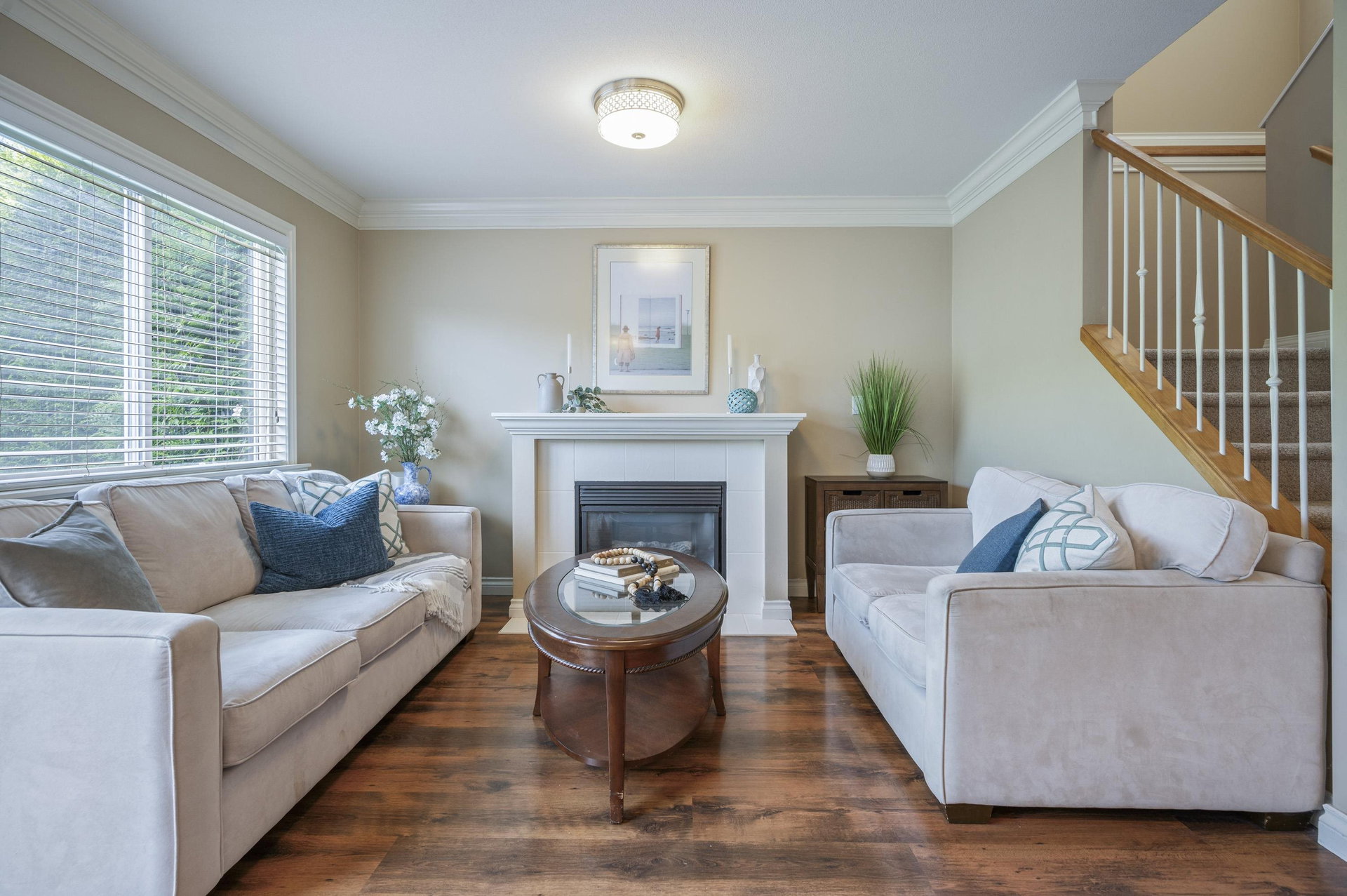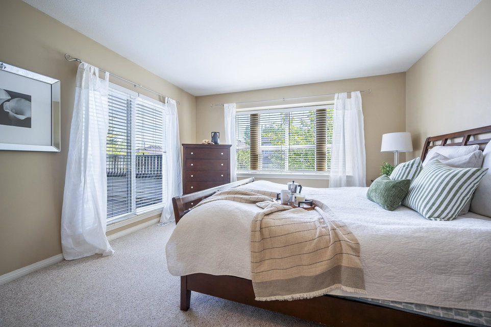 WELCOME HOME to this delightful 4 bed-3-bath home in HYLAND CREEK, a quiet family oriented neighbourhood within walking distance to schools, community centre, shopping & transit. This 3-level home boasts an open kitchen, eating & family area & lots of windows overlooking very private backyard, plus a separate living room. Upstairs features spacious primary suite with sliders onto deck with mountain views and a freshly renovated primary bathroom + FLEX/DEN. The basement has the bonus of a rec room plus a 4th bedroom, along with laundry. Updates to this beautiful home include a newer roof, an expanded driveway, newer fittings on pex plumbing, a newer washer/dryer and new hot water tank and furnace. 3 cats and/or dogs permitted.