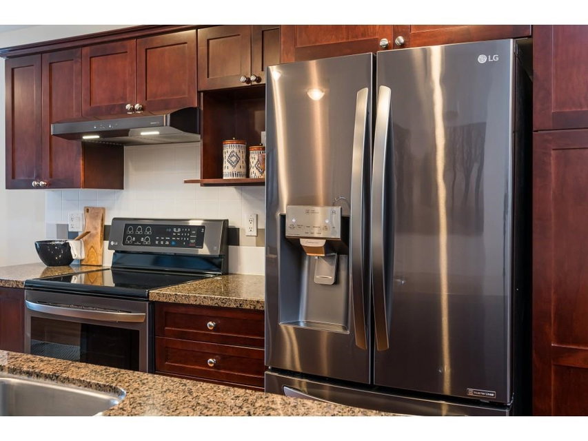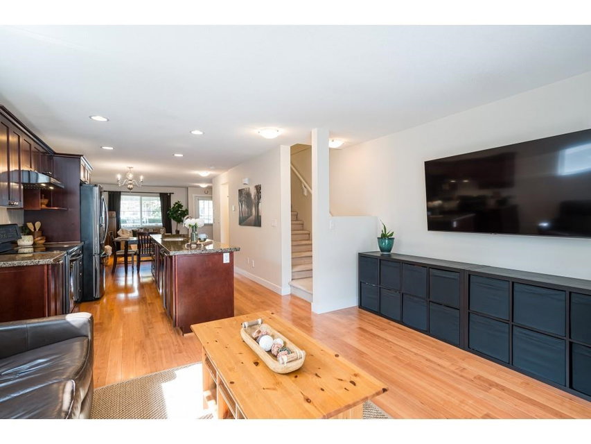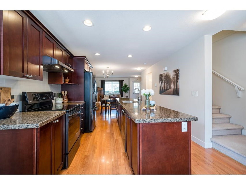 WELCOME HOME to this END UNIT 3 bedroom, 2 bathroom home in the heart of Cloverdale, located just a few blocks away from Katzie Elementary School. The open concept main floor has access from street level or from the tandem garage level. Laminate flooring and granite counters plus all new appliances (including washer & dryer) in black stainless with a large, covered deck off the living room. Carlisle is a family friendly complex located close to duck pond, transit, shopping, mall and Fraser Highway. Appliances 2020, H20 tank 2016 and maintained every 2nd year. Driveway fits a truck! Call today and make this house your new home!
