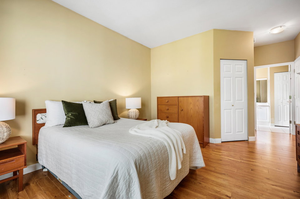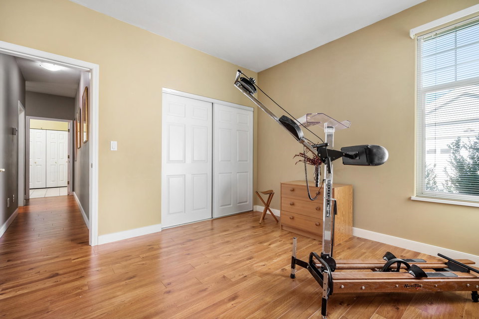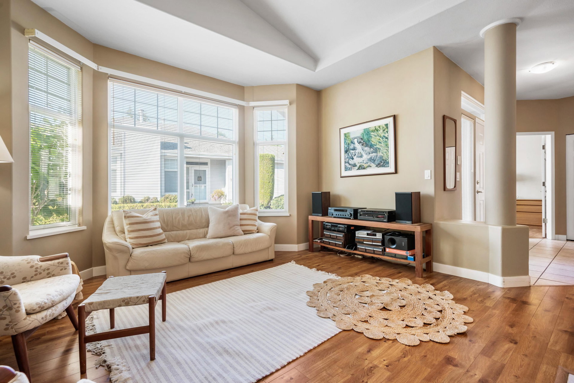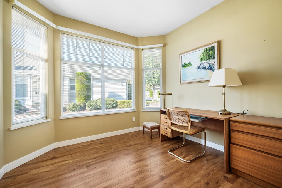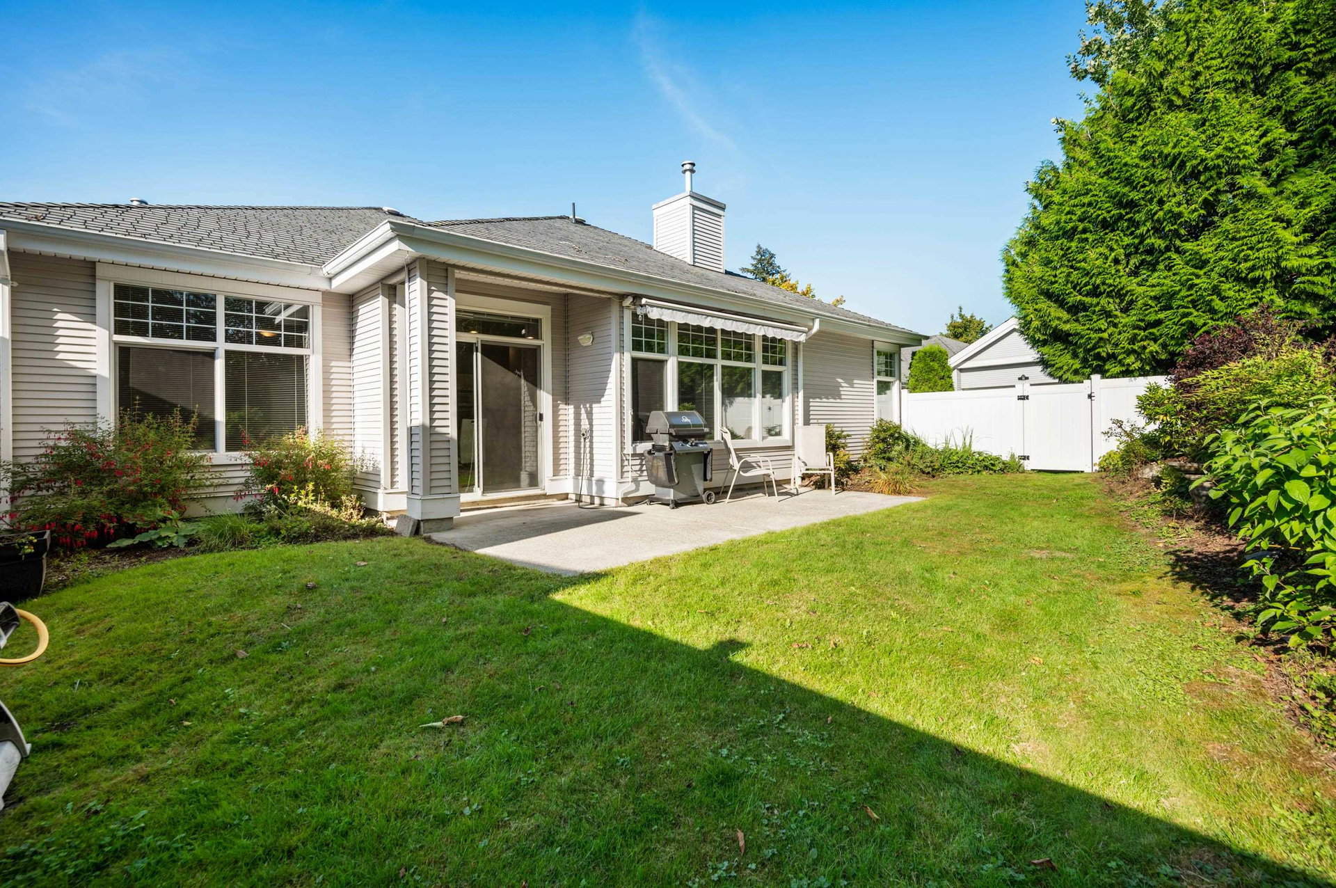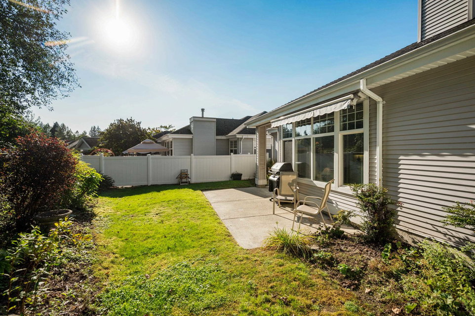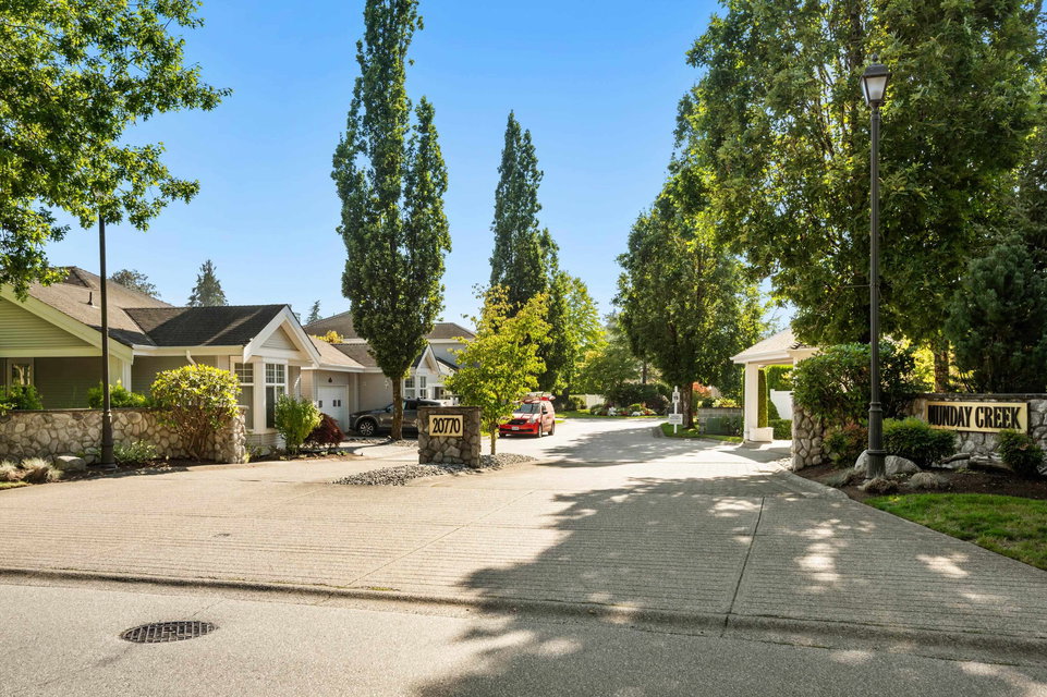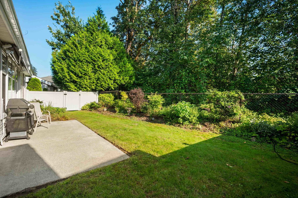 WELCOME HOME to this RARE DETACHED 1-LEVEL TOWNHOUSE in coveted Munday Creek; a 55+ complex in the heart of Walnut Grove. This delightful 2 bedroom, 2 bathroom home is nestled in the quiet part of the complex backs onto GREENBELT for quiet and privacy. Featuring vaulted ceilings in both the living room and dining room, you will be delighted with the bright and spacious bonus DEN. Bonus features include DOUBLE CAR SIDE-BY-SIDE GARAGE plus 1 parking spot on the driveway; radiant heat throughout and hot water on demand as well as a newer fridge and washing machine. Munday Creek has a thriving Social Committee including Bingo, Craft/Bake Sales, a Walking Group, Card Playing Group and more. 2 pets ok. Call today and make this house your new home!