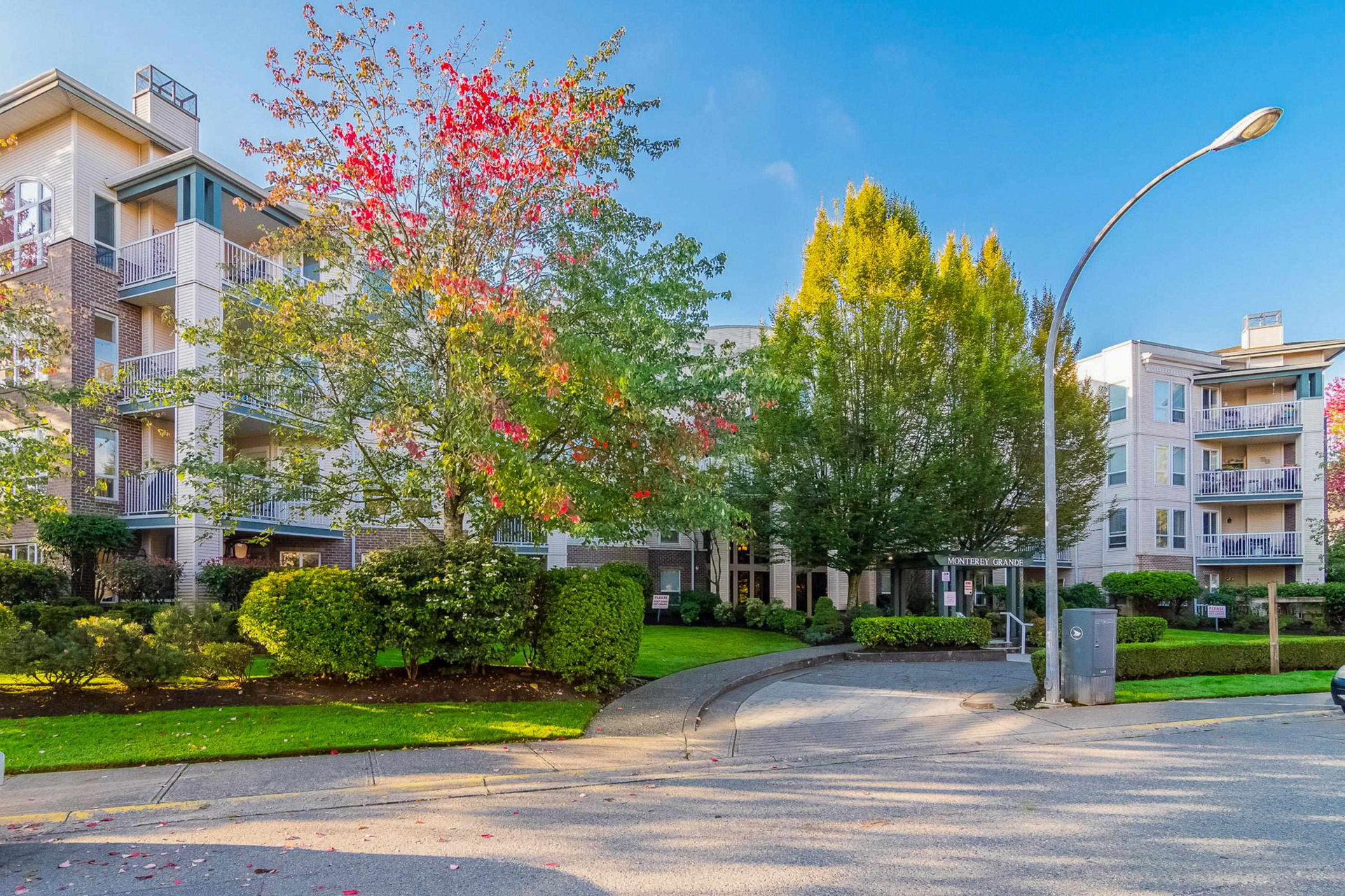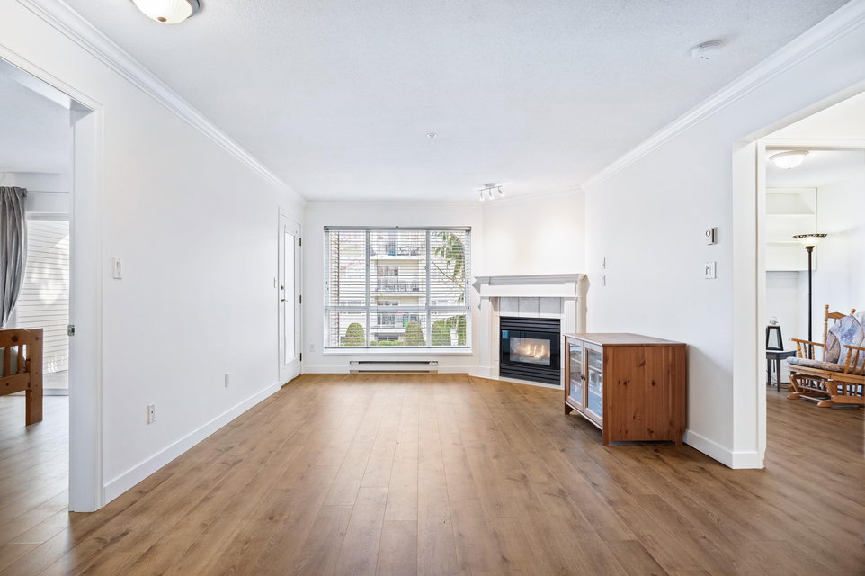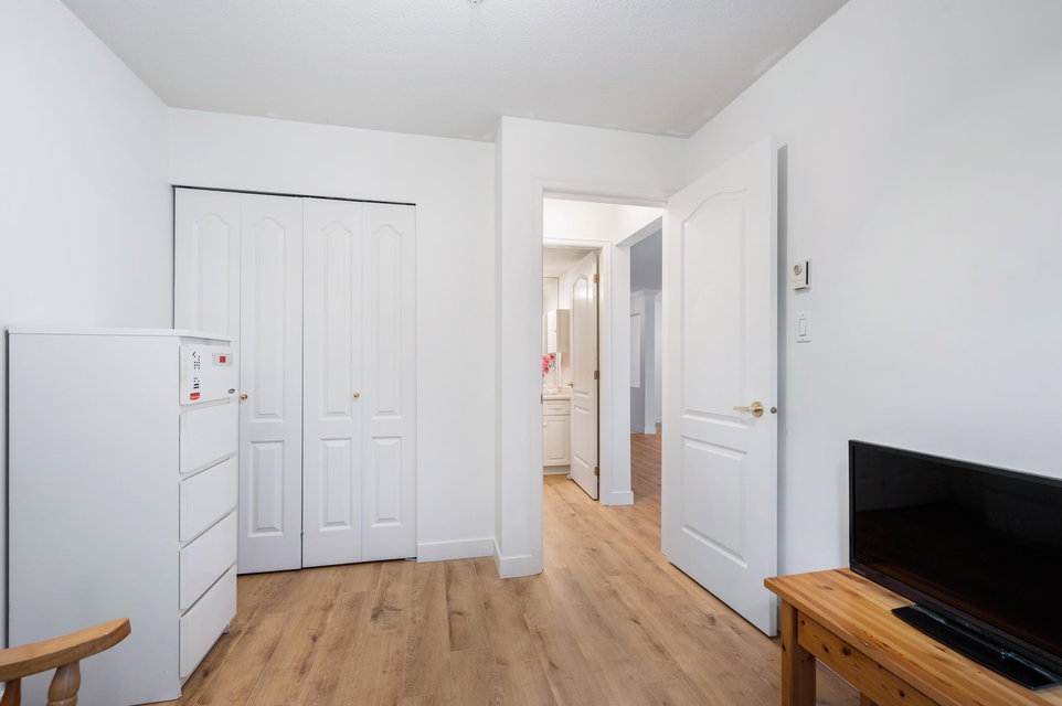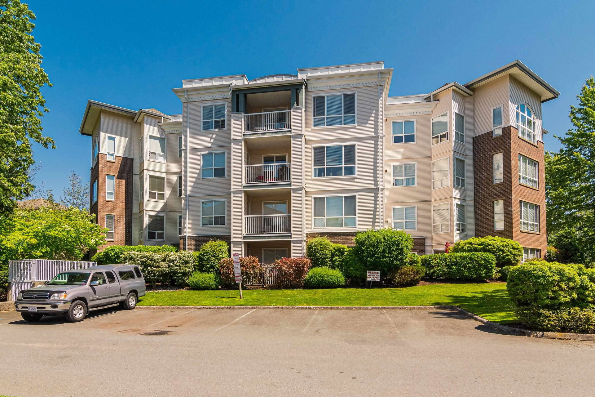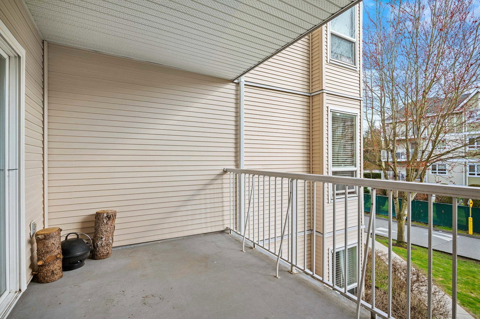 WELCOME HOME to this 2 BED 2 BATH unit in MONTEREY GRANDE located in the heart of Langley City. This well laid out unit with bedrooms on opposite sides of the home features an open dining room/living room which is huge and leads out to a balcony. Very large primary suite with soaker tub in bathroom. Brand new laminate flooring and professionally painted. You will love the large laundry room/storage with space for a deep freezer and bonus storage locker on the same floor! One dog (13″) and 1 cat permitted. Call today and make this your new home!
