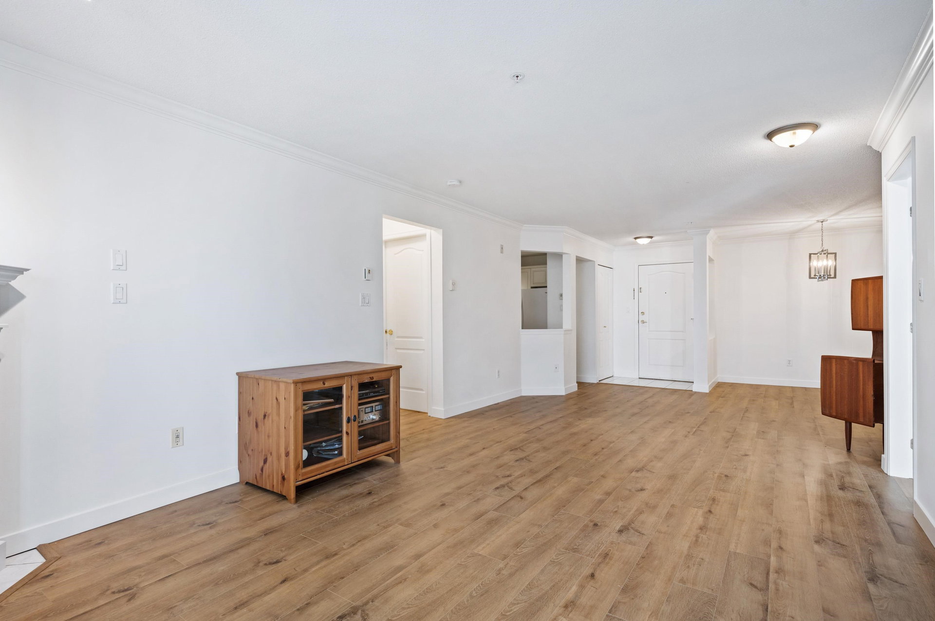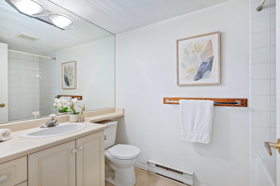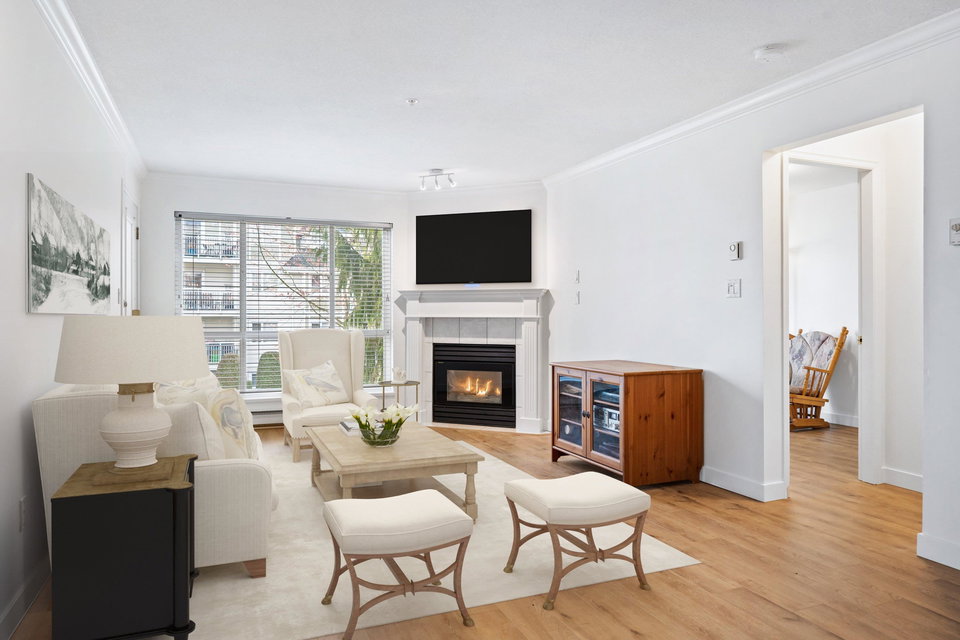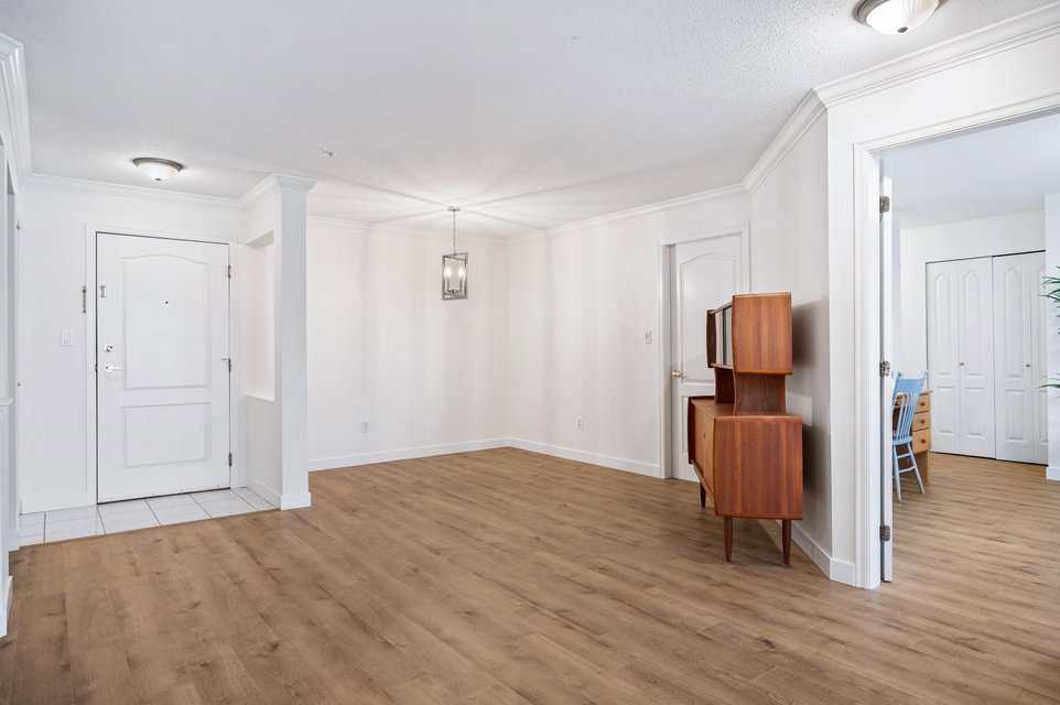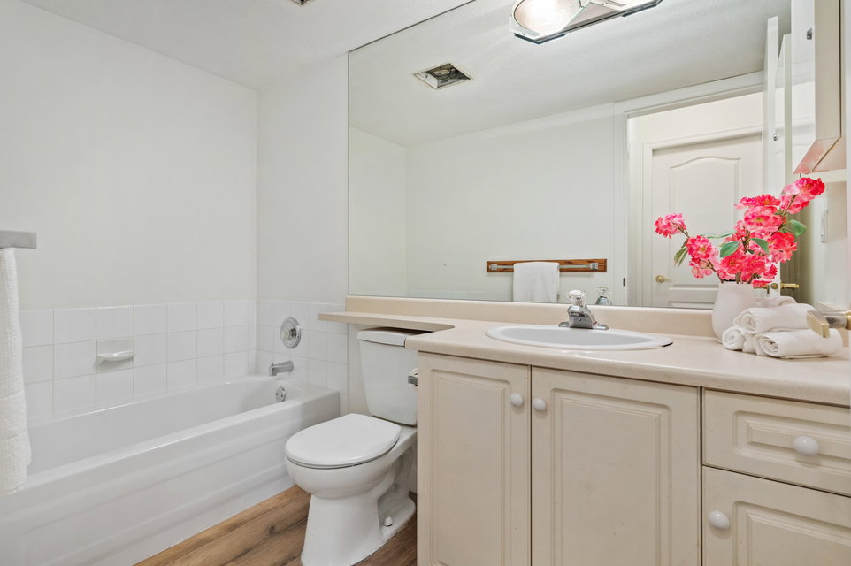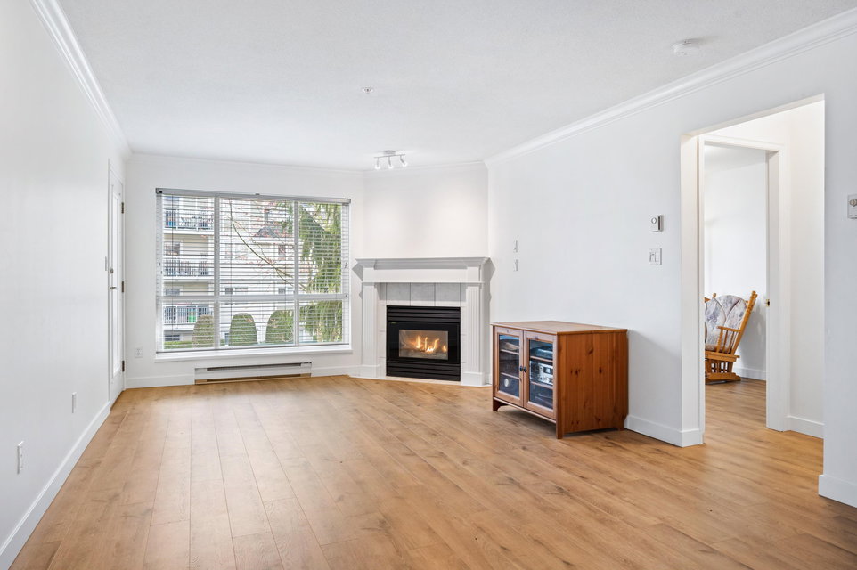 WELCOME HOME to this 2 BED 2 BATH unit in MONTEREY GRANDE located in the heart of Langley City. This well laid out unit with bedrooms on opposite sides of the home features an open dining room/living room which is huge and leads out to a balcony. Very large primary suite with soaker tub in bathroom. Brand new laminate flooring and professionally painted. You will love the large laundry room/storage with space for a deep freezer and bonus storage locker on the same floor! One dog (13″) and 1 cat permitted. Call today and make this your new home!