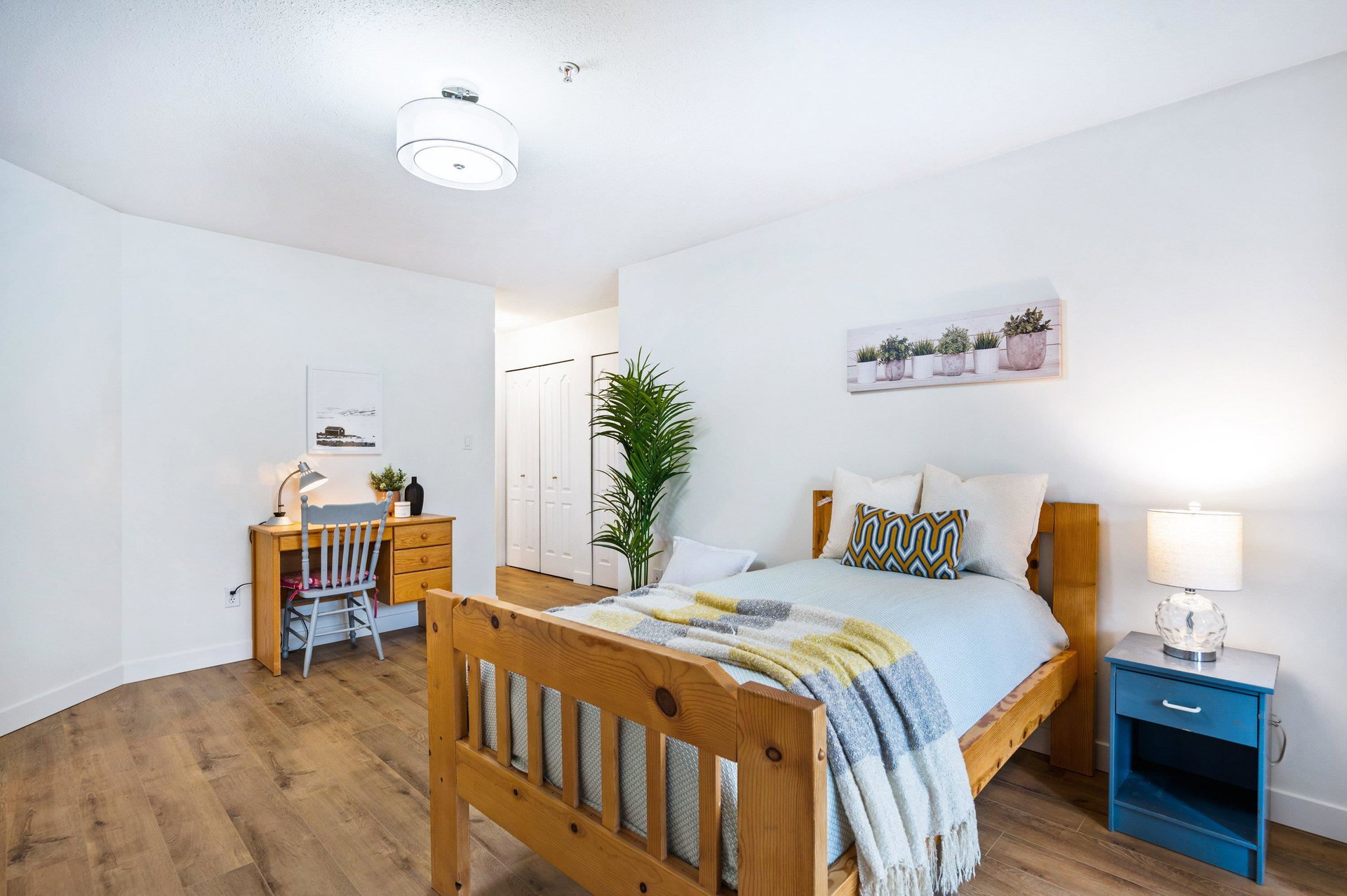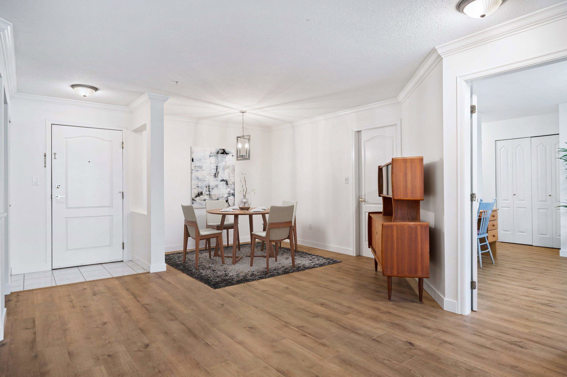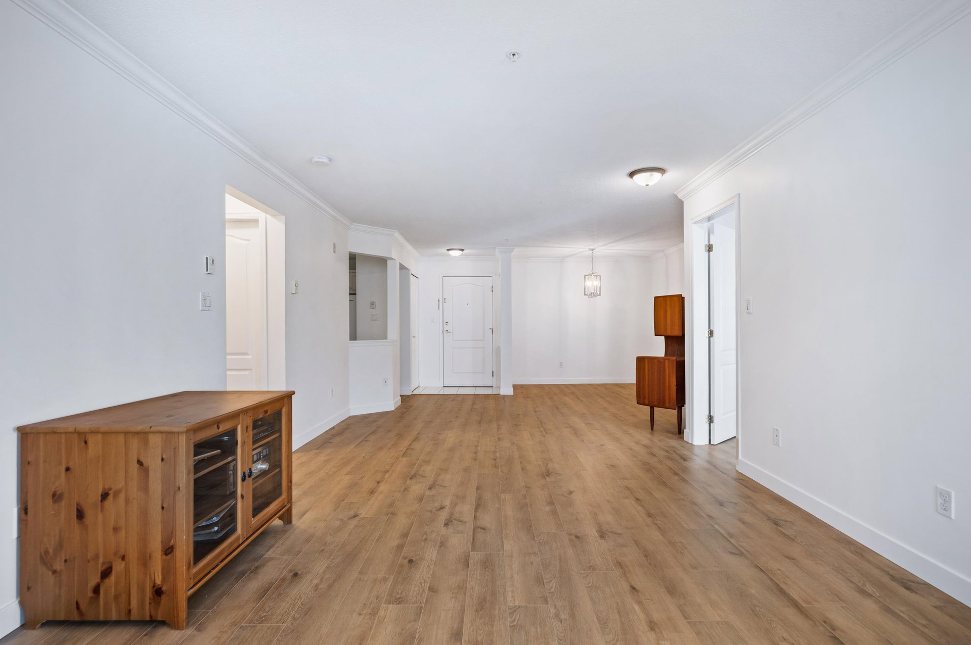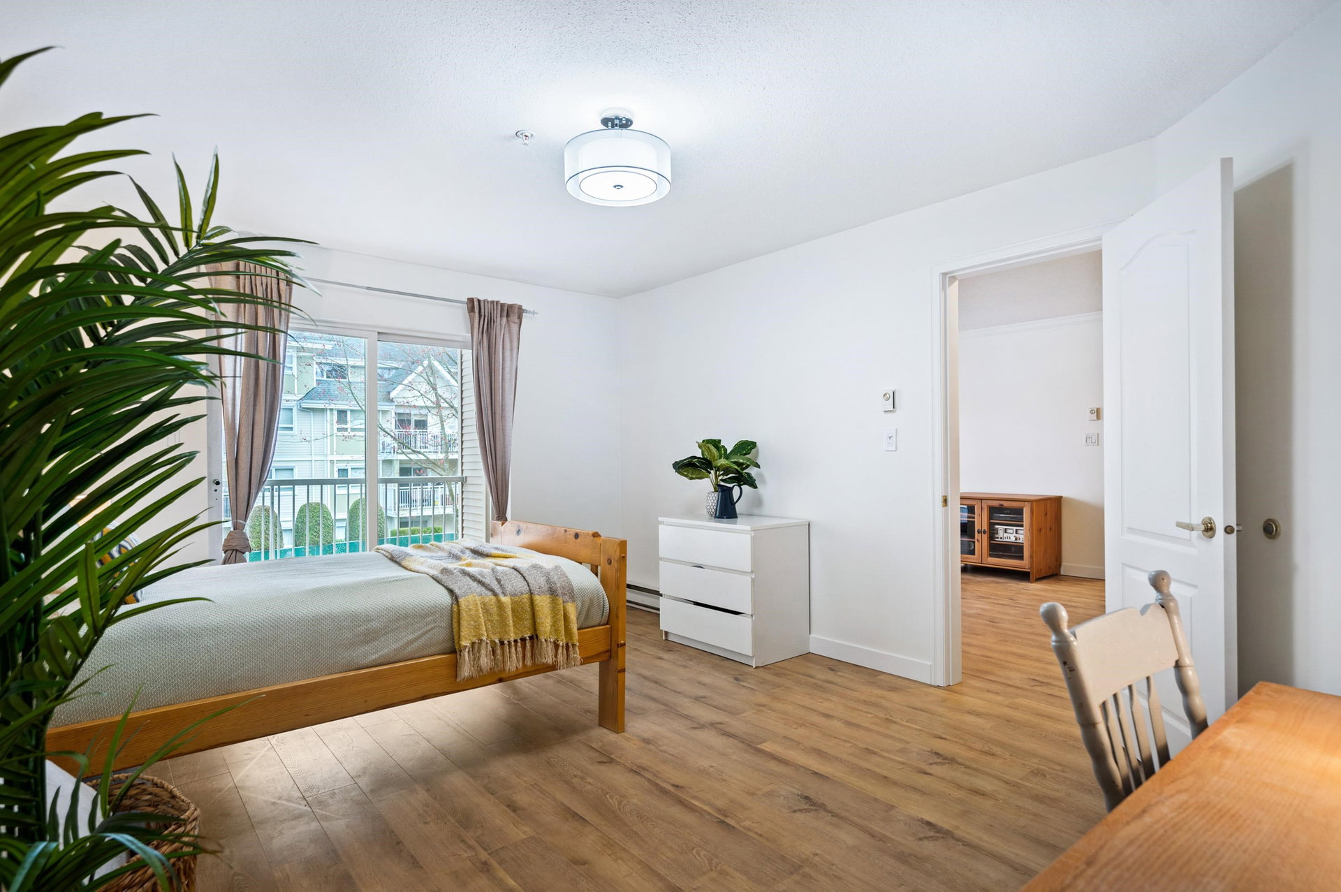WELCOME HOME to this 2 BED 2 BATH unit in MONTEREY GRANDE located in the heart of Langley City. This well laid out unit with bedrooms on opposite sides of the home features an open dining room/living room which is huge and leads out to a balcony. Very large primary suite with soaker tub in bathroom. Brand new laminate flooring and professionally painted. You will love the large laundry room/storage with space for a deep freezer and bonus storage locker on the same floor! One dog (13″) and 1 cat permitted. Call today and make this your new home!