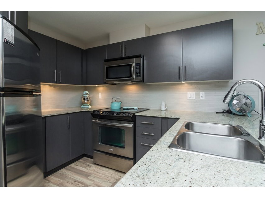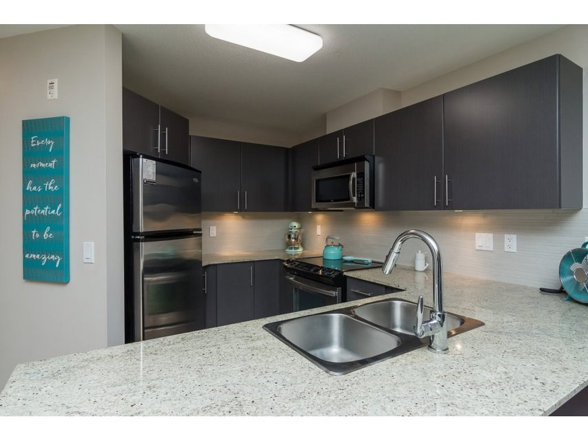 WELCOME to this 1 bedroom PLUS DEN unit in desirable Hawthorne located in the heart of Walnut Grove. Open concept living/dining boasts laminate flooring, modern grey kitchen with stainless & granite plus an eating bar. Den has Cabinet Bed and is used for bedroom. Built-in shelving in walk in closet and pantry. In-suite laundry, plus one parking and one storage locker are included. Centrally located, Hawthorne is within walking distance to IGA, Browns, movie theatre and shopping. THIS IS A NO-SMOKING BUILDING. Quick access to Hwy 1, Calvolth Park & Ride and Golden Ears. Make this your new home today!