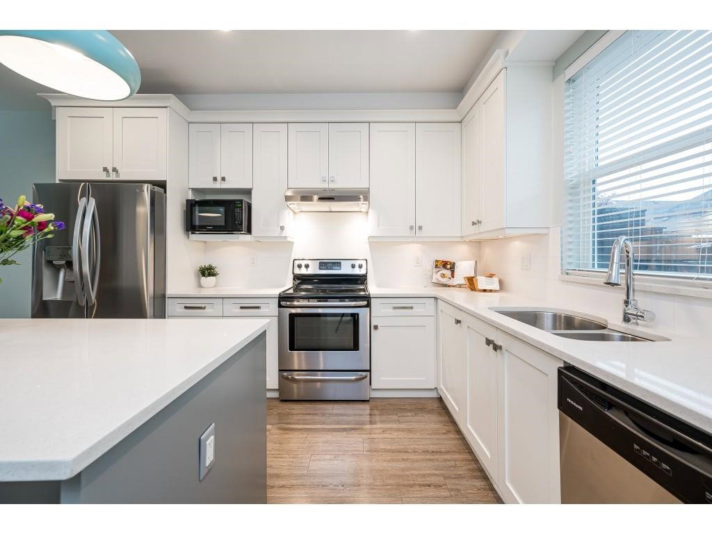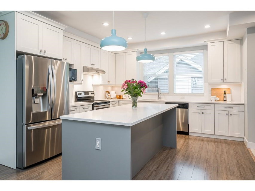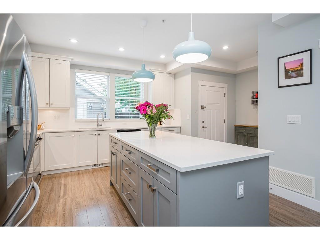 WELCOME HOME to NON-STRATA living with this spacious rowhome opposite SCHOOL FIELDS with MOUNTAIN VIEWS! This well laid out home is located just steps to Richard Bulpitt Elementary School and is centered in a family-friendly neighbourhood, walking distance to Willoughby Town Centre and easy access to 216th St freeway exit/entry. Main floor features laminate floors, quartz counters and s/s appliances (fridge brand new), and access to the fully fenced south backyard. Upstairs boasts 3 large bedrooms with spacious walk-in and en-suite off the main bedroom. Basement has huge rec room, plus a large room that could be used for a den/storage, and access to the backyard.