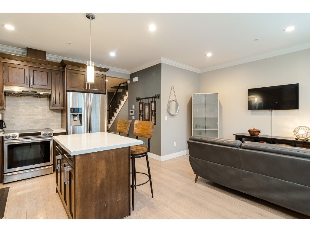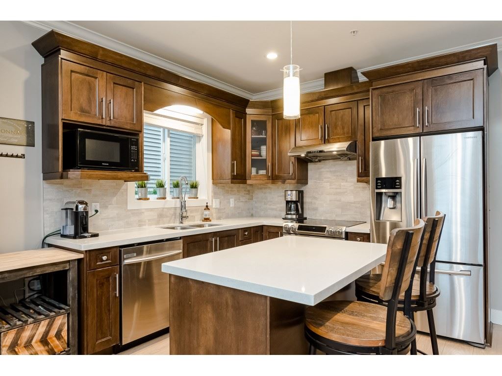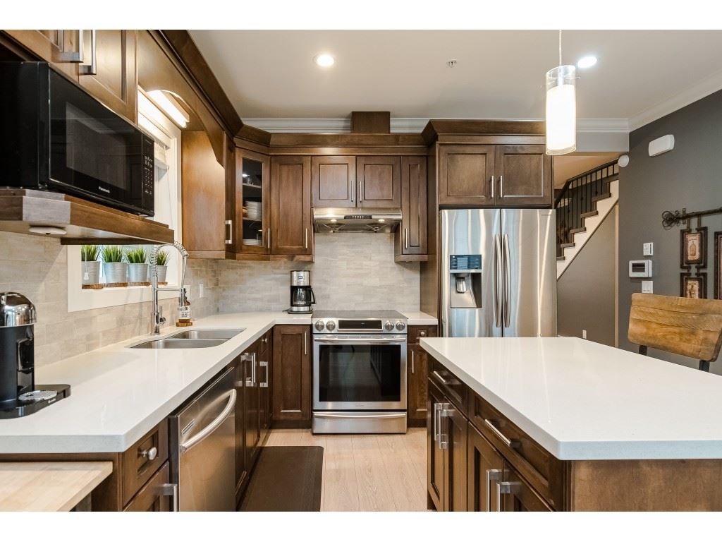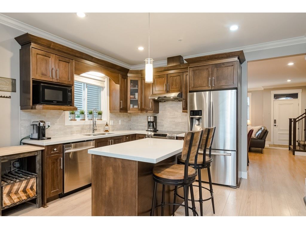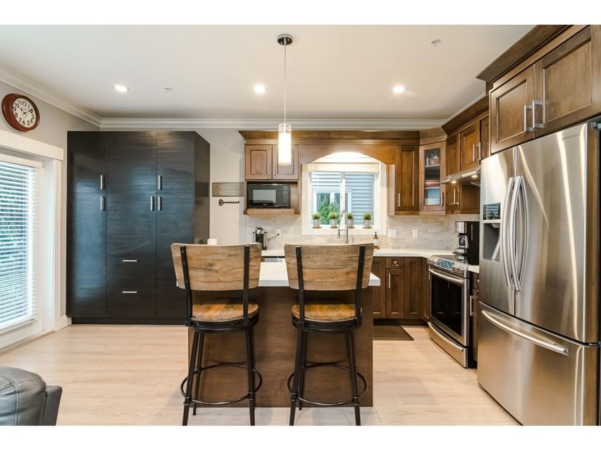 WELCOME HOME to this CORNER UNIT ROW HOME on side street. This street has only 8 row homes in this stretch, and almost all of the rest are all single-family homes. NO MORE STRATA FEES! This 5 bed, 4 bathroom home is very functional and well laid out with an open living/dining room, kitchen, a family room or eat-in kitchen and access to sunken backyard for privacy. Upstairs boasts 3 bedrooms with a large master suite, and the basement has its own entry, 2 bedrooms, rec room and an upgraded bar with additional cupboards and storage. Located in the heart of Willoughby, there are lots of bike trails, walking paths, dog parks, schools and shopping all close by. Easy access to the new 216th overpass. The home has a wide back alley with single garage.