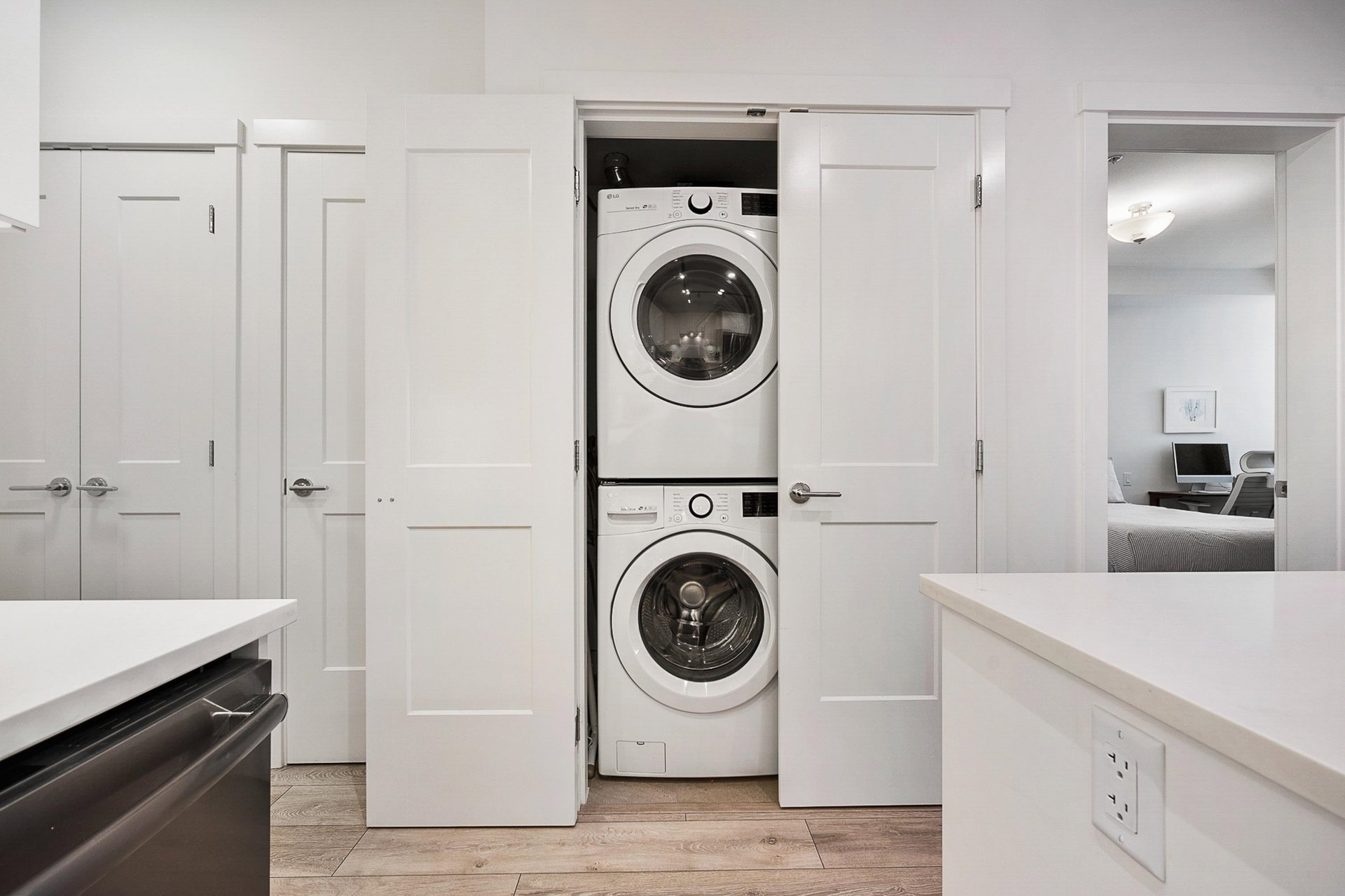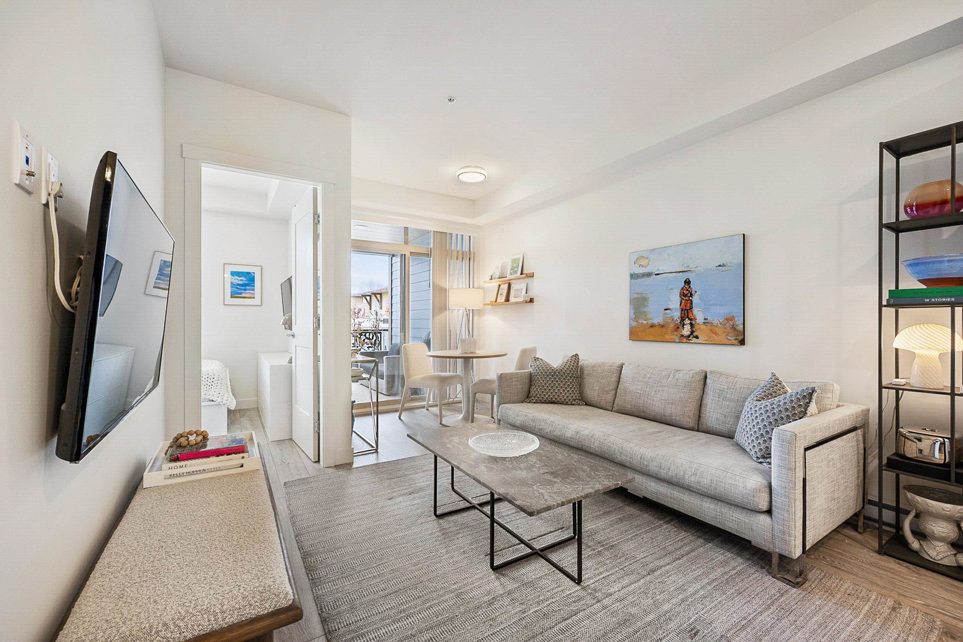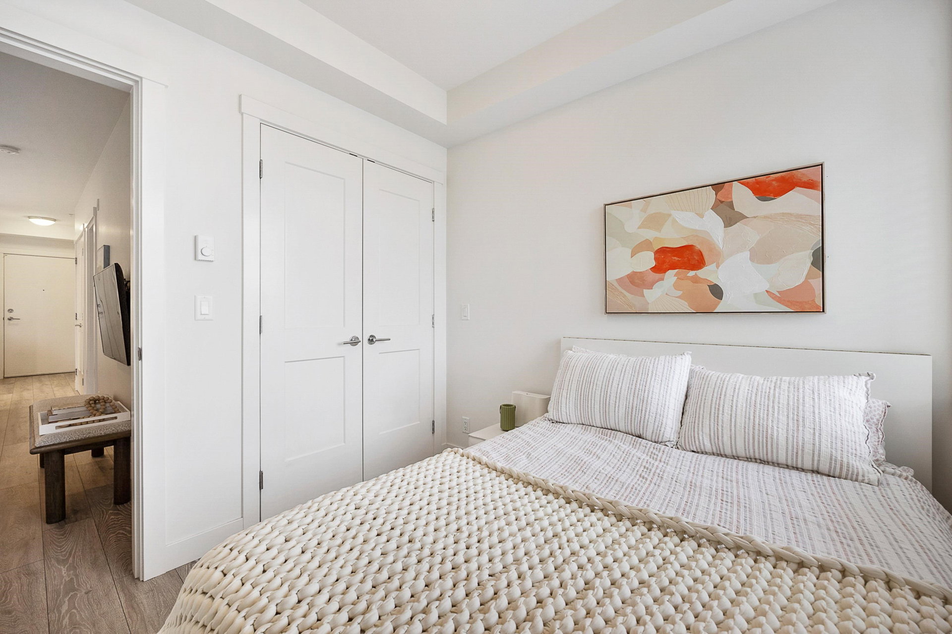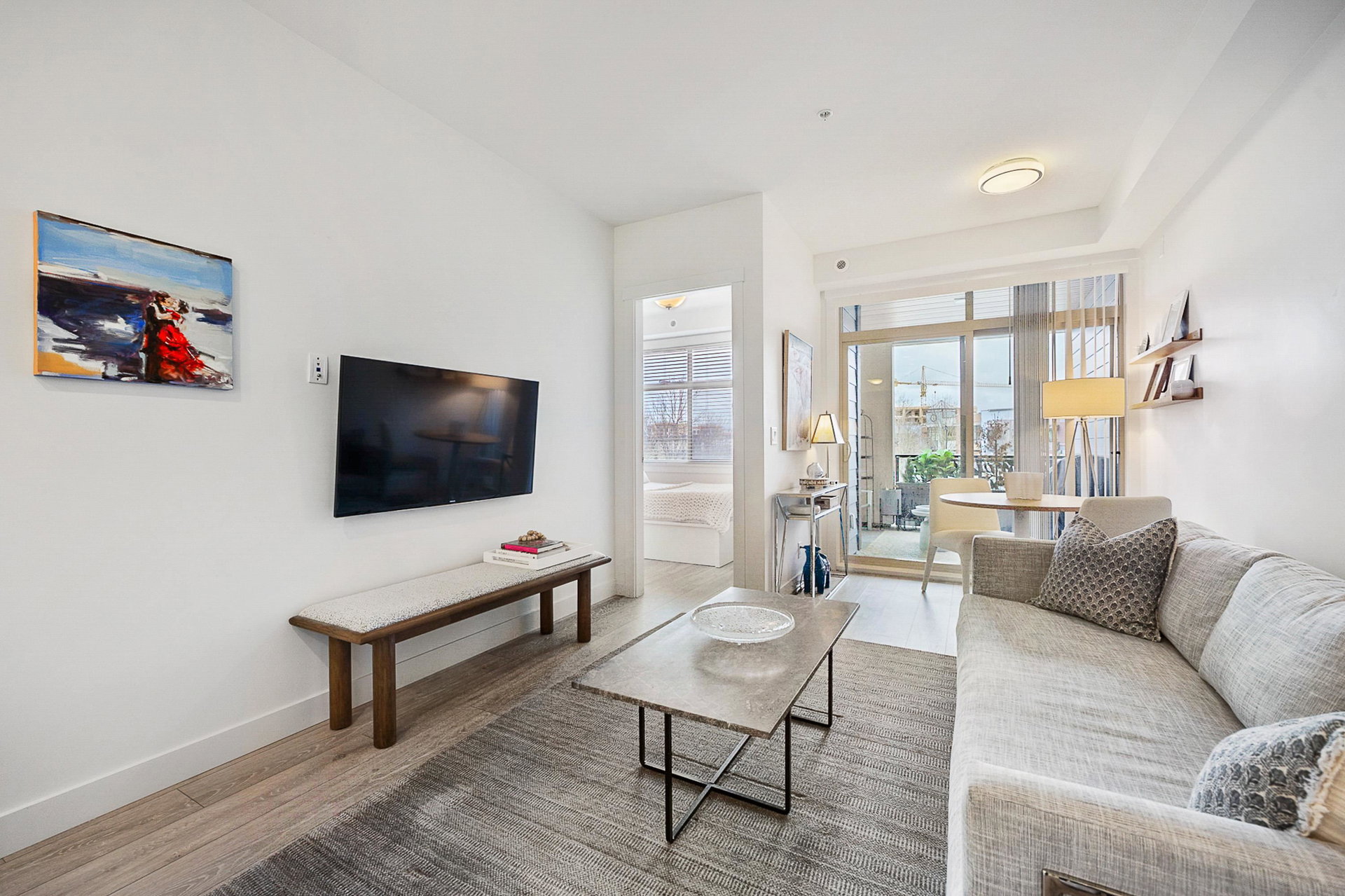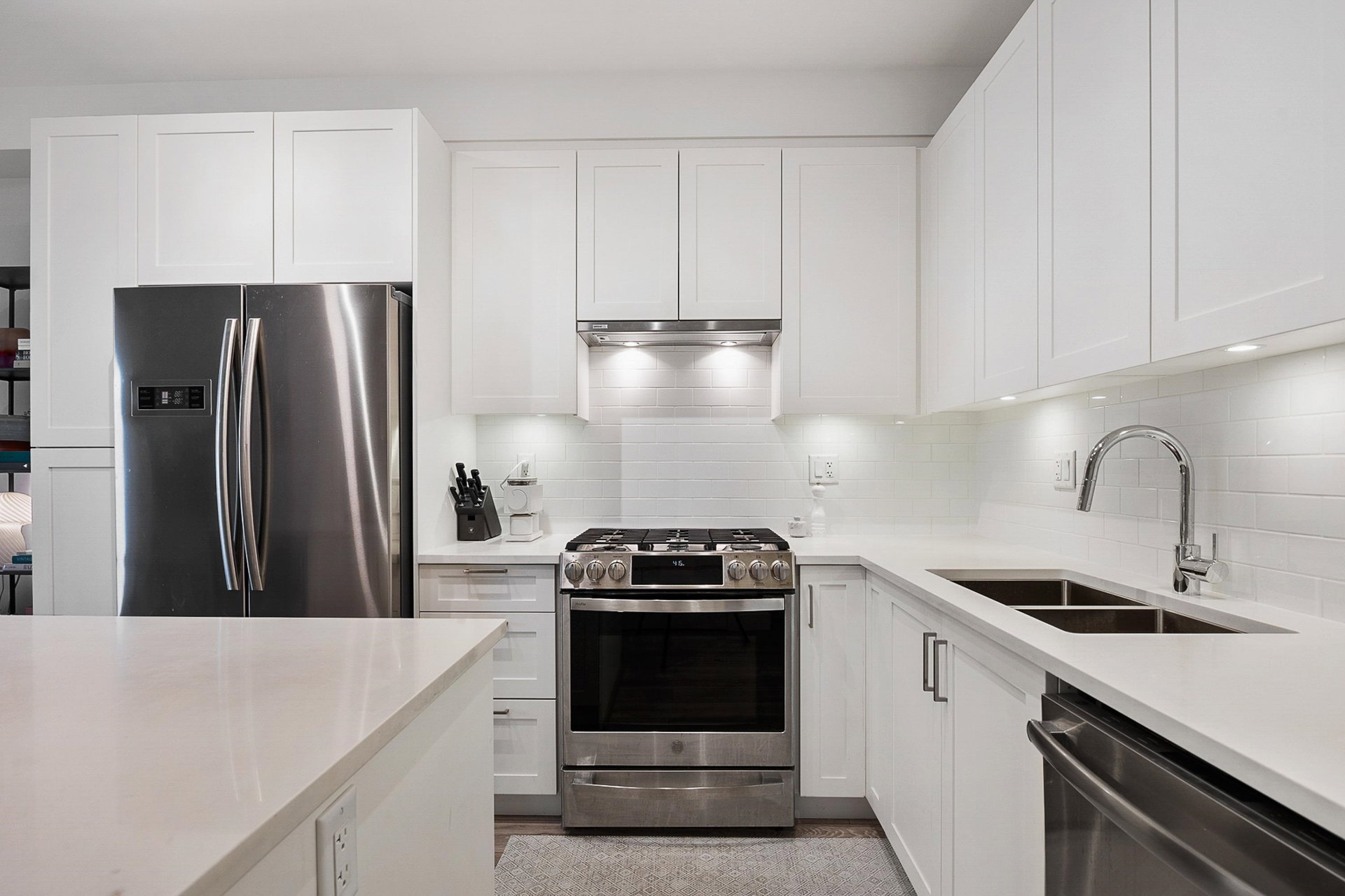 WELCOME to this 2 bed (window in both), 2 bath QUADRA luxury condo with 2 parking & spacious storage locker. This bright condo features 9′ ceilings, a full kitchen w/white shaker soft close cabinetry, tower pantry w/pull out drawers, quartz counter-tops & full height tile backsplash, island with integrated microwave, pull-out recycling bins & bar seating. SS appliance package including a GAS RANGE. Master bed features 4 piece luxury ensuite with 2 sinks and frameless glass shower plus a large walk-in closet. Laminate flooring throughout. Heated floor in baths. Large balcony with GAS BBQ outlet.All of this in an A+ location-connected to the Willoughby Town Centre, and walkable to school, transit, shops and more. Exercise room and playground plus common patio area.