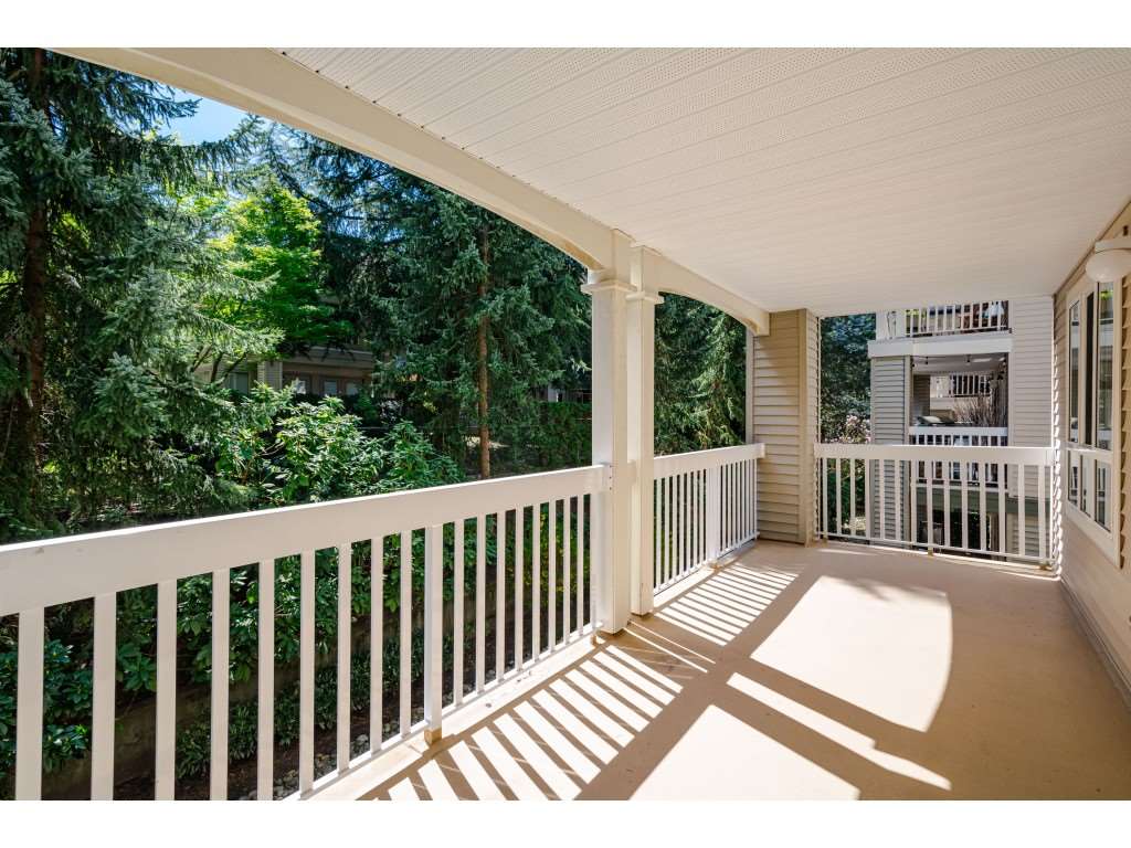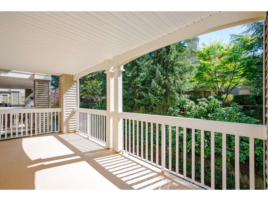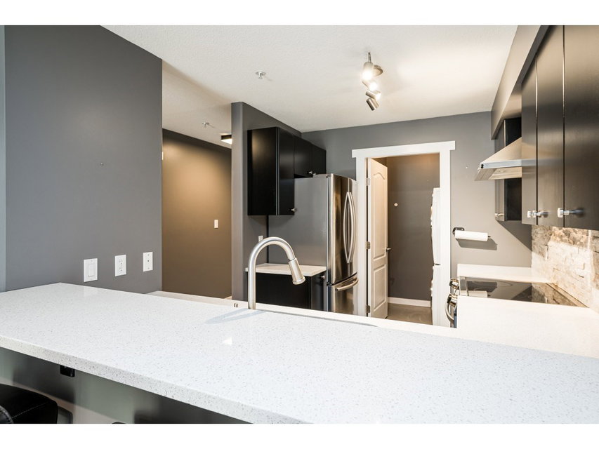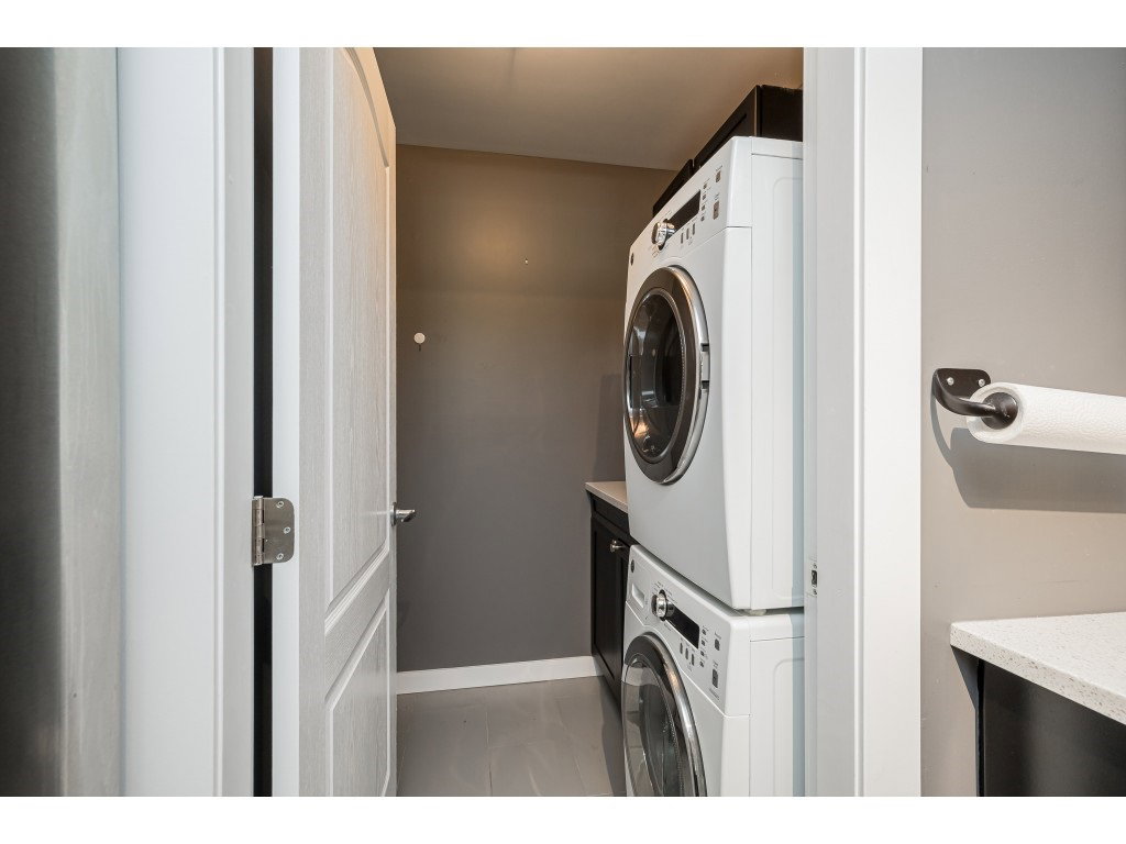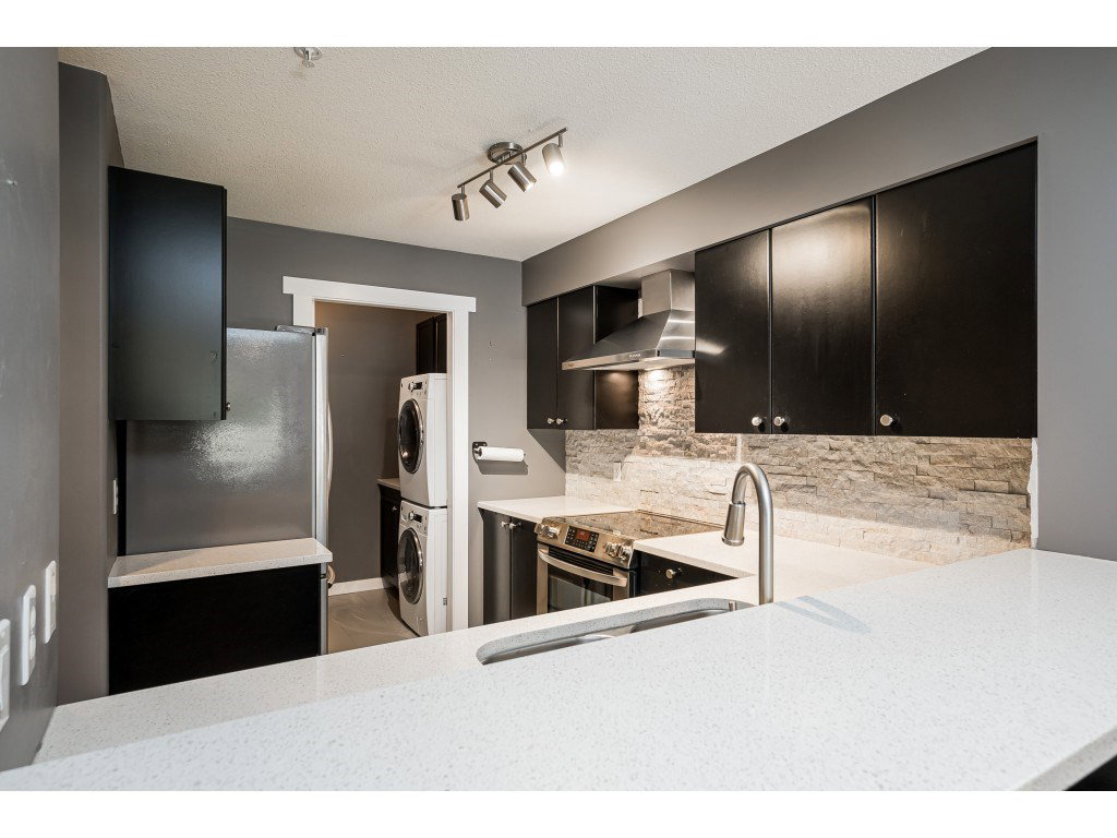 WELCOME HOME to this fantastic, well appointed condo with HUGE DECK facing trees for exceptional tranquility and privacy. This 2-bed, 2-bath unit has its own laundry room off the kitchen, very spacious master suite with walk-in shower and large walk in closet. Open, spacious dining/living with gas fireplace and lovely features including stone backsplash in the kitchen, quartz, s/s appliances, laminate, and lovely fireplace surround. New membrane for the parkade with special levy all paid up! Call today and make this your new home.