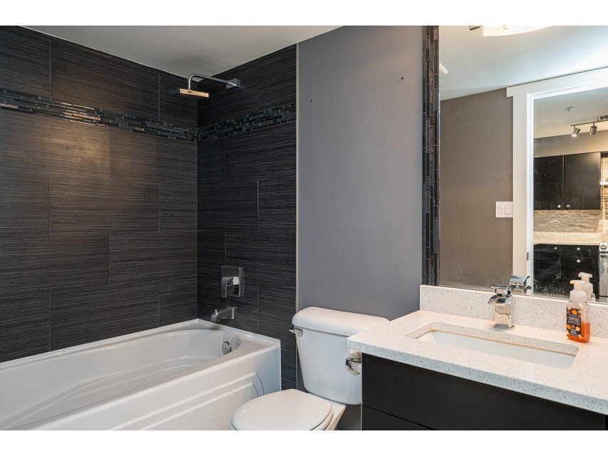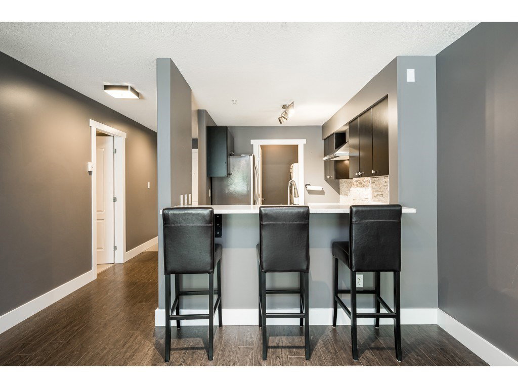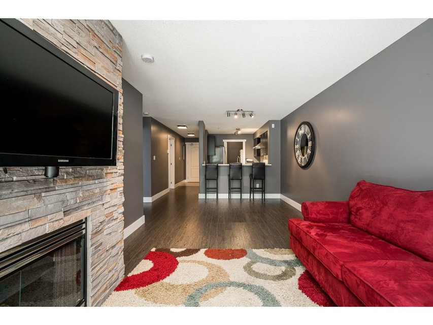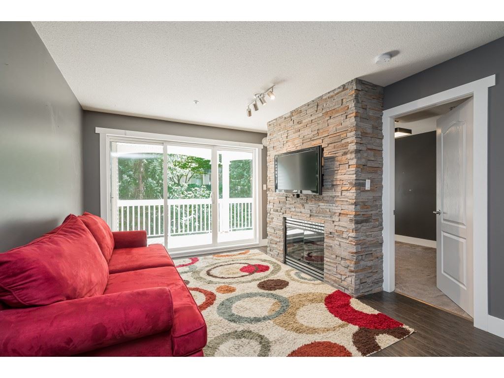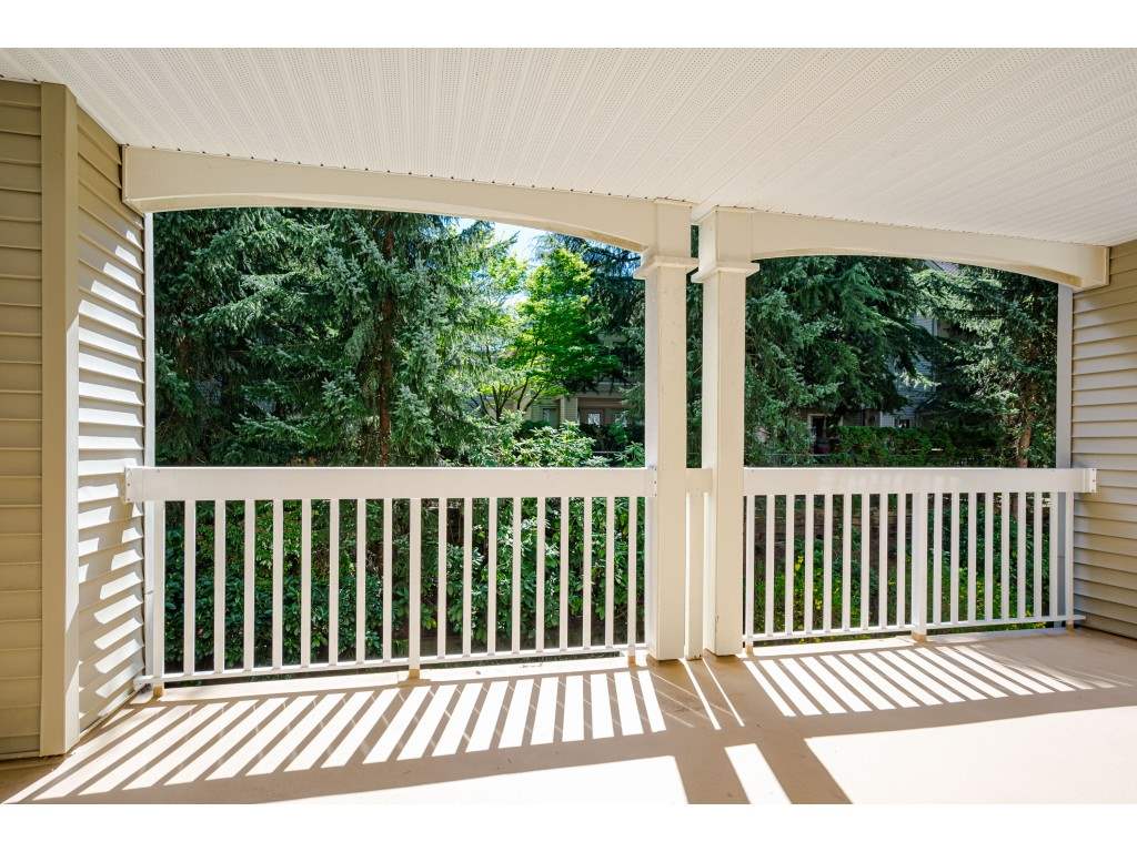 WELCOME HOME to this fantastic, well appointed condo with HUGE DECK facing trees for exceptional tranquility and privacy. This 2-bed, 2-bath unit has its own laundry room off the kitchen, very spacious master suite with walk-in shower and large walk in closet. Open, spacious dining/living with gas fireplace and lovely features including stone backsplash in the kitchen, quartz, s/s appliances, laminate, and lovely fireplace surround. New membrane for the parkade with special levy all paid up! Call today and make this your new home.