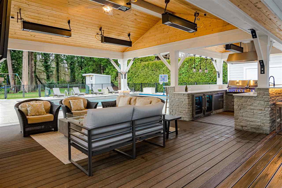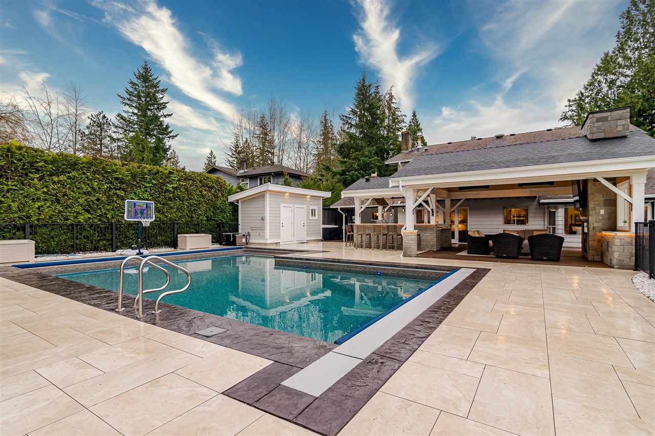 WELCOME HOME to FOREST KNOLLS, situated on 0.75acres, and backing onto protected GREENSPACE (Forest Knolls Park). 5-bedroom home with RESORT STYLE BACKYARD makes this the perfect family home! Well-appointed with traditional formal living/dining, family room leading to backyard & eat-in kitchen overlooking yard. Main floor boasts office and a potential 5th bedroom or large rec room which is separate from the main house and has its own entrance. 4 bedrooms up with huge master suite. The backyard will take your breath away! Totally private retreat has a brand-new heated pool, covered seating area, outdoor kitchen with Napoleon Gas BBQ w/side burners & hood vent fan, 2 fridges, ice maker, pool washroom, 5 heaters & Skyvue outdoor TV, outdoor lighting & much more!