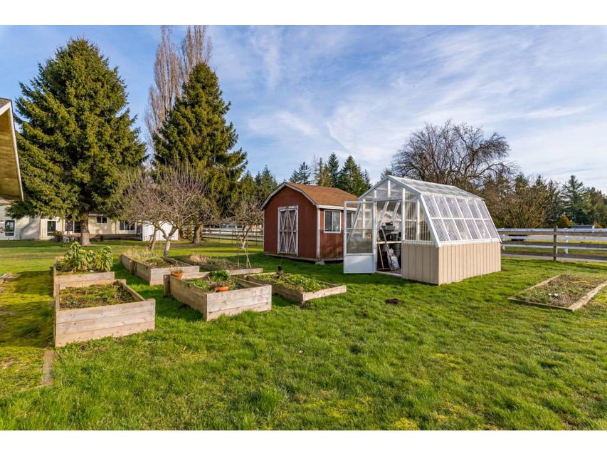 WELCOME HOME to this delightful (almost) 5 acre property located in Langley ALR with bonus Mobile home (with a/c).This comfortable 5 bedroom plus den home with some updates has extensive California Closets throughout; an Italian outdoor Pizza Oven; detached garage & shops; greenhouse; 40′ container shop with insulation, power & ac; garden beds; plum, apple & pear trees; roses, dahlias, blackberries and more with the entire fencing around the property replaced just 3 years ago. Further down the property is a duck pond which feeds the Salmon River. Some of the pasture is currently leased to a neighbour with horses to ensure the farm status and can either be renewed or terminated. Roof is approx 8 years old, about 85% of plumbing has been changed from copper to plastic. Call today!