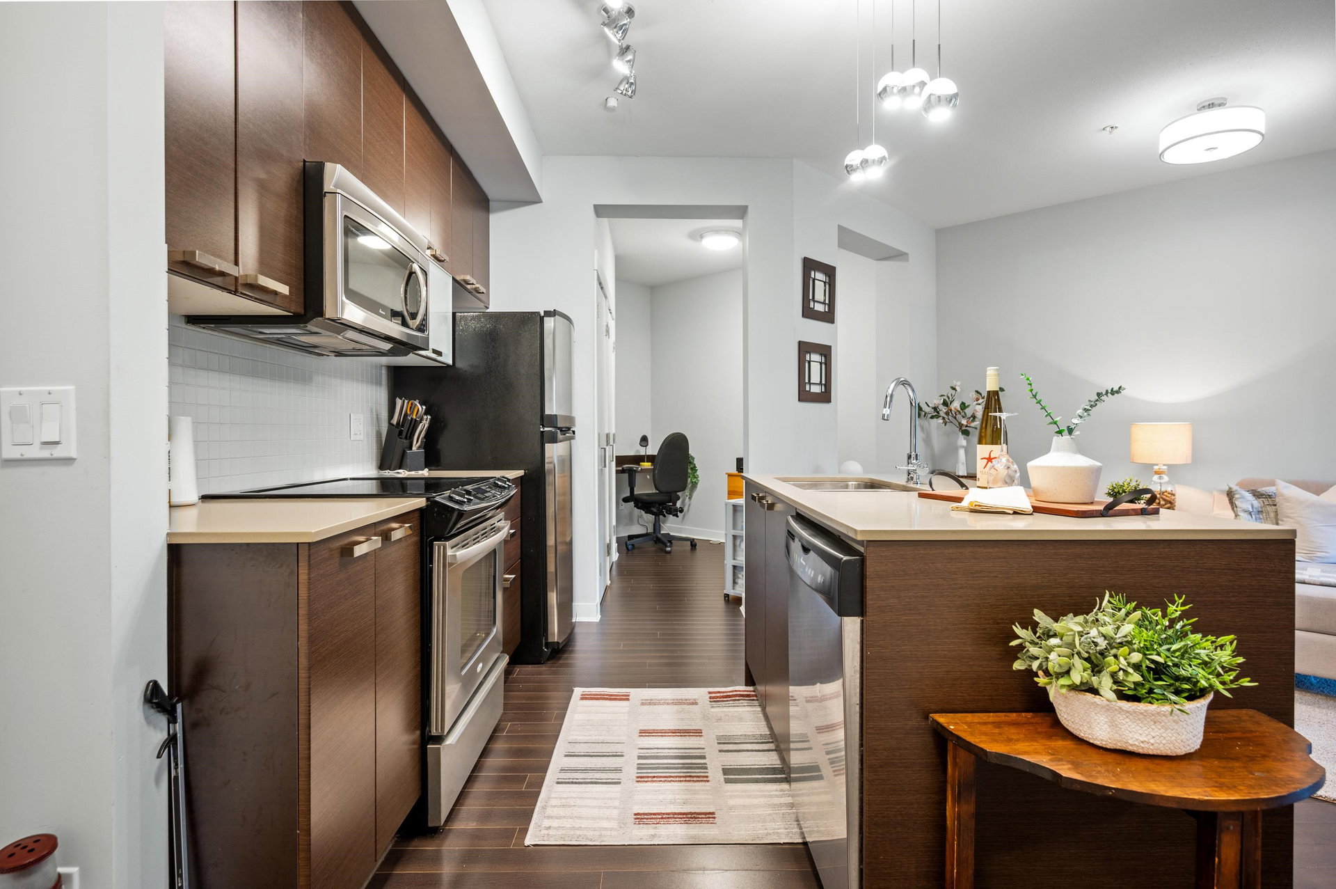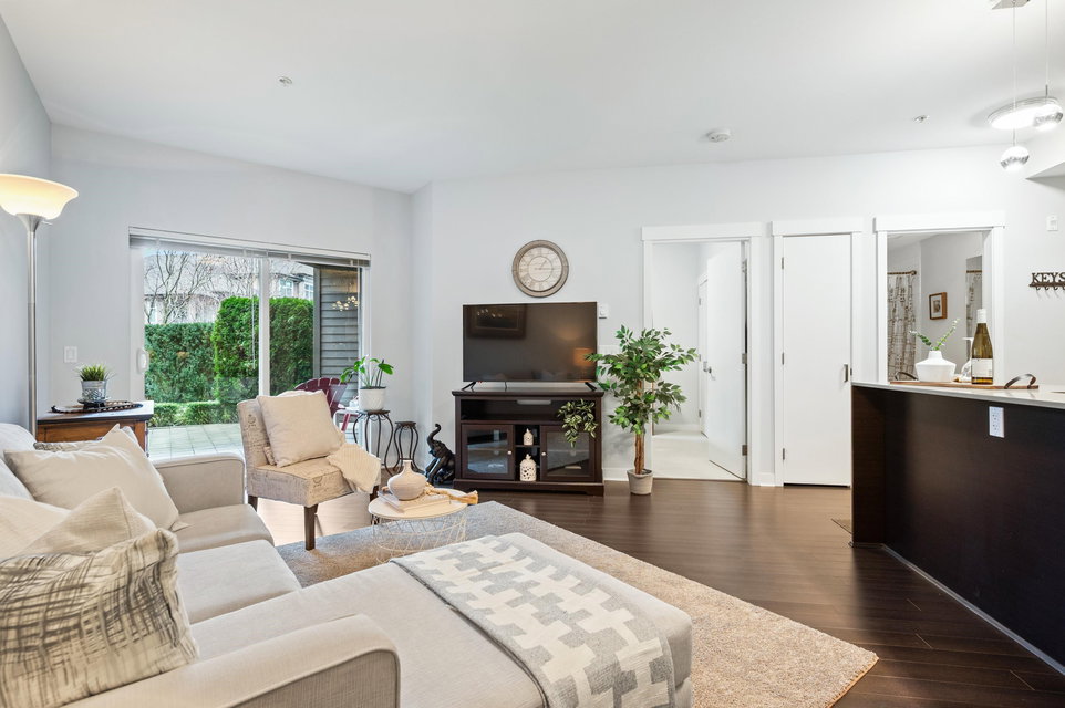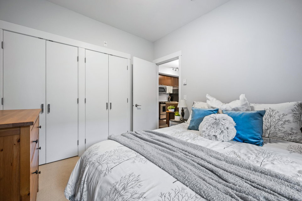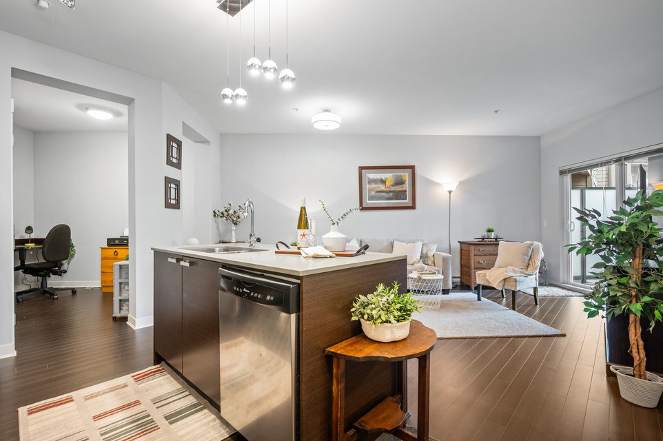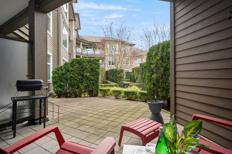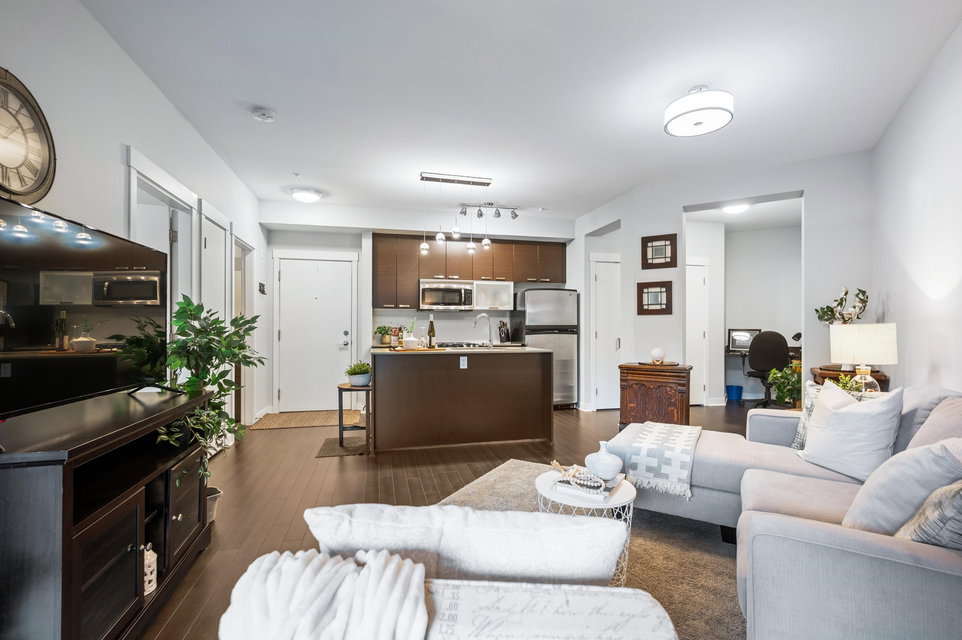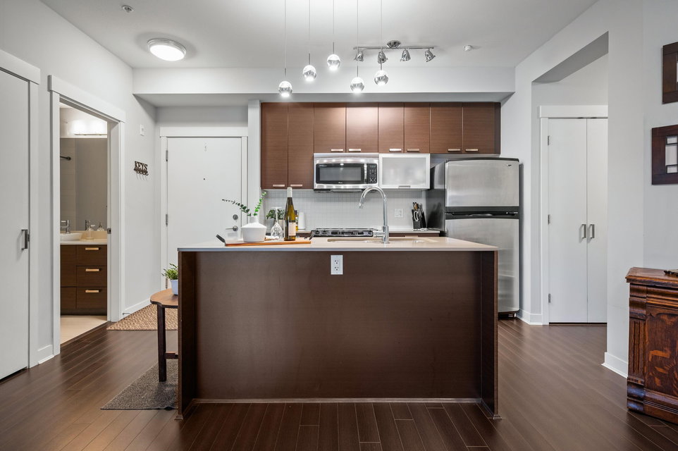 WELCOME HOME to this light, bright, spacious 1 bedroom, 1 bathroom PLUS DEN unit with large, PRIVATE, gorgeous walk-out patio/courtyard area to enjoy extra outdoor living space. This very well maintained home offers laminate flooring, quartz counters, stainless appliances and an open den. Calera offers a gym and exercise centre, and is just steps to shops, coffee, restaurants, transit and close to the upcoming sky train expansion. Call today and make this your new home!