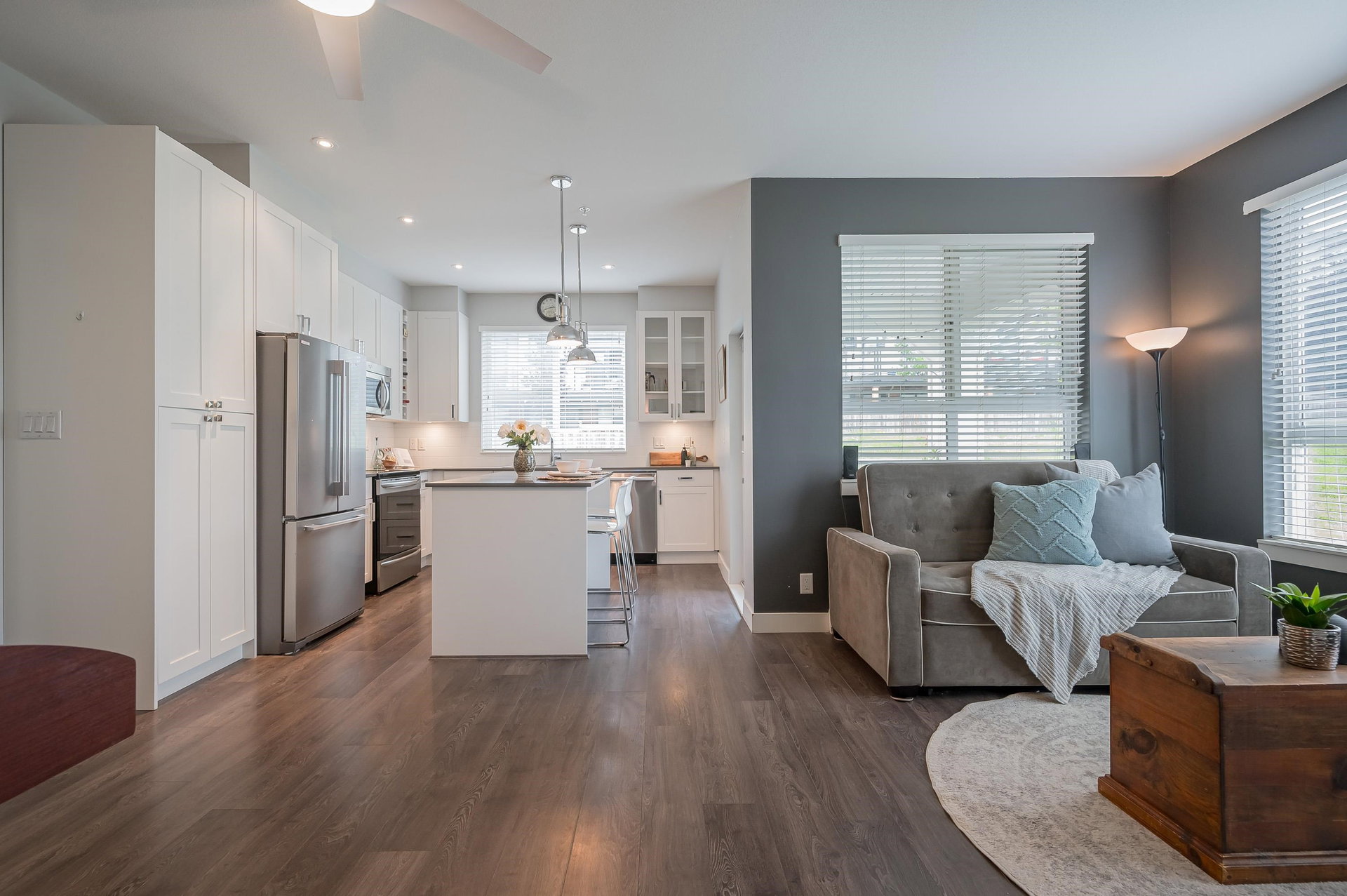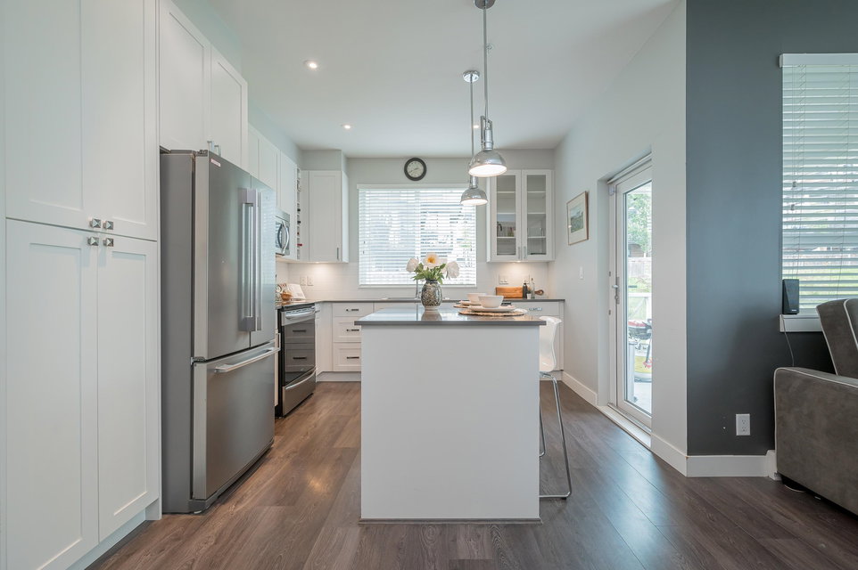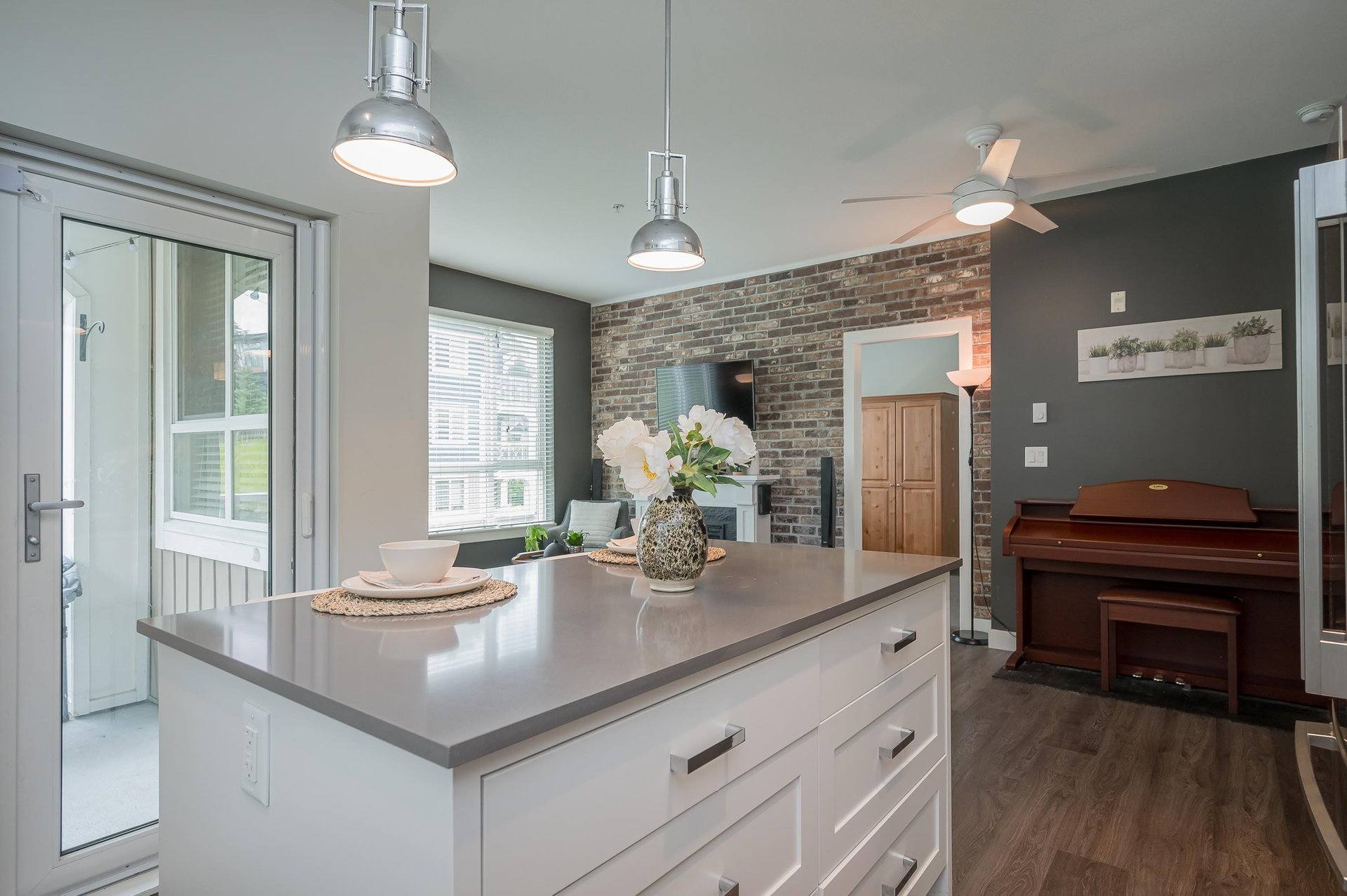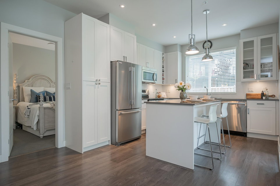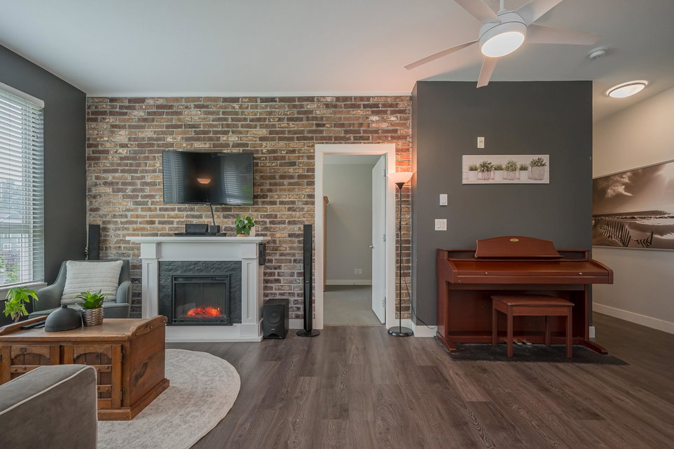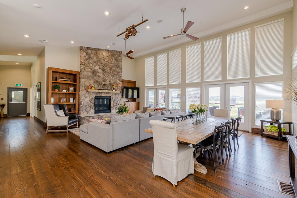 WELCOME HOME to THE RIDGE at BOSE FARMS – country residences on an old Surrey landmark complete with heritage barn, dairy shed and farmhouse all located in a beautiful pastoral setting. This 2 bed, 2 bath CORNER UNIT has a nice entryway, open floor plan and boasts quartz stone countertops, laminate flooring, stainless steel appliances with induction oven, unique brick wall feature, space between the buildings for privacy, huge windows to let lots of light in and views of the green bank and woods. The stunning amenities include exclusive club house with full kitchen, yoga room, library, media room, community gardens, guest suites in the old farmhouse, and so much more! Call today and make this house your new home!