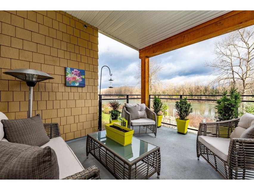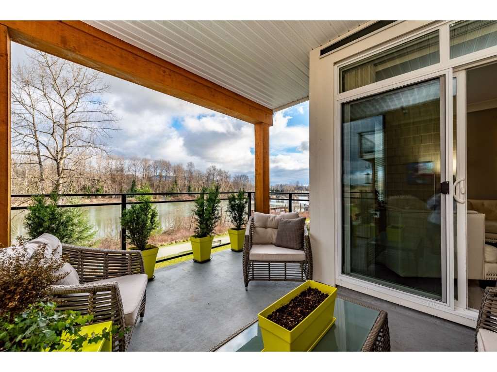 UNOBSTRUCTED FRASER RIVER VIEWS! Welcome Home to this immaculate unit located in the heart of Fort Langley. This unit has brand new vinyl plank flooring & paint, crown mouldings, high ceilings, gourmet kitchen with granite, s/s, gas stove and more. Master bedroom includes a walk in closet and large en-suite bathroom with heated tile floor. Large in-suite storage, 2 underground parking stalls, secure bike storage, fitness room, all within steps of coffee, restaurants, pub, trails and so much more that the Fort offers. This is a no smoking building. Call today!