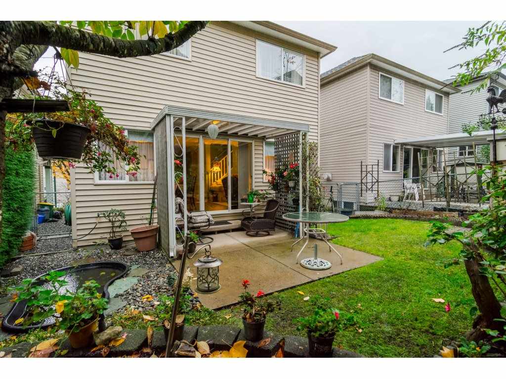 Welcome to this delightful family home in HYLAND CREEK, centrally located in desirable Walnut Grove and close to Schools, shops, rec centre and more. Living room, family room, kitchen, dining room/area and powder room all on the main level with gas fireplace, laminate and crown. Upstairs features 3 bedrooms PLUS DEN with nice balcony accessible from both master and den. Downstairs has a rec room, bathroom and laundry and could very easily accommodate a 4th bedroom. Stunning SOUTH FACING backyard which is a gardner’s delight and even boasts a koi pond. Bare land strata fee is just $43 per month. Brand new hot water tank and a new washing machine! Call today and make this house your new home!