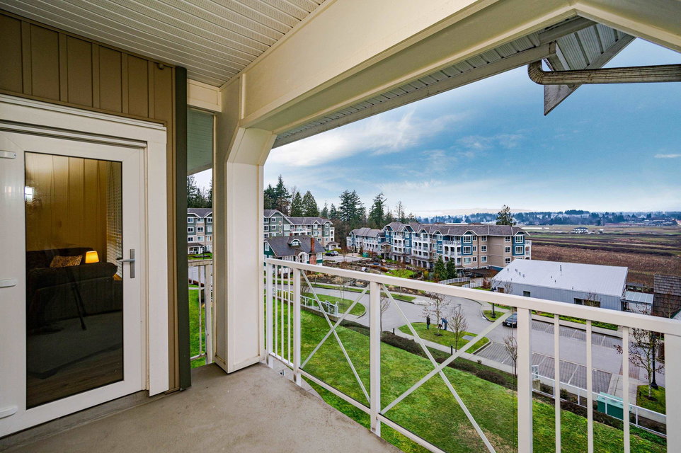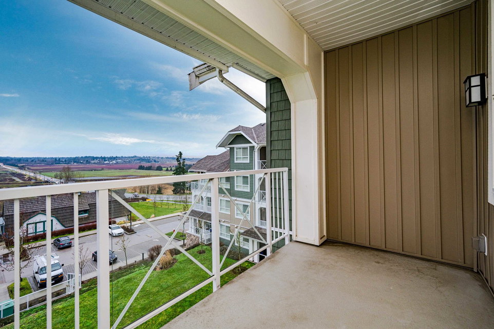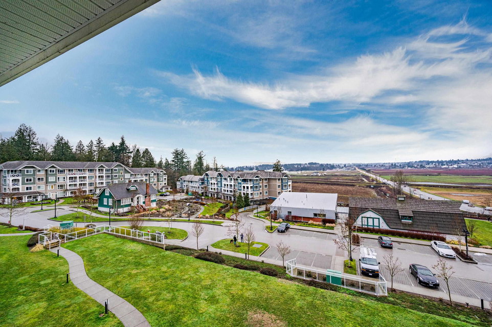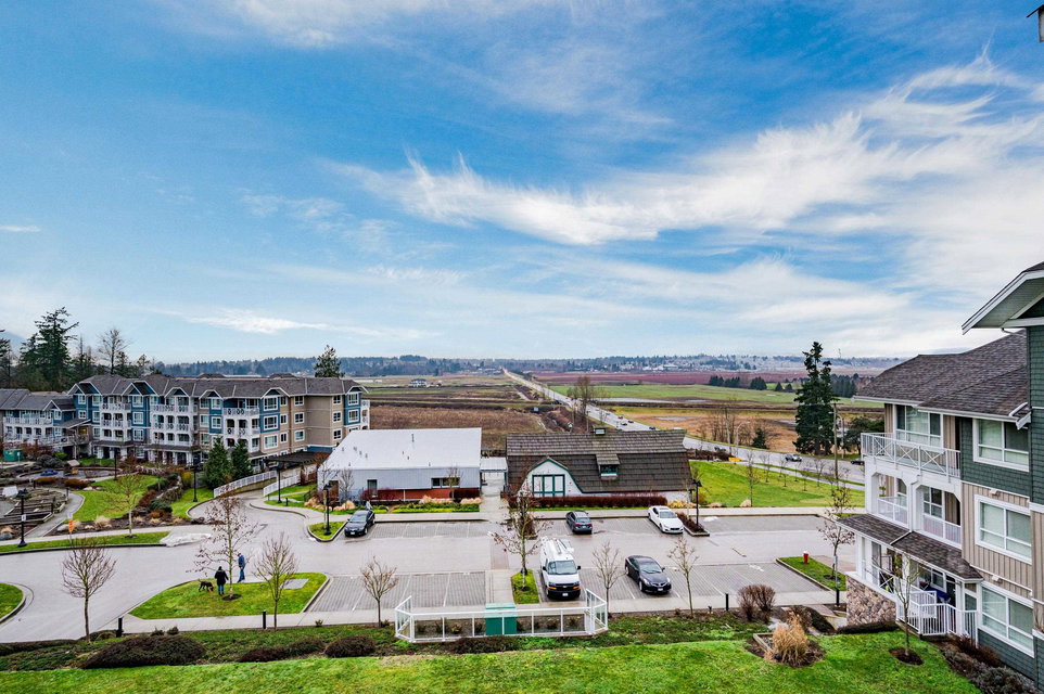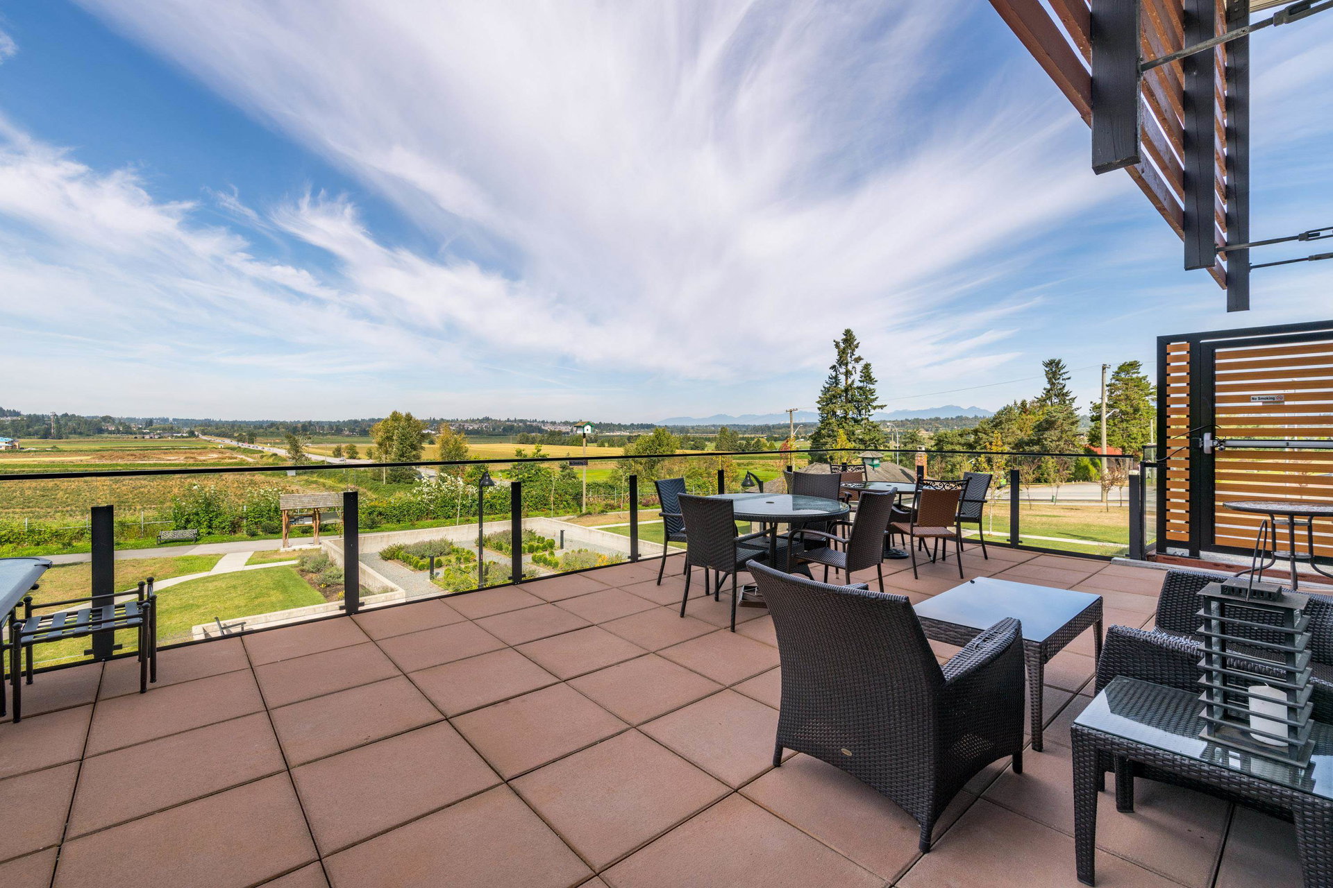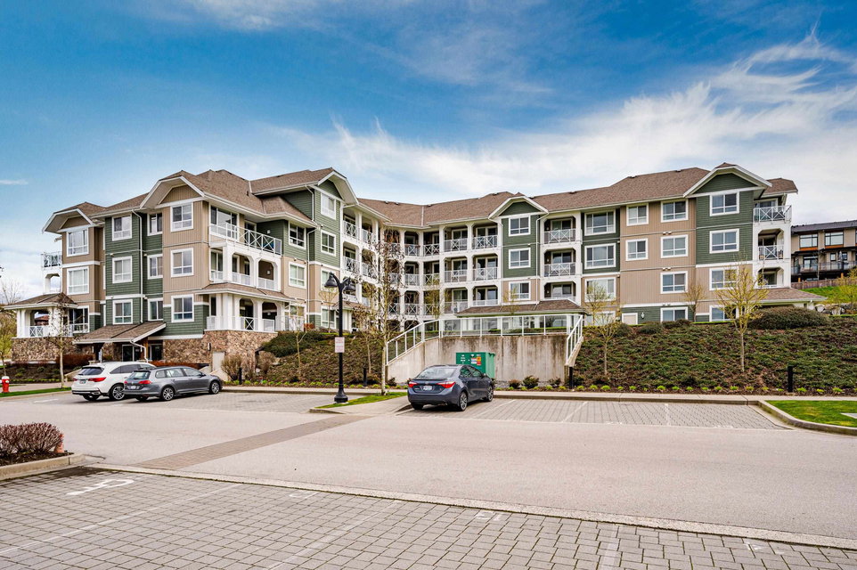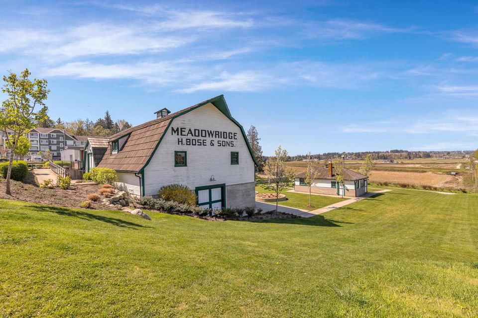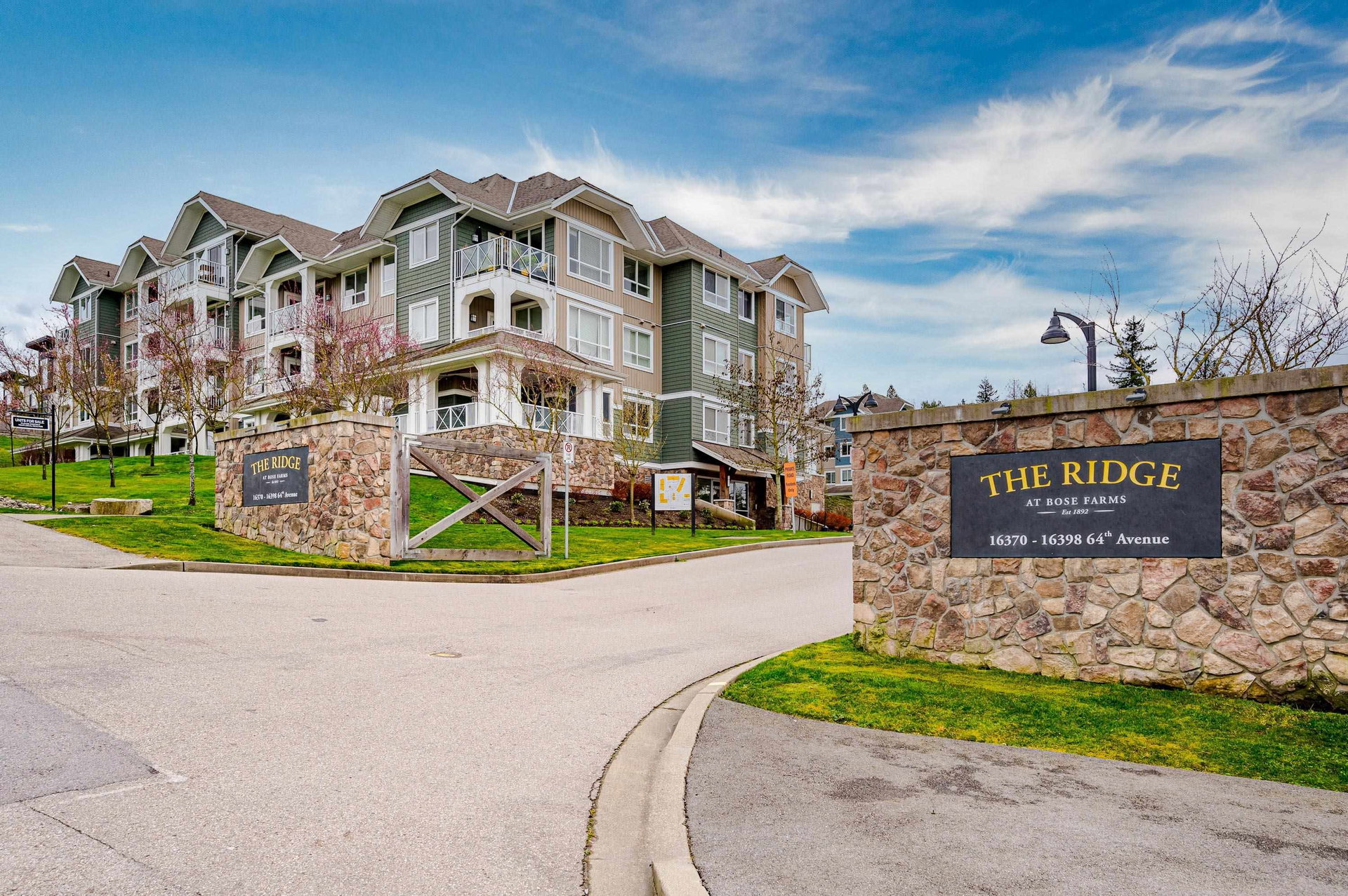 WELCOME HOME to THE RIDGE at BOSE FARMS – country residences on an old Surrey landmark complete with heritage barn, dairy shed & farmhouse. Located in a beautiful pastoral setting with UNOBSTRUCTED VALLEY VIEWS & peek-a-boo MOUNTAIN VIEWS, this TOP FLOOR 2 bed, 1 bath PLUS DEN is thoughtfully laid out, perfect for first time buyer or investor, boasting quartz stone countertops, laminate hardwood flooring & brand new carpet, stainless steel appliances, walk-in closet and huge windows to let lots of light in. Enjoy watching the SUNSETS from your west facing balcony. The stunning amenities include exclusive club house with full kitchen, yoga room, library, media room, community gardens, guest suites in the old farmhouse, and so much more! 1 parking. 1 storage. RENTALS & PETS OK.