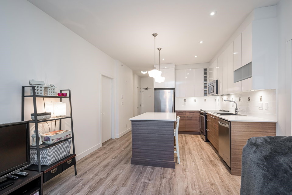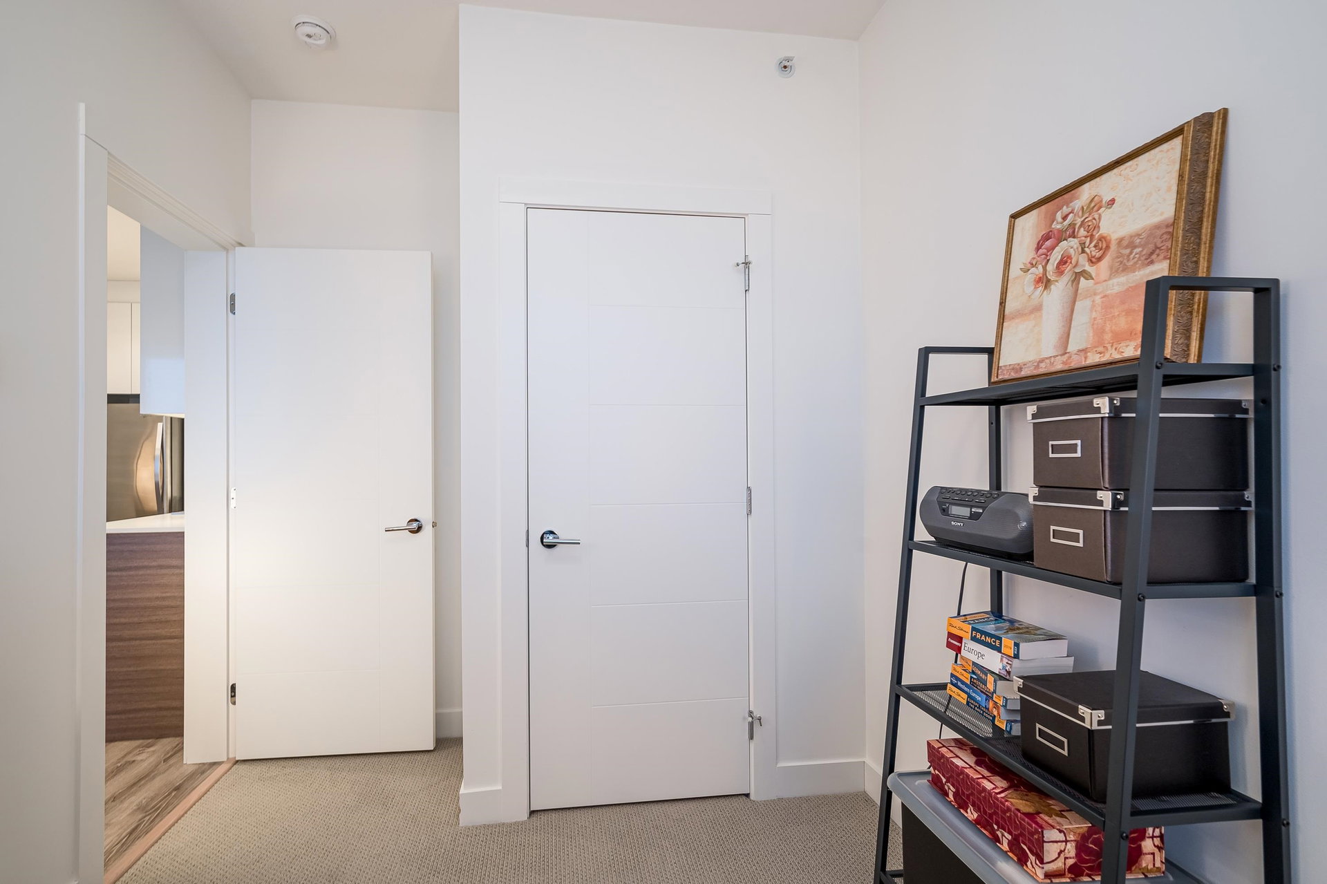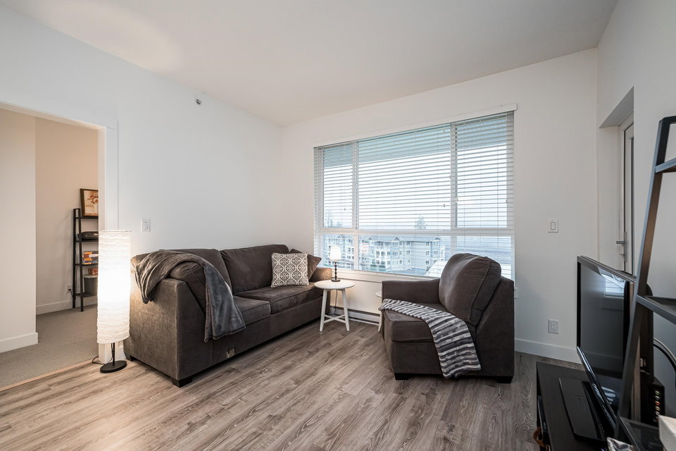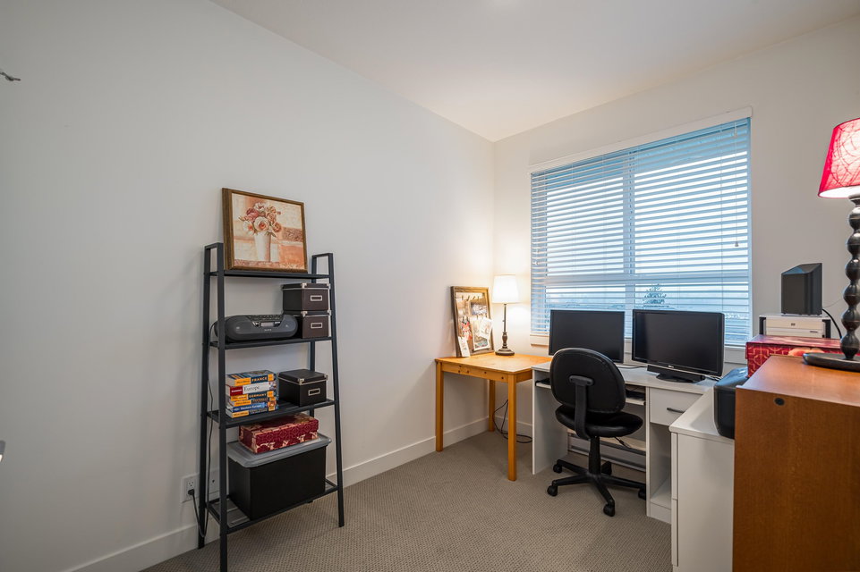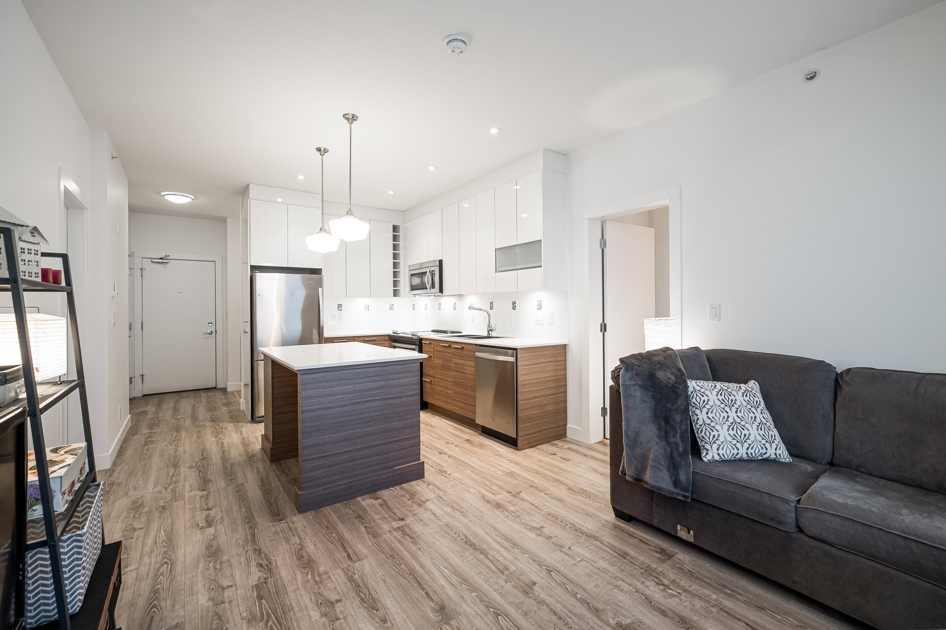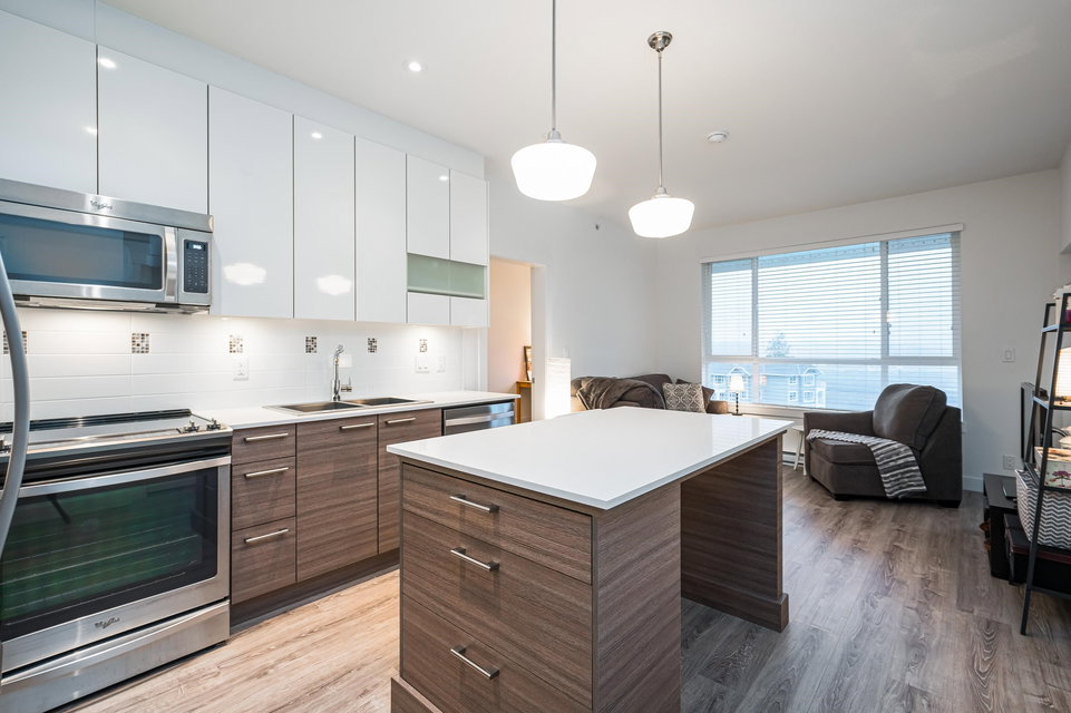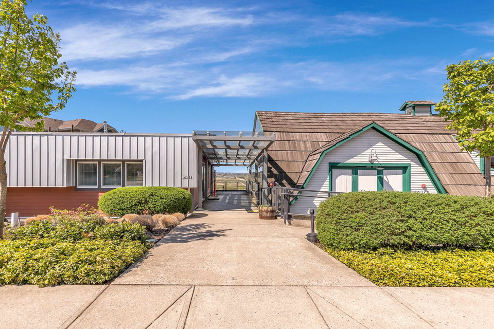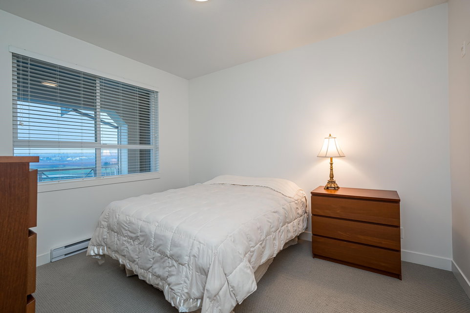 WELCOME HOME to THE RIDGE at BOSE FARMS – country residences on an old Surrey landmark complete with heritage barn, dairy shed & farmhouse. Located in a beautiful pastoral setting with UNOBSTRUCTED VALLEY VIEWS & peek-a-boo MOUNTAIN VIEWS, this TOP FLOOR 2 bed, 1 bath PLUS DEN is thoughtfully laid out, perfect for first time buyer or investor, boasting quartz stone countertops, laminate hardwood flooring & brand new carpet, stainless steel appliances, walk-in closet and huge windows to let lots of light in. Enjoy watching the SUNSETS from your west facing balcony. The stunning amenities include exclusive club house with full kitchen, yoga room, library, media room, community gardens, guest suites in the old farmhouse, and so much more! 1 parking. 1 storage. RENTALS & PETS OK.