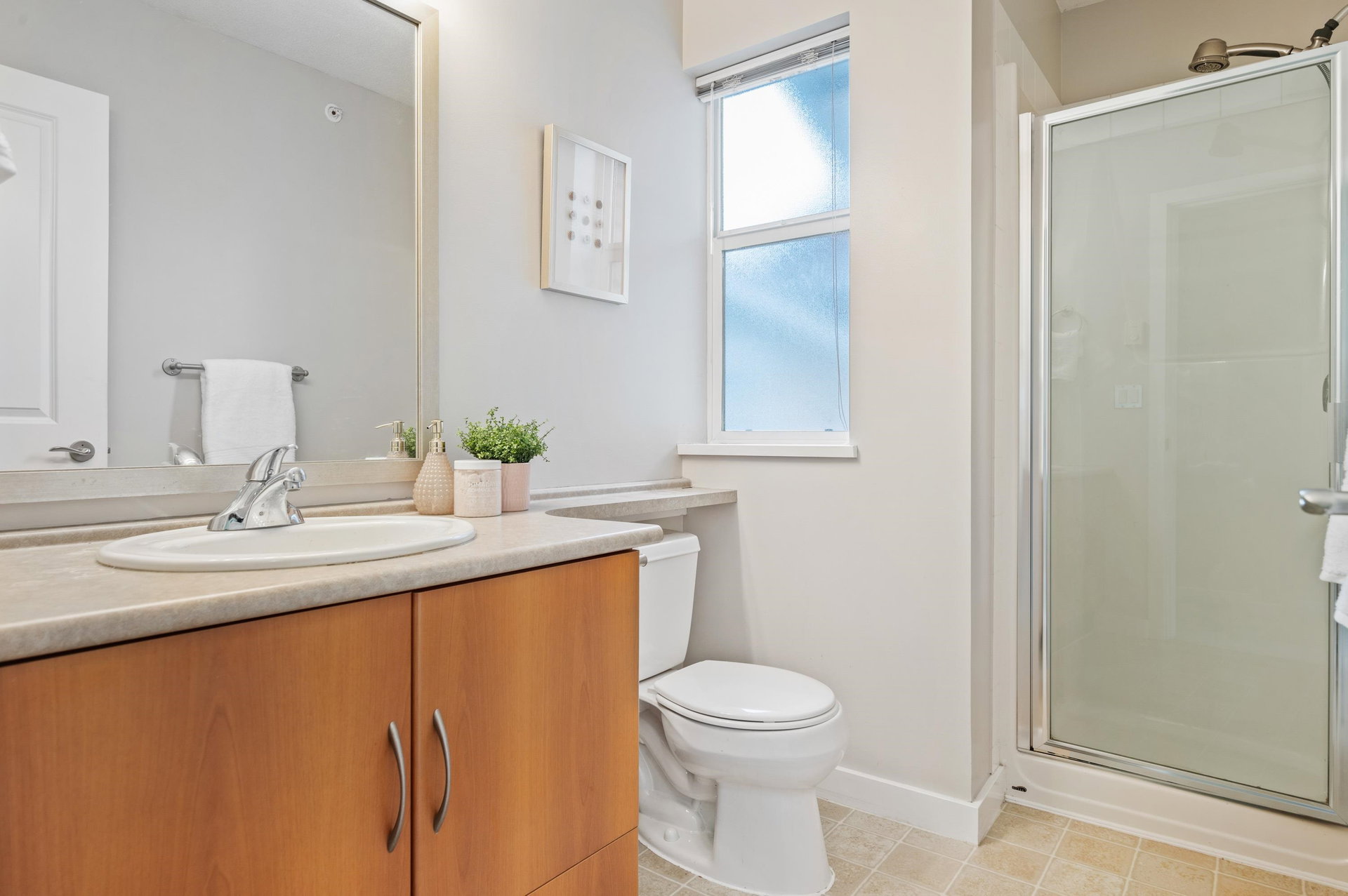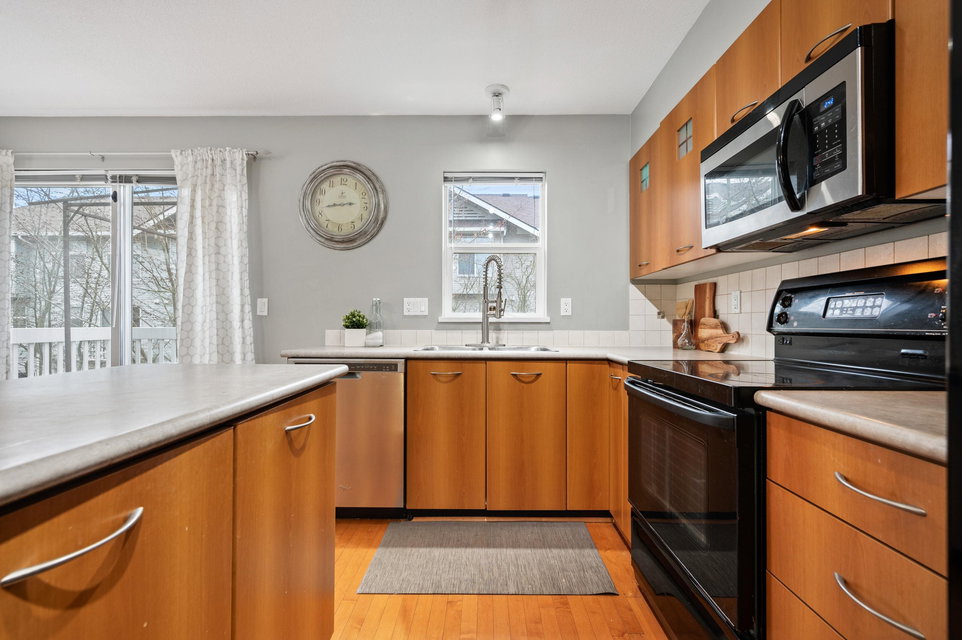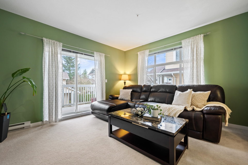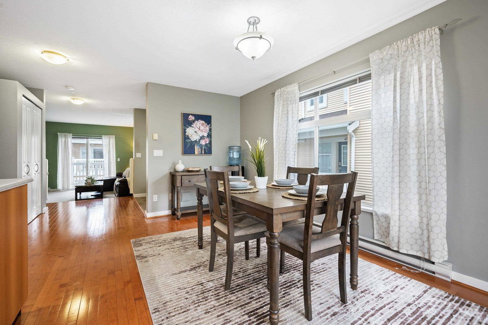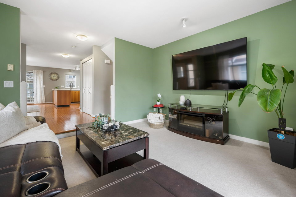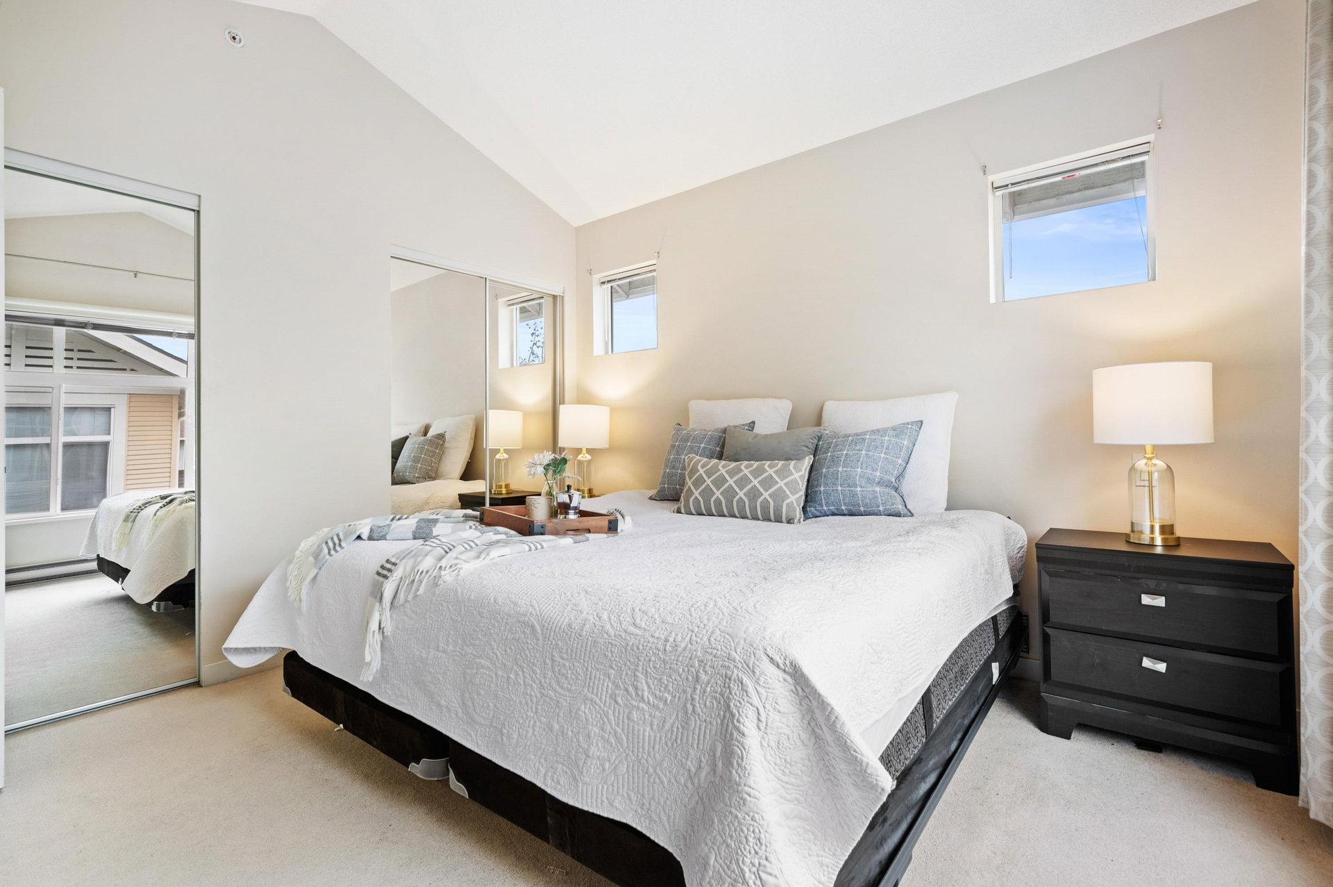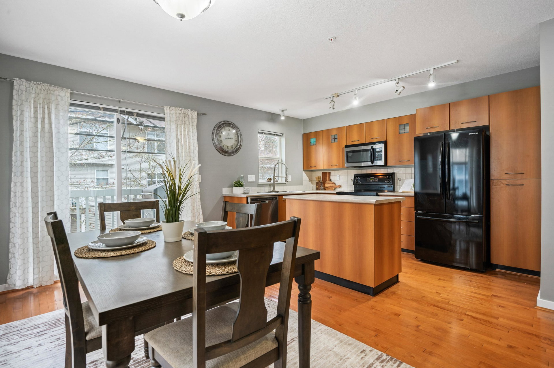 WELCOME HOME to this 3-bed END UNIT located in popular DENIM 1. Enjoy the ease of hardwood floors in the kitchen/dining room which seamlessly flows into a sunken living room, providing an ideal space for relaxation and entertaining, boasting an east-facing deck plus a second, west-facing deck off the kitchen. The master bedroom features a vaulted ceiling, double closets & 4-piece en-suite. Tandem parking plus 3rd open spot in partially covered driveway. Conveniently located near shopping, transit, schools, trails, and with easy highway access, this townhouse offers the perfect blend of comfort and convenience. 2 four-legged animals allowed. No height, weight or breed restriction as per Bylaws. Call today & make this house your new home!