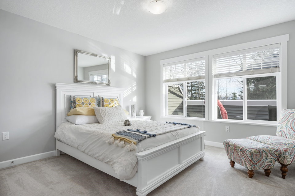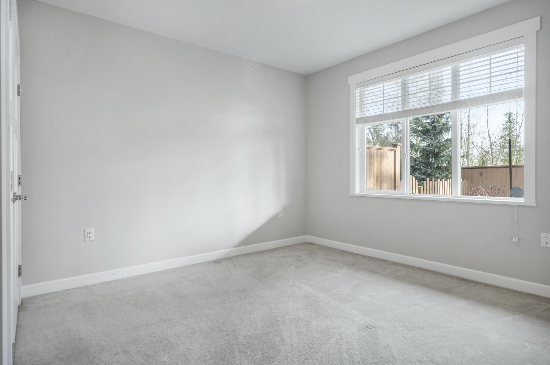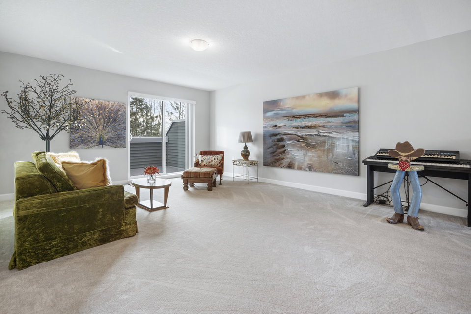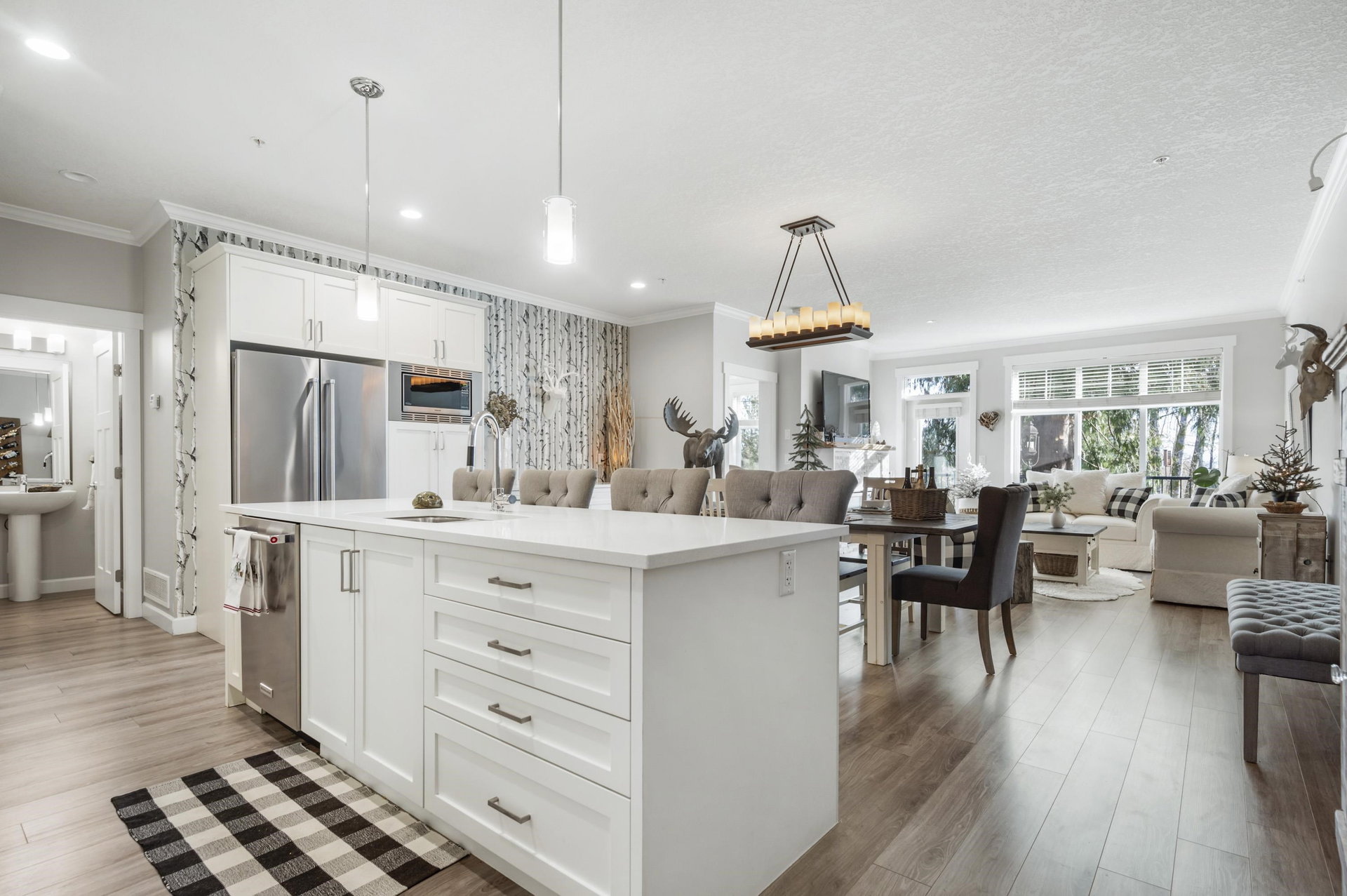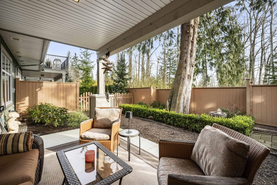 WELCOME HOME to this well-appointed MASTER ON MAIN townhouse located in Prestwick, backing onto GREENBELT and boasting incredible views of farmland, Mount Baker and sunrises! Your new home has an open floorplan with everything you need on the main including the primary, laundry room and outdoor deck. Enjoy spacious kitchen with a built-in buffet and pantry cupboard. Upstairs is the perfect setup for guests or a teenager with a bedroom/bathroom and huge Family Room plus another deck offering ultimate privacy. The basement features a huge rec room with a wetbar, 3rd bedroom/bathroom, and access to the private, fully fenced backyard. Bonus feature is double side-by-side garage plus FULL DRIVEWAY large enough to fit a full-size truck and second vehicle.
