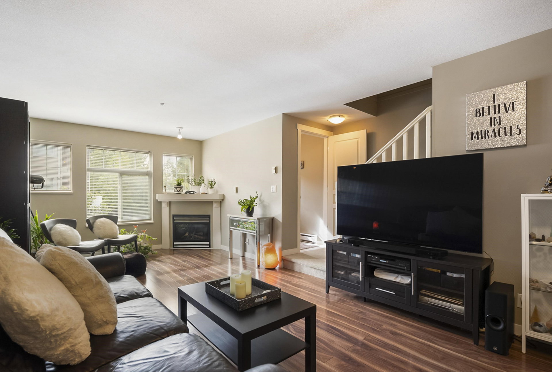 WELCOME HOME to this 3-bed 3-bath, very well laid out home backing onto treed walking path in Wyndham Lane, conveniently located near shopping, eateries, transit and more. Enjoy a large eat-in kitchen with access to back deck overlooking the yard and trees. The main floor also has a spacious living/family room with gas fireplace and 2-piece powder room. Upstairs are 3 bedrooms including an ensuite and laundry. The private backyard is fully fenced – 2 pets allowed: 2 dogs (max 40cm high), or 2 cats, or 1 dog and 1 cat. Call today and make this house your new home!