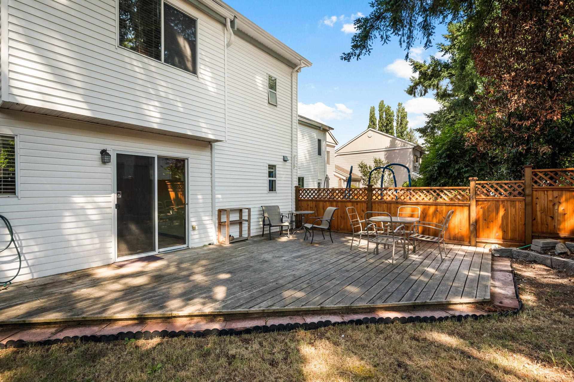 *ASSUMABLE MORTGAGE 1.94%* WELCOME HOME to this 3-bedroom, 3-bathroom END UNIT nestled within Maple Villas. This delightful home offers a host of features that make it a perfect choice for comfortable living and entertaining. As you step inside, you will be greeted by a spacious living room boasting vaulted ceiling creating an open and airy ambiance. The heart of the home is the eat-in kitchen providing a delightful space for family meals and entertaining with sliding doors leading to the fully fenced generous sized backyard with huge deck. Convenience meets functionality with the presence of a main floor laundry room featuring laundry sink. Single garage plus driveway that comfortably accommodates two more vehicles ensuring ample parking space for you and your guests. 1 cat or dog.