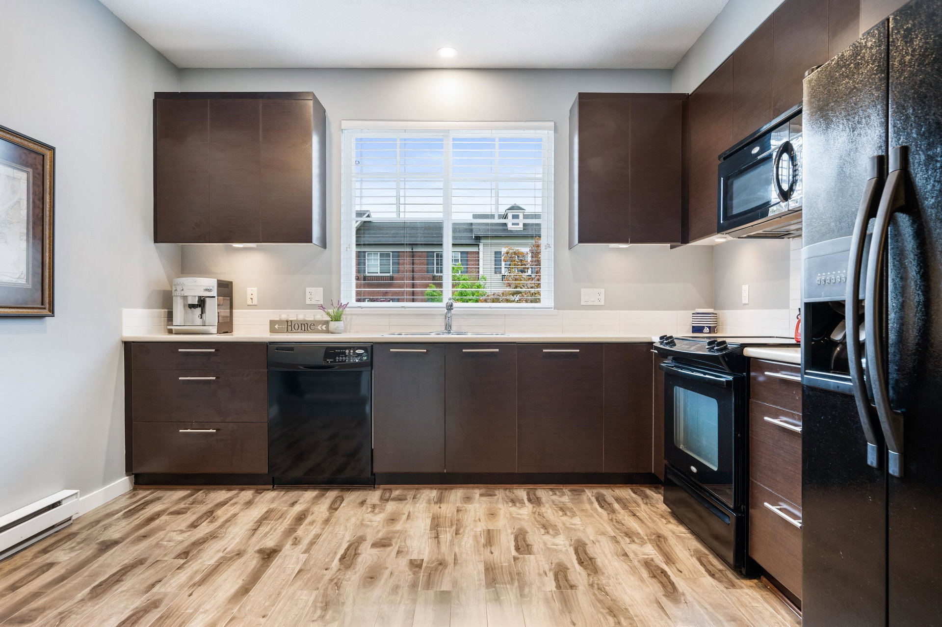 WELCOME HOME to this 2-bed, 2-bath PLUS DEN unit located in the heart of Clayton in Tate. You are welcomed into this brick-faced home with street-level entry with den and 2-piece powder room on ground floor. Main floor boasts open concept spacious kitchen, dining & living room with electric fireplace & electric blinds on sliding door. Balcony overlooks the tree-lined path that winds through the complex. Upstairs are 2 large bedrooms on opposite ends of the townhouse with a 5-piece bathroom in-between. High ceilings on the main floor give an open, spacious feel. This unit is situated on the outside of the complex overlooking a quiet street with bonus street parking. Single garage plus partially covered carport/driveway in the rear. 2 pets. OPEN HOUSES: Sat & Sun May 13 & 14 2-4pm.