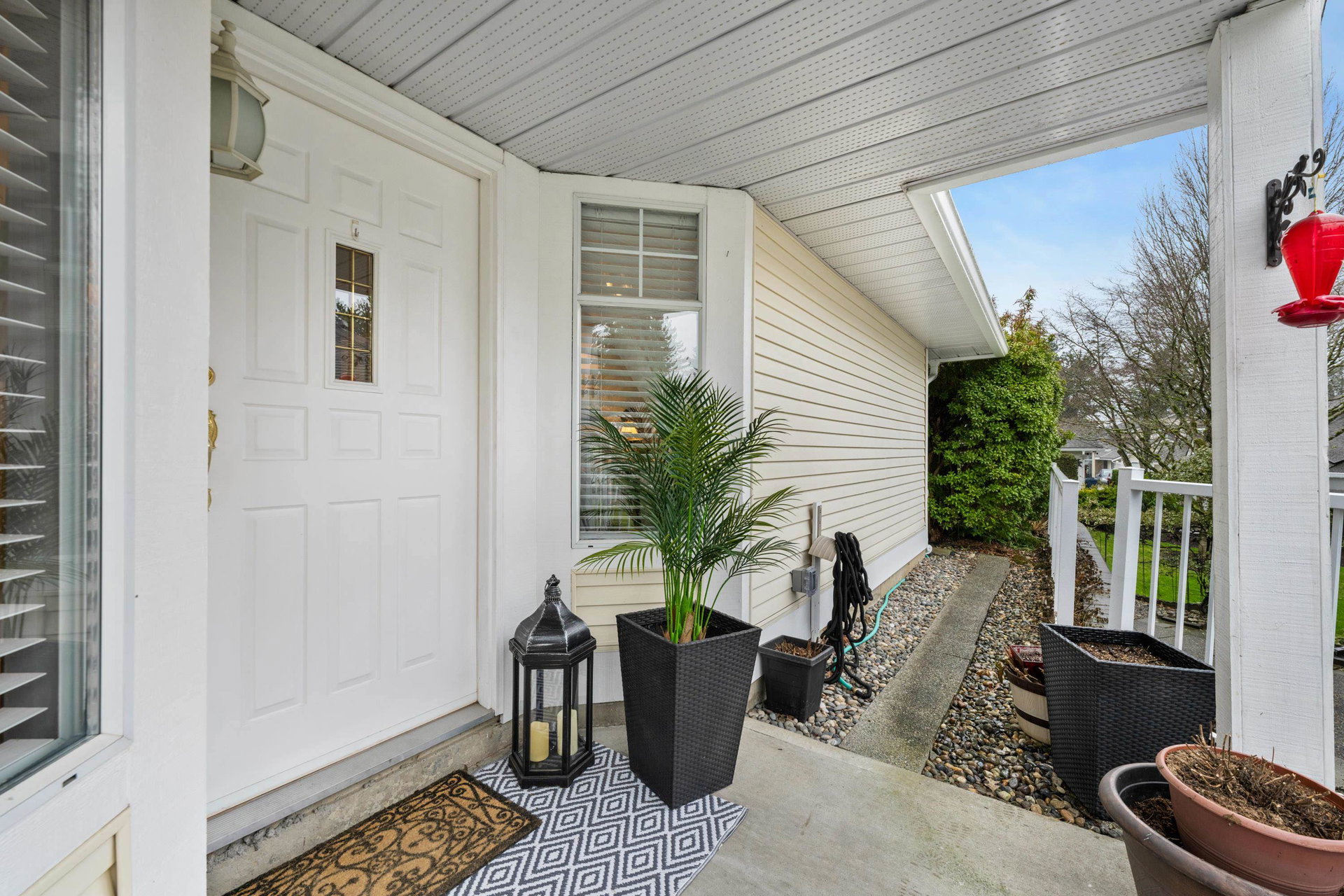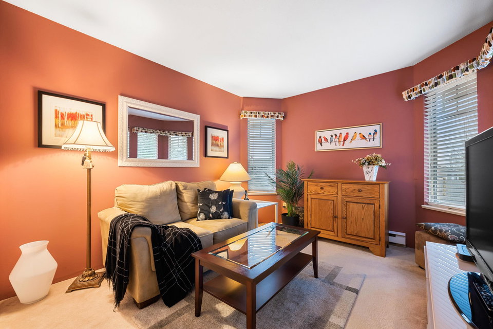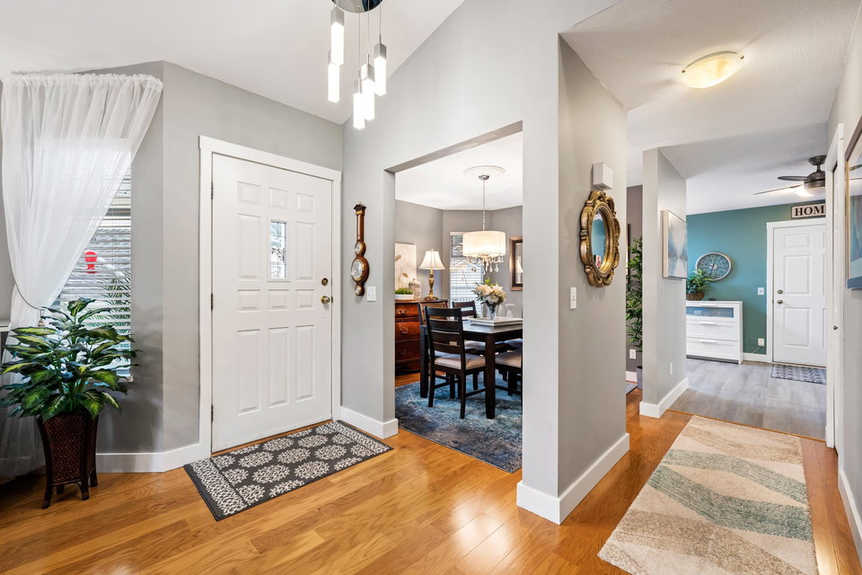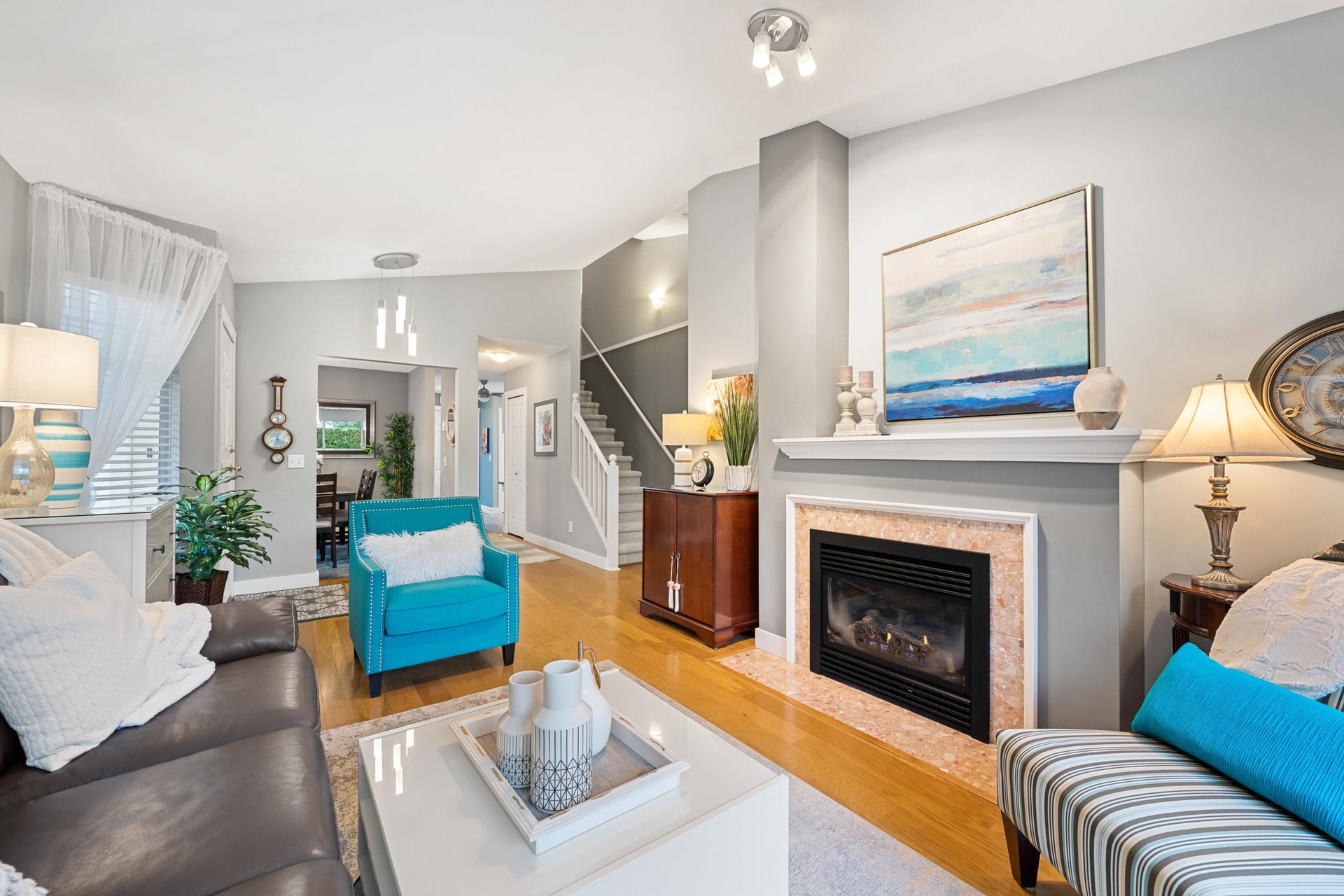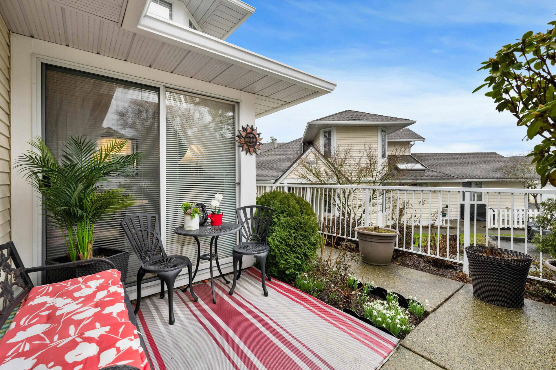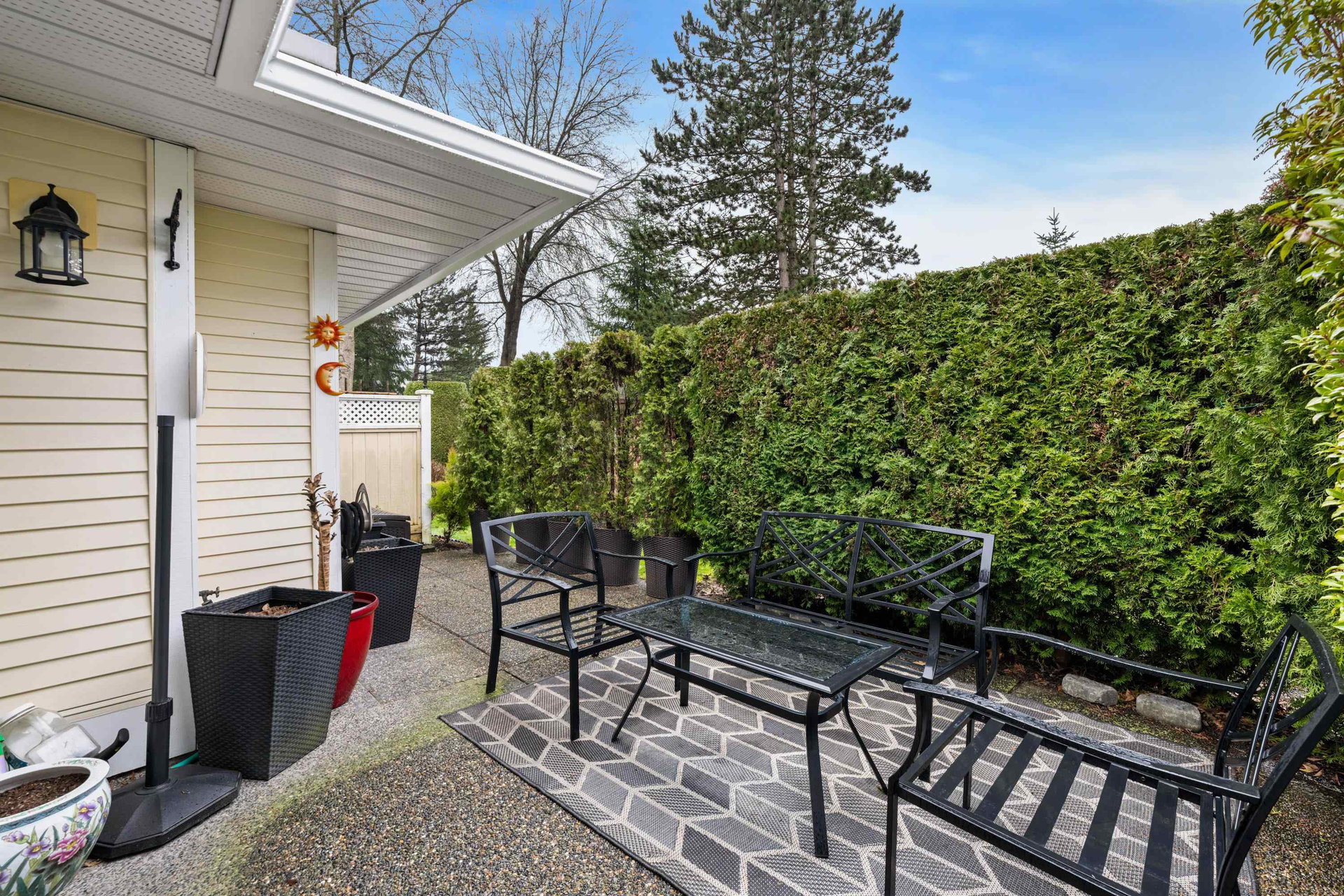 WELCOME HOME to this beautiful, updated home in popular 55+ gated Chartwell Green. This 3 bedroom townhouse with MASTER ON MAIN boasts vaulted ceiling in the living room, bright kitchen with eat-in area & skylight and private treed patio in the back plus bonus patio off the kitchen. Huge primary suite is well appointed with updated bathroom; soaker tub, separate shower, and walk in closet with built-in organizers. Upstairs features 2 bedrooms and a fully updated bathroom. Side-by-side double car garage with epoxy flooring. Amazing amenities featuring outdoor pool, hot tub, clubhouse, workshop, RV parking & lots of visitor parking. Steps from Save-On Foods, Pharmacy, Walk-In Clinic, Dentist and more. PETS:1 dog and 1 cat or 2 cats ok. Call today to make this your home!