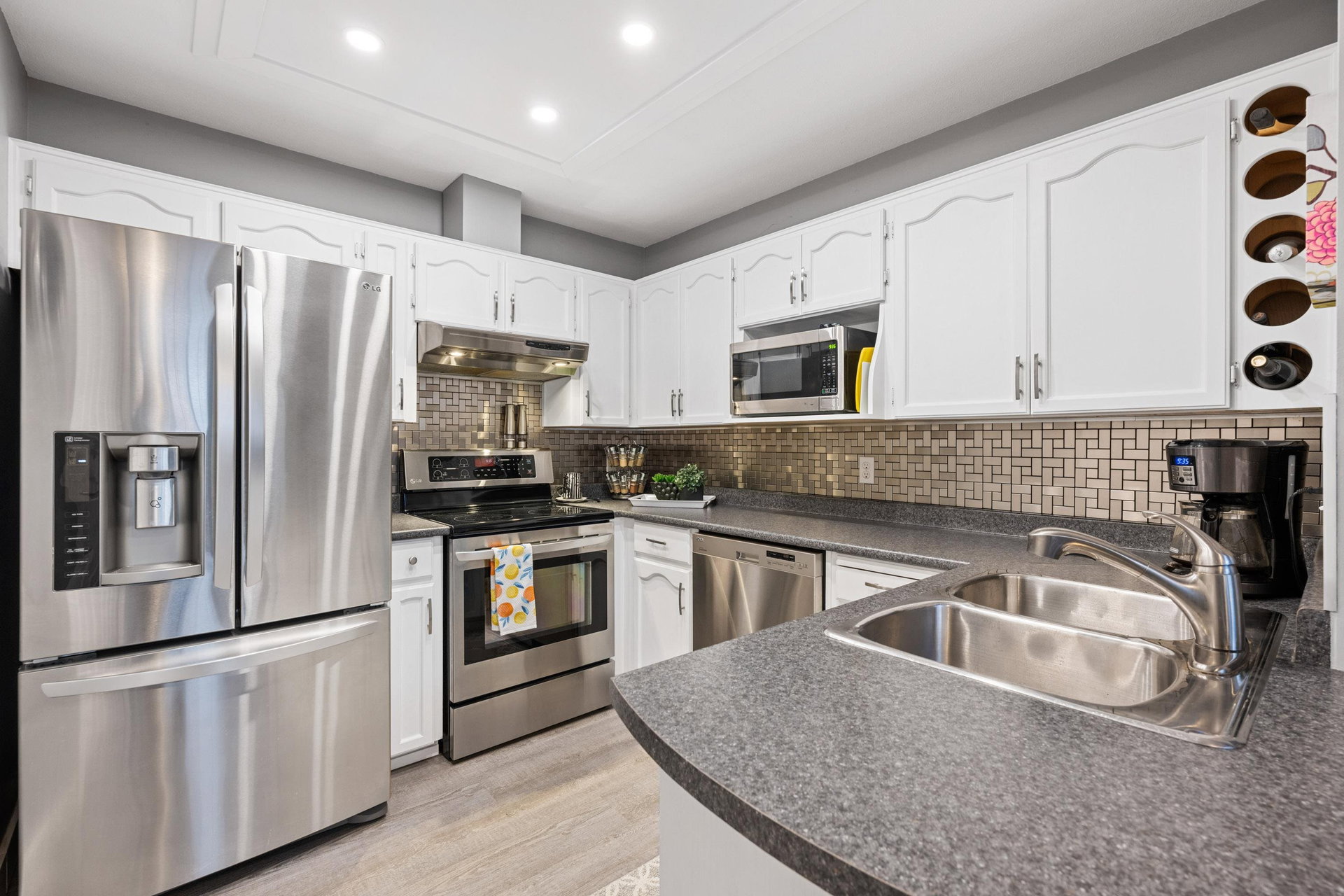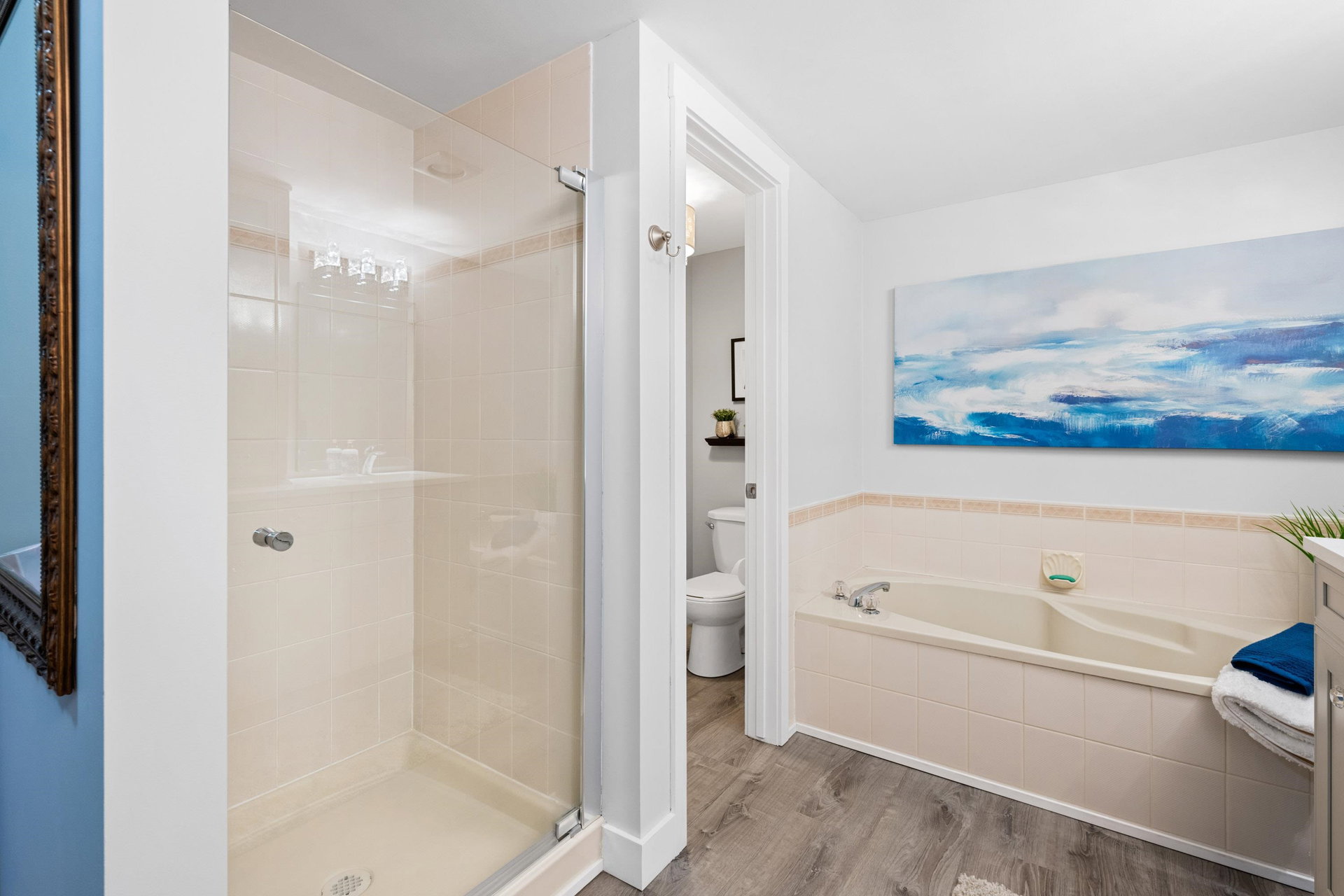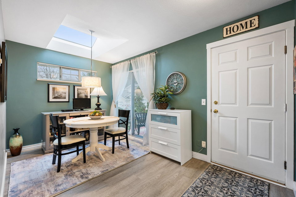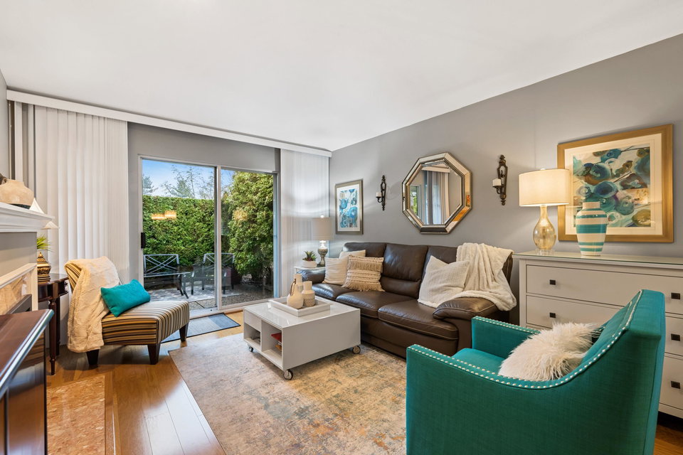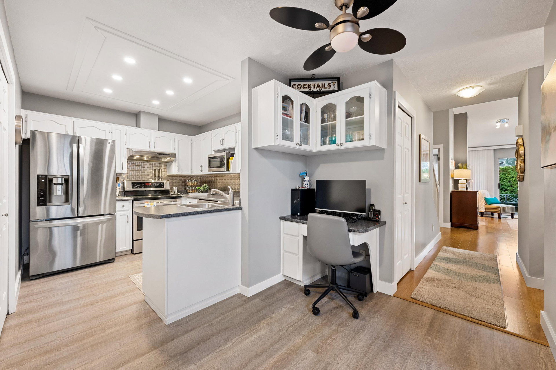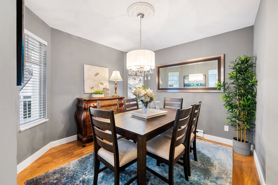 WELCOME HOME to this beautiful, updated home in popular 55+ gated Chartwell Green. This 3 bedroom townhouse with MASTER ON MAIN boasts vaulted ceiling in the living room, bright kitchen with eat-in area & skylight and private treed patio in the back plus bonus patio off the kitchen. Huge primary suite is well appointed with updated bathroom; soaker tub, separate shower, and walk in closet with built-in organizers. Upstairs features 2 bedrooms and a fully updated bathroom. Side-by-side double car garage with epoxy flooring. Amazing amenities featuring outdoor pool, hot tub, clubhouse, workshop, RV parking & lots of visitor parking. Steps from Save-On Foods, Pharmacy, Walk-In Clinic, Dentist and more. PETS:1 dog and 1 cat or 2 cats ok. Call today to make this your home!