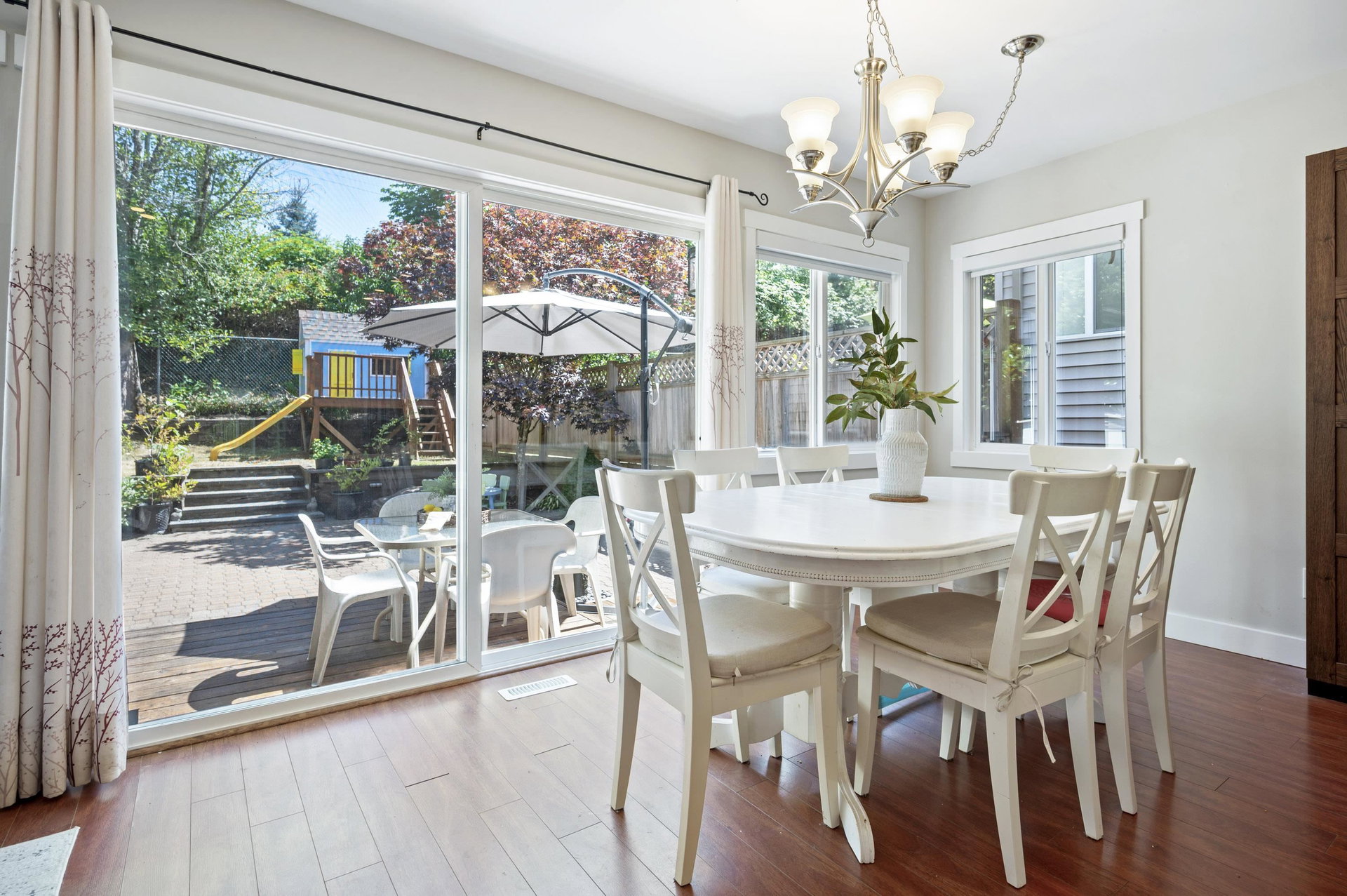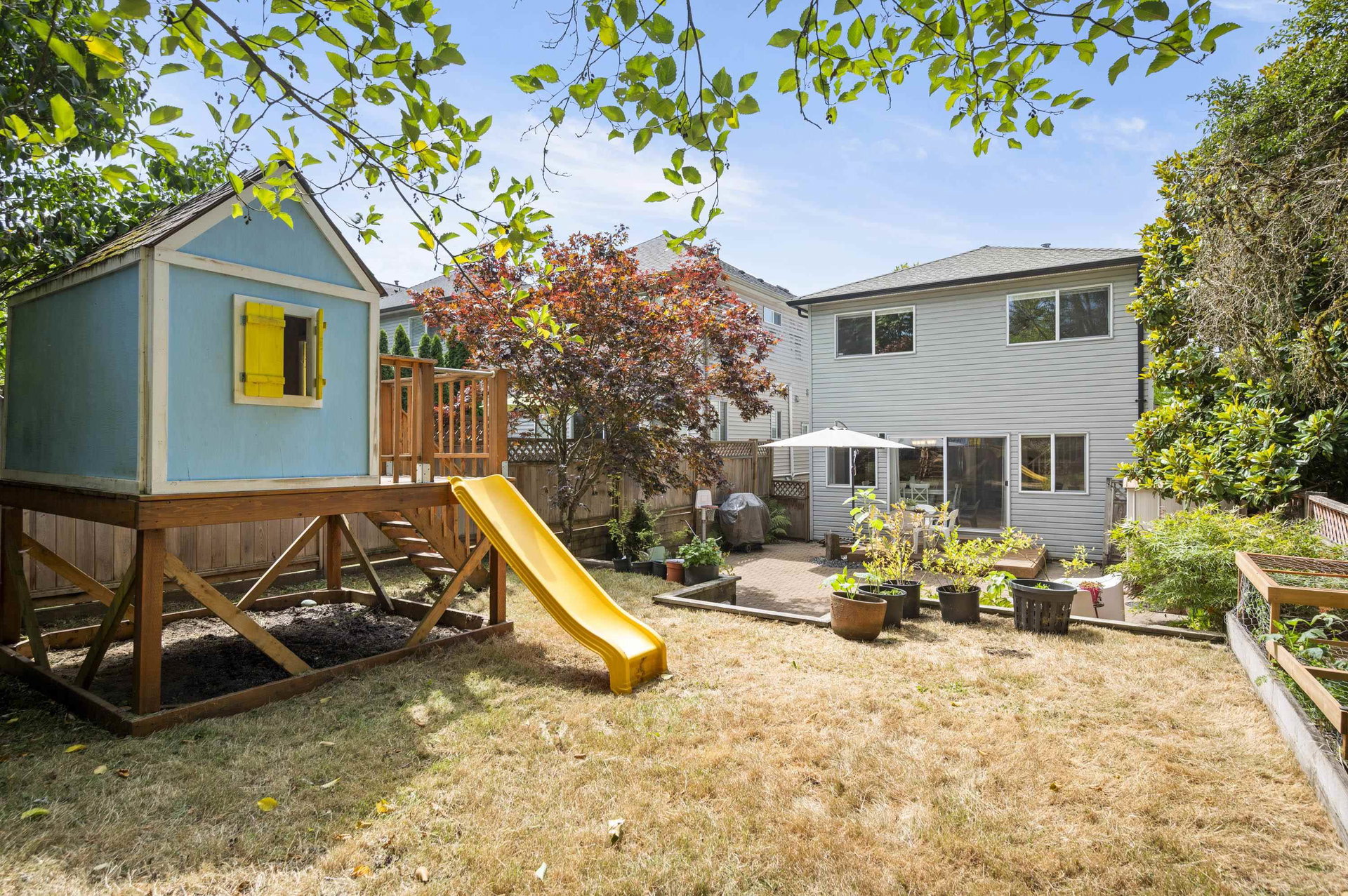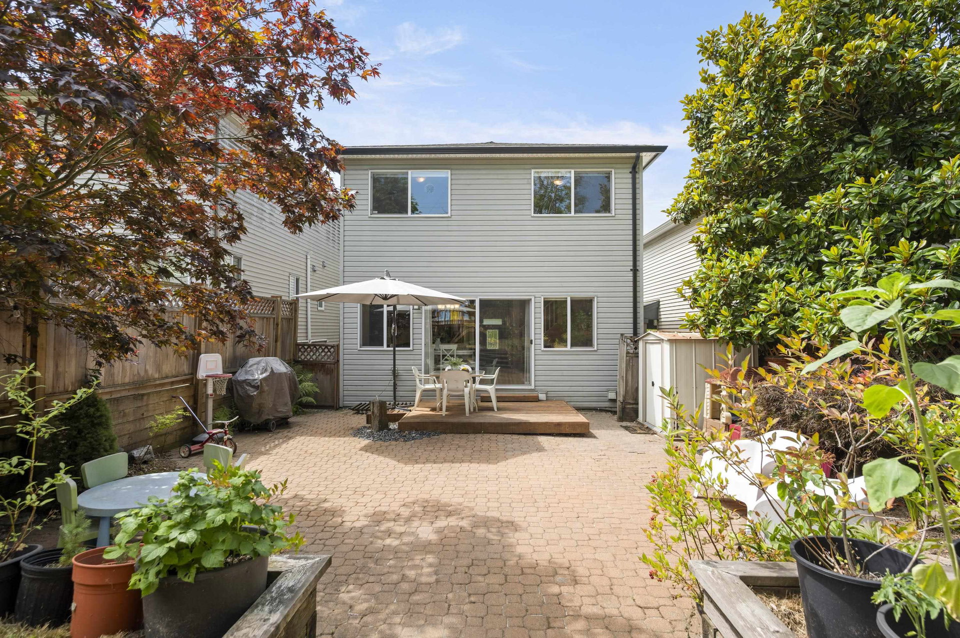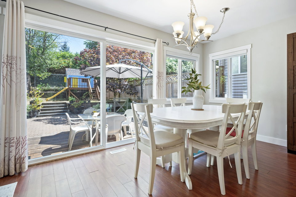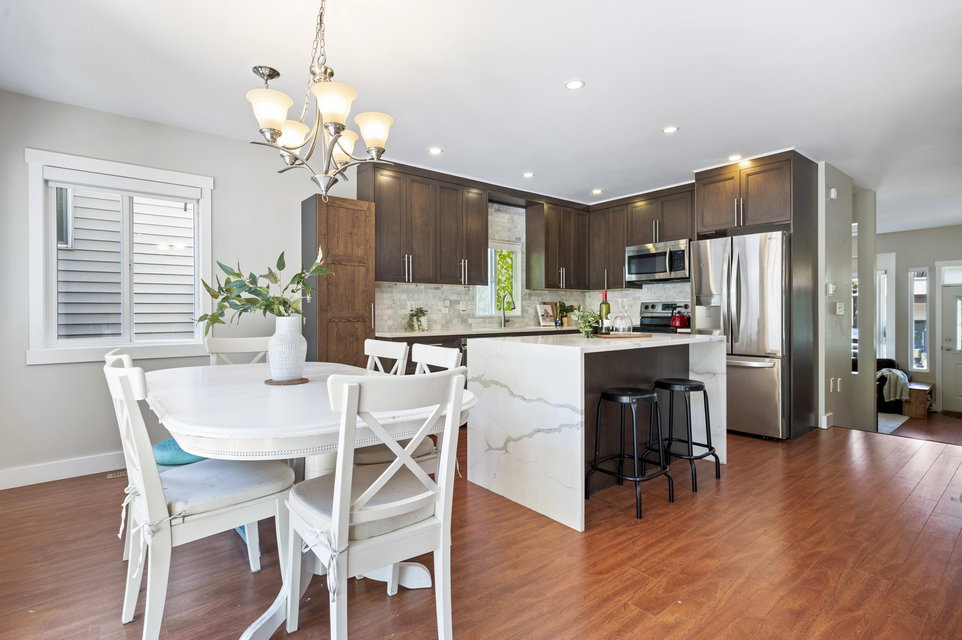 WELCOME HOME to this 3 bedroom home BACKING ONTO THE GOLF COURSE in Hyland Creek, with one of the largest backyards in the complex. Updates to this home include renovated kitchen, laminate flooring, gutters (2021), new 200 amp service panel (2025), tankless hot water tank (2025), heat pump (2025), EV charger outlet (seller is taking the charger) plus extended driveway. Updated primary includes spacious en-suite, 2 closets and reading nook/office space. Bonus LOFT in the garage – perfect for storage (or little playroom for kids!) This detached home is in a bare-land strata; a family oriented neighbourhood within walking distance to schools, community centre, shopping & transit. Call today and make this house your new home!