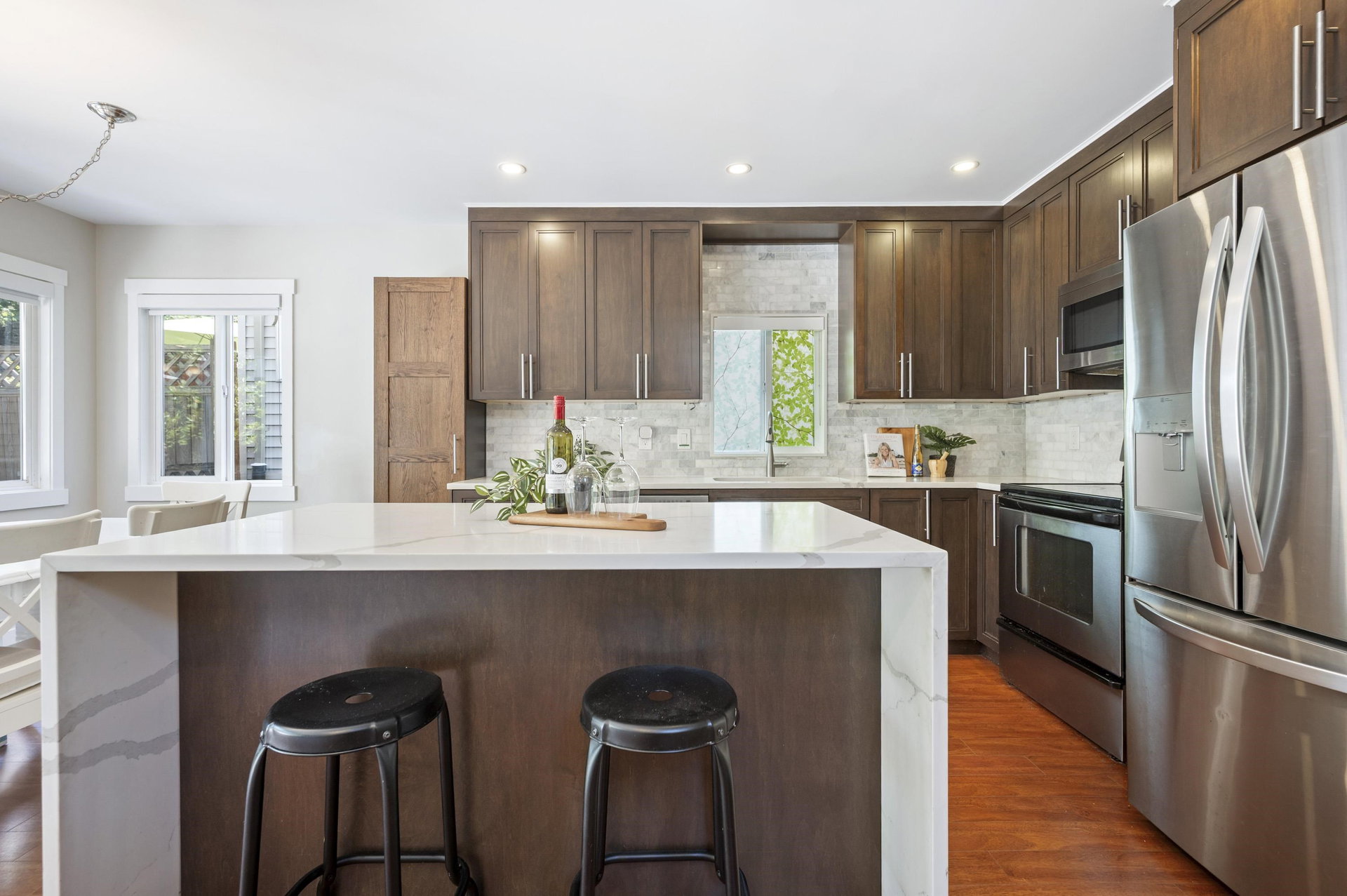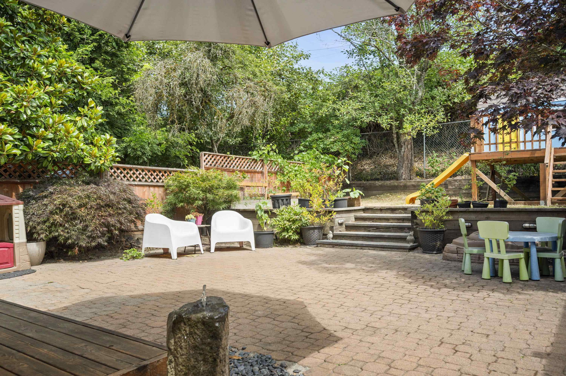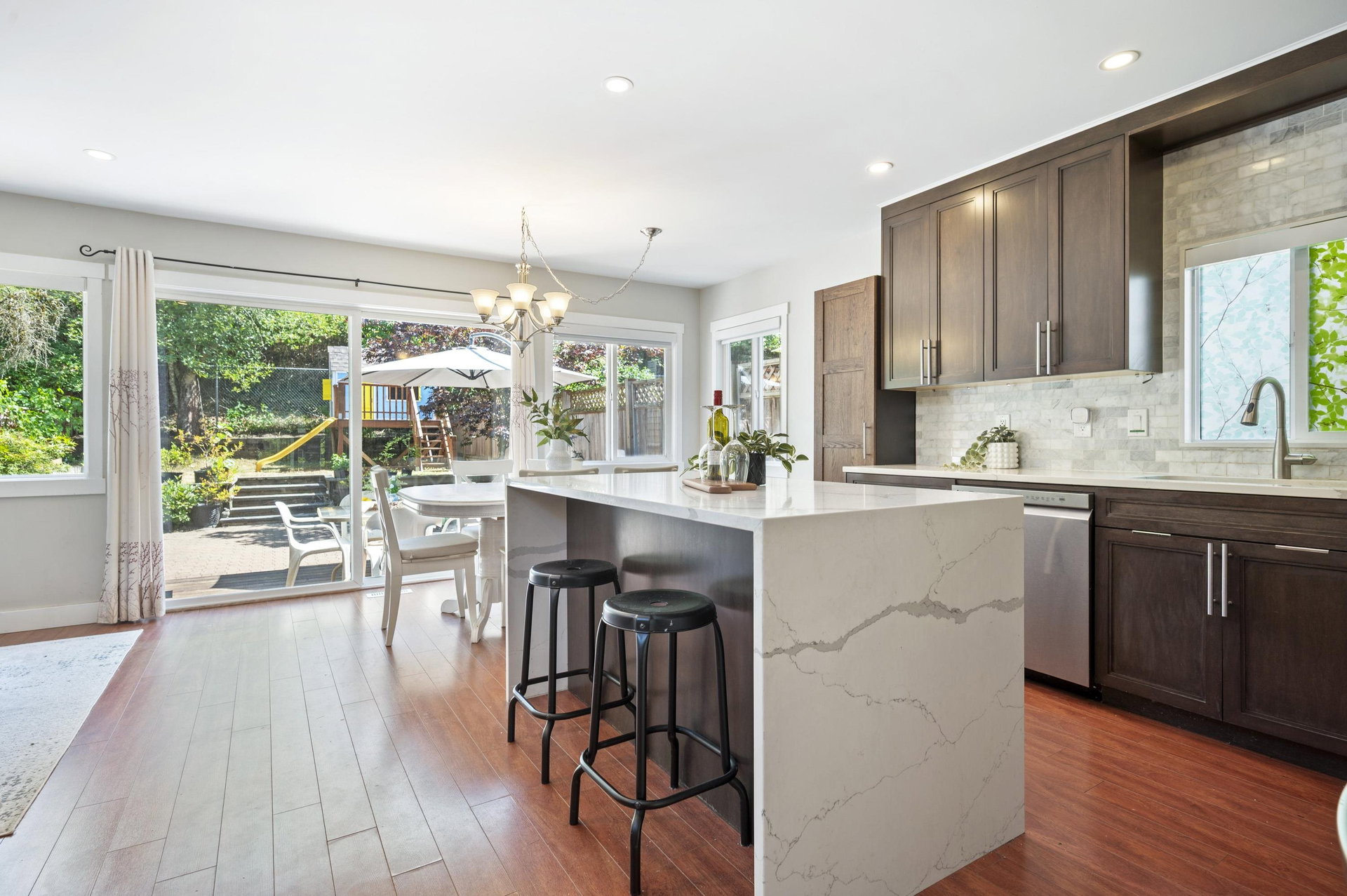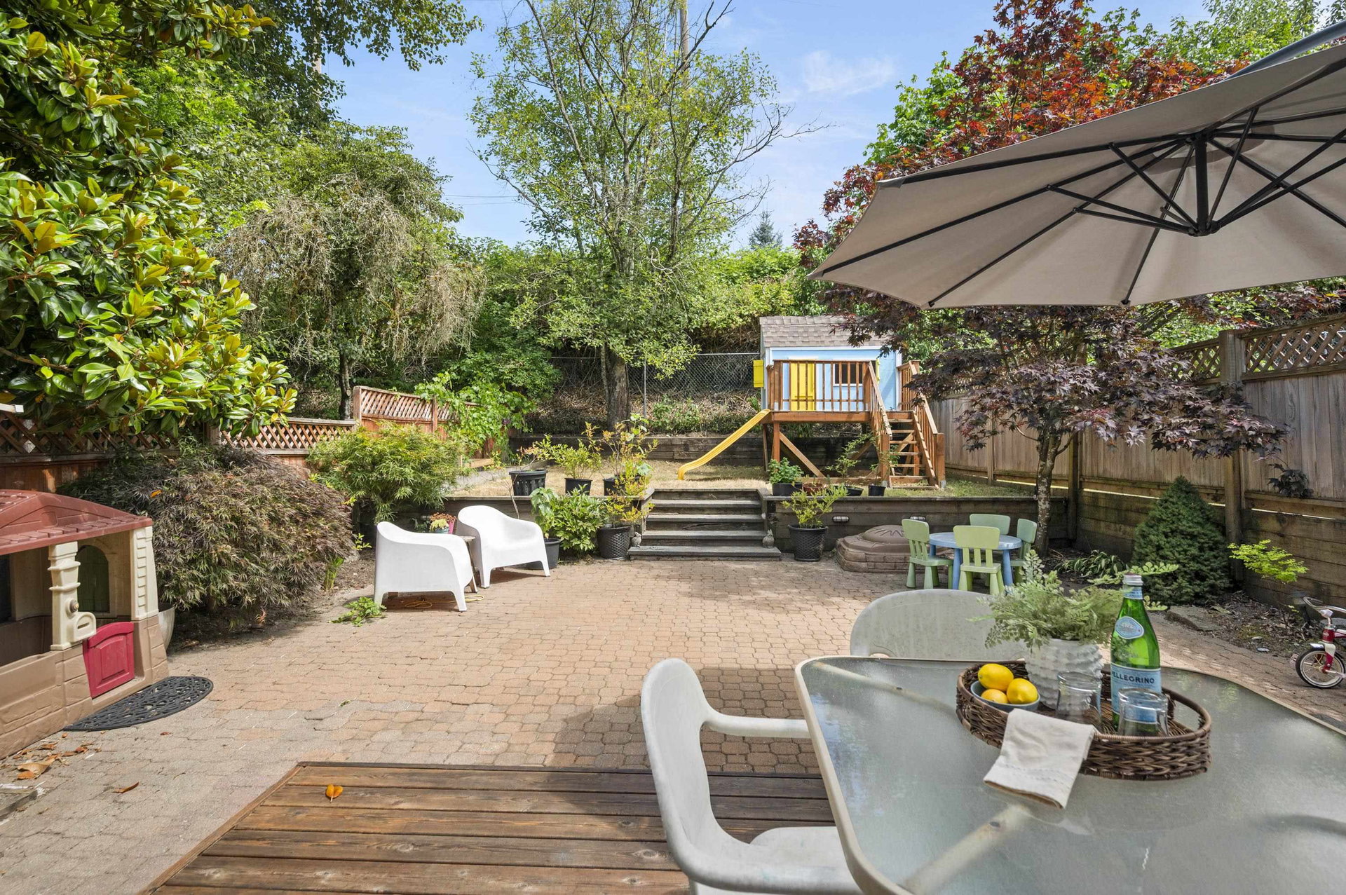 WELCOME HOME to this 3 bedroom home BACKING ONTO THE GOLF COURSE in Hyland Creek, with one of the largest backyards in the complex. Updates to this home include renovated kitchen, laminate flooring, gutters (2021), new 200 amp service panel (2025), tankless hot water tank (2025), heat pump (2025), EV charger outlet (seller is taking the charger) plus extended driveway. Updated primary includes spacious en-suite, 2 closets and reading nook/office space. Bonus LOFT in the garage – perfect for storage (or little playroom for kids!) This detached home is in a bare-land strata; a family oriented neighbourhood within walking distance to schools, community centre, shopping & transit. Call today and make this house your new home!