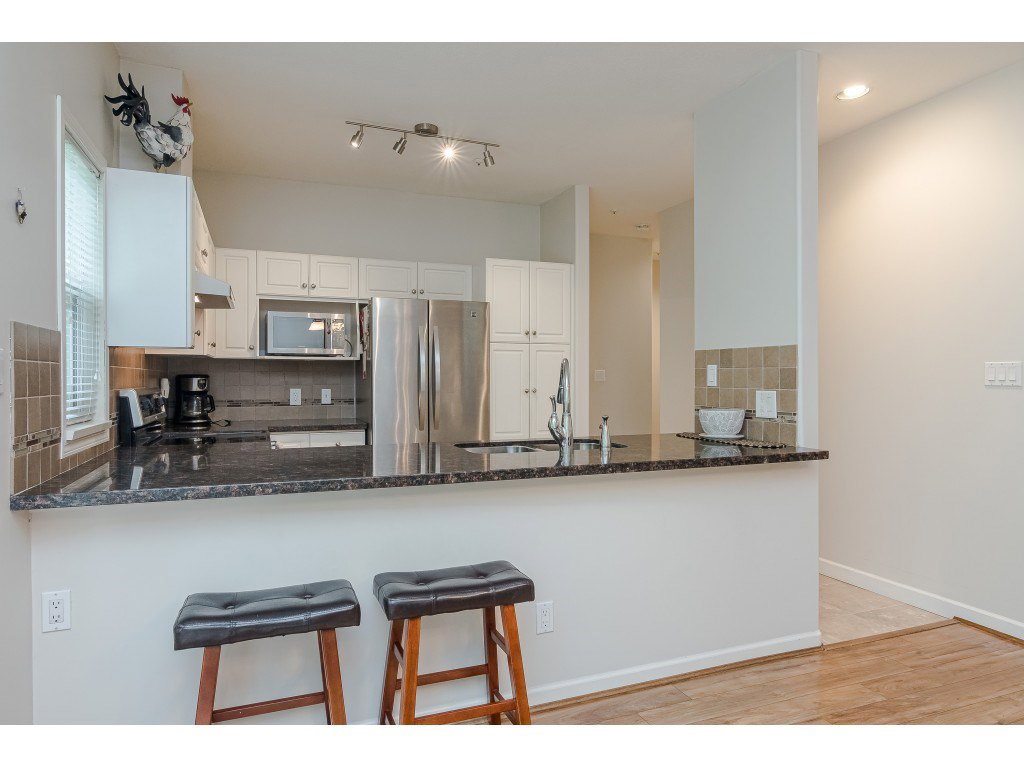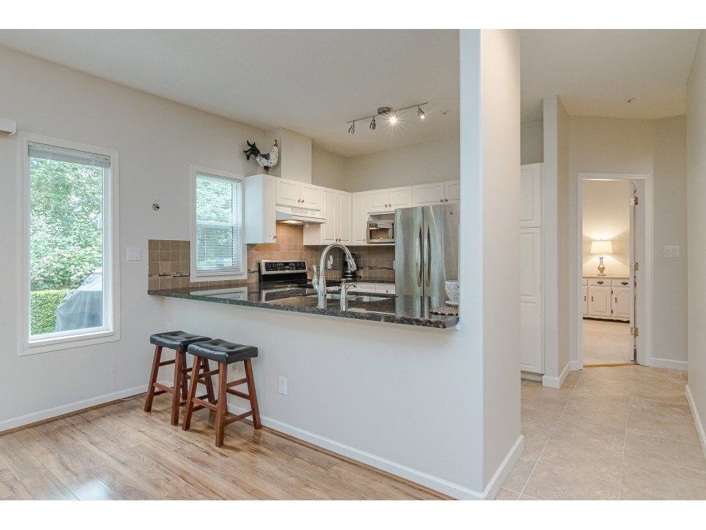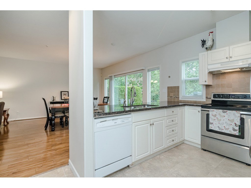 WELCOME HOME to Carriage Park. This 2 bedroom PLUS DEN unit backs onto GREENBELT for ultimate privacy, nature & wildlife! Boasting open space and high ceilings, this home welcomes you to a foyer and into spacious living room with gas fireplace, and dining room. Kitchen has granite and stainless steel and overlooks the private backyard. Your large master suite also overlooks the quiet green space. Separate laundry room right off the garage. The den could easily be converted into a 3rd bedroom. This home has a single car garage plus an open parking pad and the complex has plenty of visitor parking. No rentals are allowed. Call today and make this your new home!