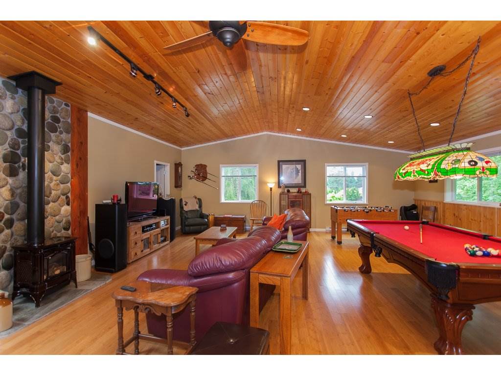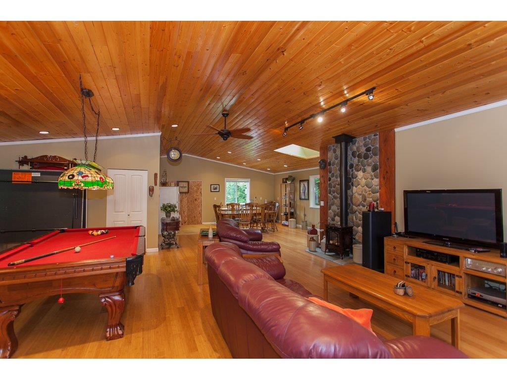 WOW! Almost a full flat acre in FORT LANGLEY. This is a 3 bed RANCHER in beautiful condition with hardwood throughout. Formal living room with raised dining room and beautiful, open kitchen with s/s and granite leading to family room with sliders onto huge deck overlooking beautiful private backyard. Large master with sliders also leading to deck with hot tub. Hi efficiency heat pump/ac. Roof approx 15 yrs. Hot water on demand. BONUS SHOP!! Built in 2008, 30’x40′ shop with 220 power, insulated ceiling, with huge open games room above, bedroom & bathroom. Storage sheds; raised, fenced garden; dog run. OPEN HOUSE Sun June 18th 2-4pm.