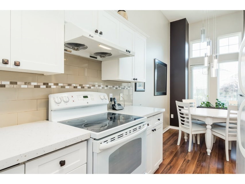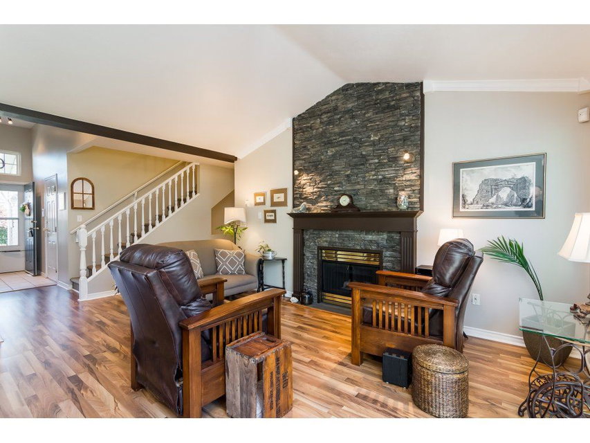 WELCOME HOME to this delightful, well maintained and updated 3 level townhouse with DOUBLE CAR, SIDE BY SIDE GARAGE. This bright, spacious 4 bedroom home boasts vaulted ceilings in the living room and a master on the main. Huge rec room in the basement where you’ll also find another bedroom, a bathroom and large laundry/storage room. Upstairs view of North Shore Mountains and walk out SOUTH FACING backyard from the living/dining room. New carpets & kitchen updated in 2016, new roof in 2018. Kensington Village is conveniently located close to transit, shopping, freeway and recreation. Call today to make this house your home! OPEN HOUSE CANCELLED.