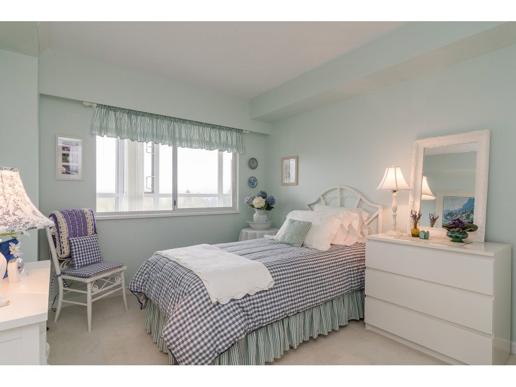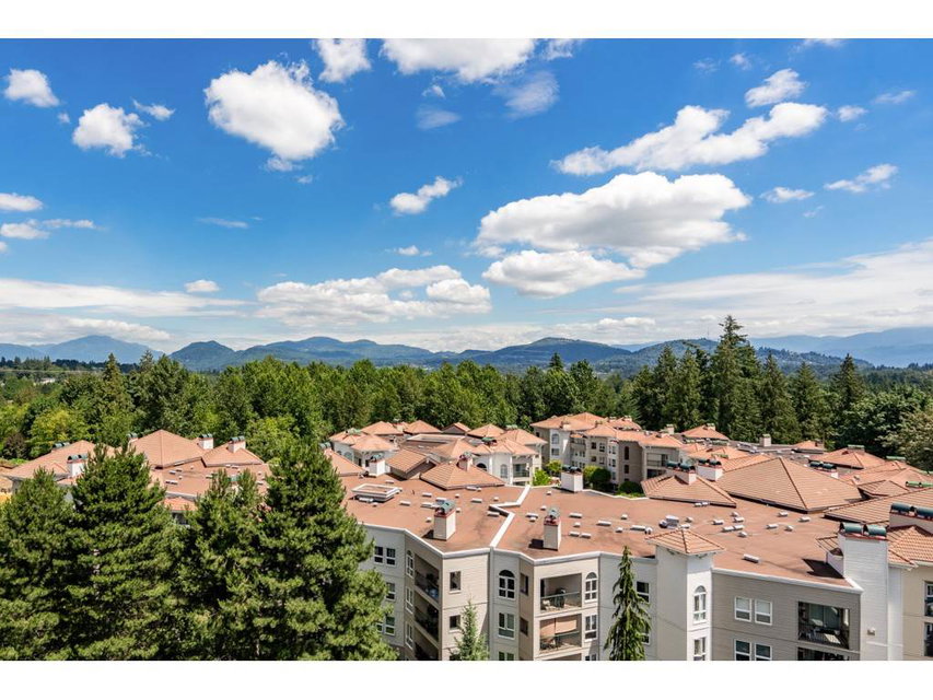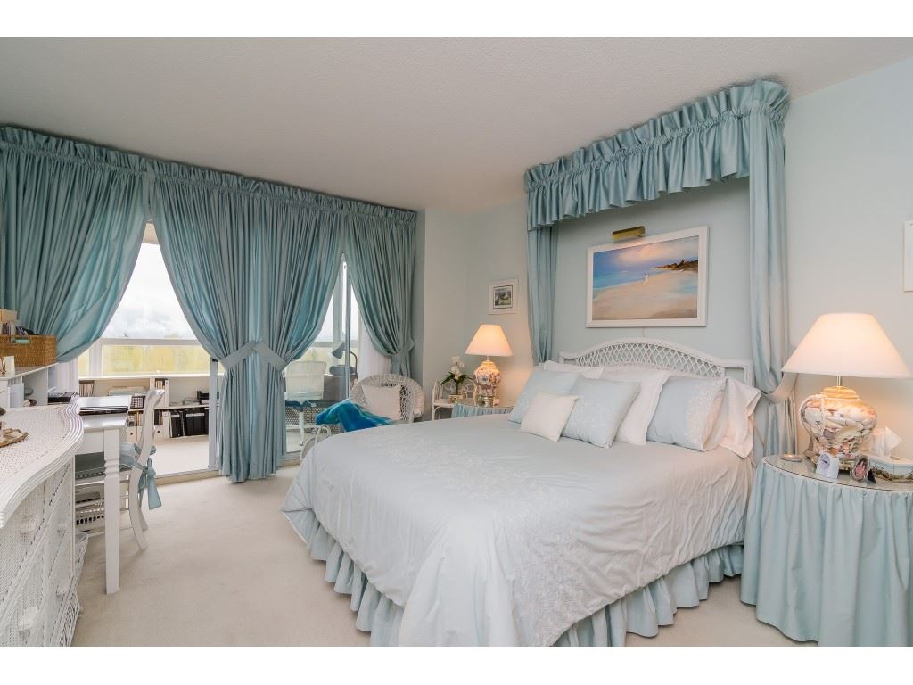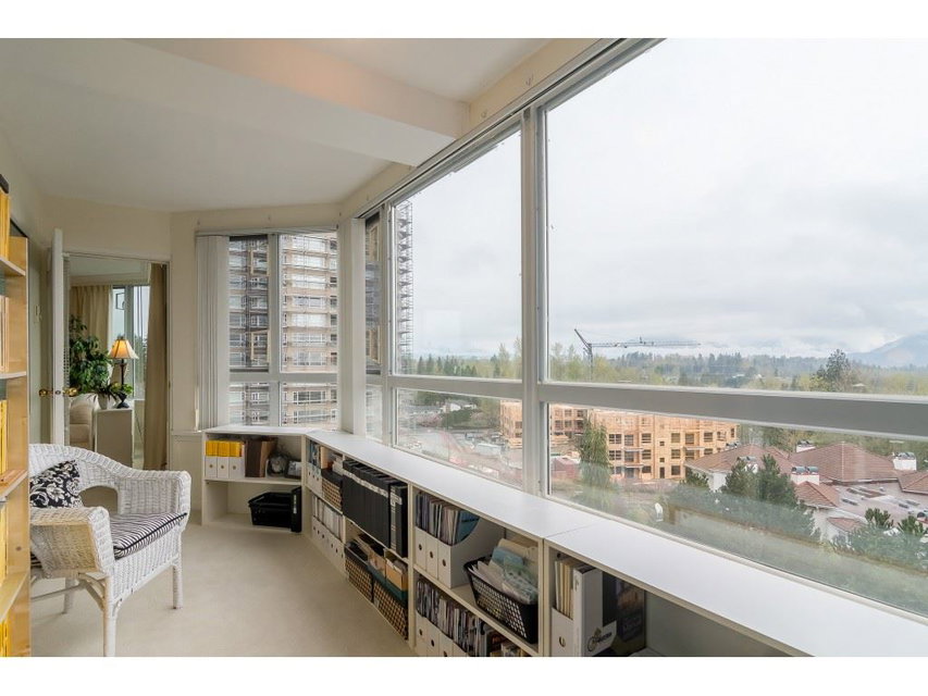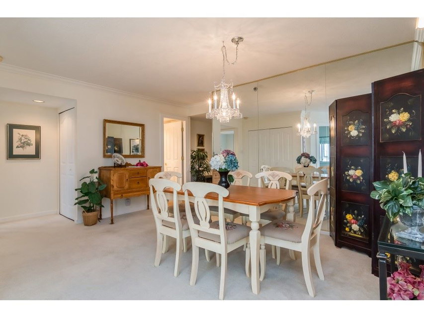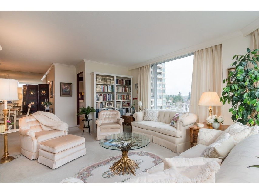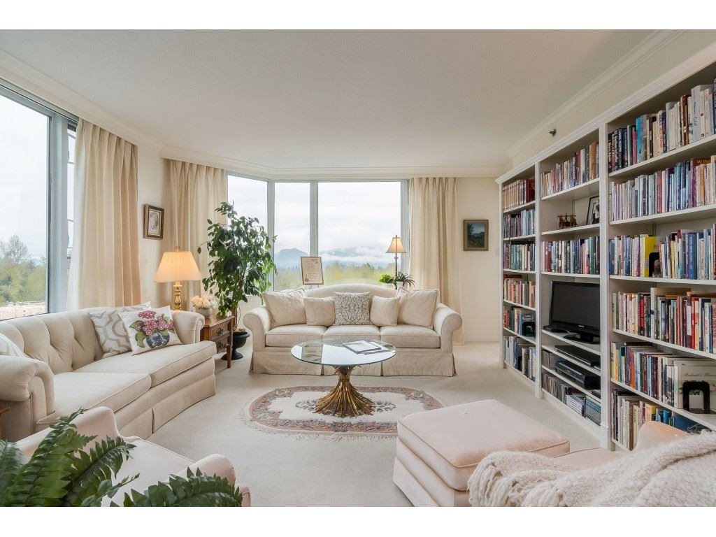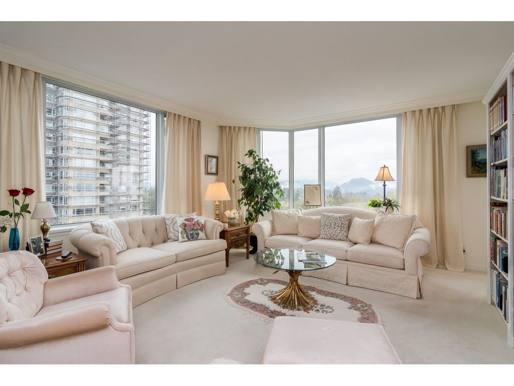 WELCOME HOME to the prestigious REGENCY TOWER (building 2). This 2 bedroom, 2 bath CORNER UNIT is well appointed, boasting incredible views of the North Shore Mountains, the valley out to Chilliwack and the stunning Mount Baker. Enjoy your morning coffee from the closed in solarium/sunroom as you watch the sunrise! Updated kitchen with engineered hardwood & custom island and each closet has extra deep shelving and organizers. 1 parking spot included. Regency Tower is a 35+ building featuring 3 Guest Suites, an indoor pool, hot tub and steam room; exercise room; billiards rooms; even a beauty salon! Measurements include the closed in solarium. Call today and make this your new home!