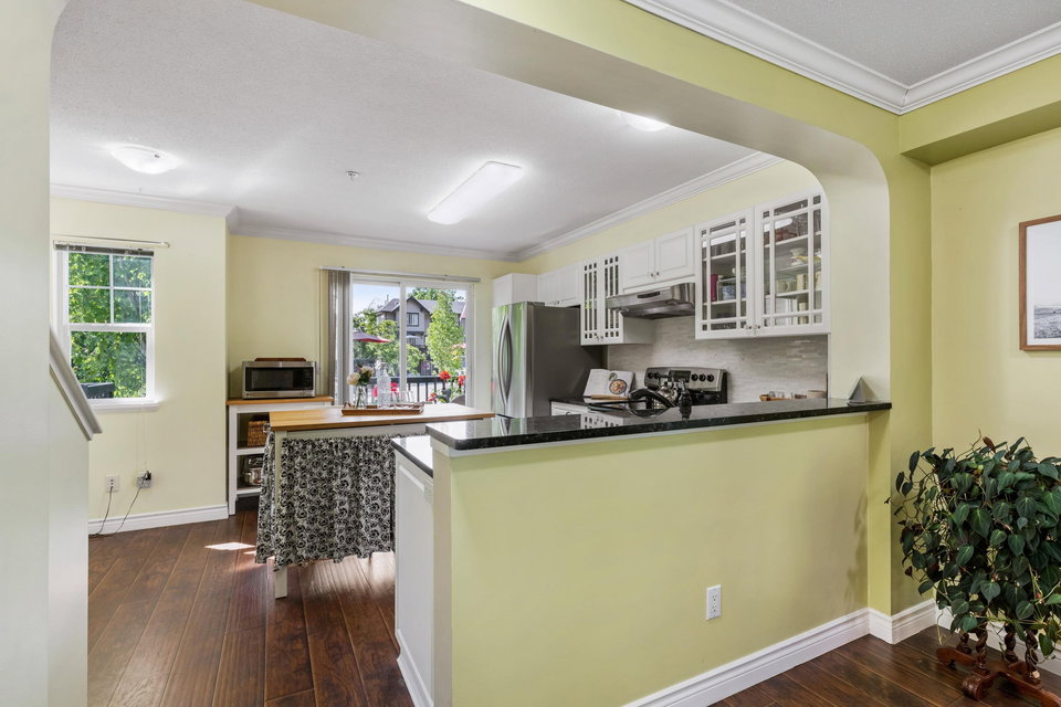 WELCOME HOME to this charming end unit townhouse in STEEPLECHASE. This delightful 2-bedroom, 2-bathroom home offers an inviting open floorplan that is sure to capture your heart. Updates include laminate flooring, stainless appliances, new kitchen cabinetry and granite counters. Some updates to the main bathroom. Nestled on a serene greenbelt, the walk-out, fully fenced backyard provides a peaceful retreat, offering unparalleled privacy. Convenience is key, and this home provides ample parking for up to 3 vehicles, ensuring your guests are always welcome. Situated in a tranquil and peaceful complex, you’ll appreciate the serene atmosphere and the ease of access to nearby amenities including shopping, transit, eateries & more. 2 cats OR 2 dogs or 1 of each. No vicious breeds.