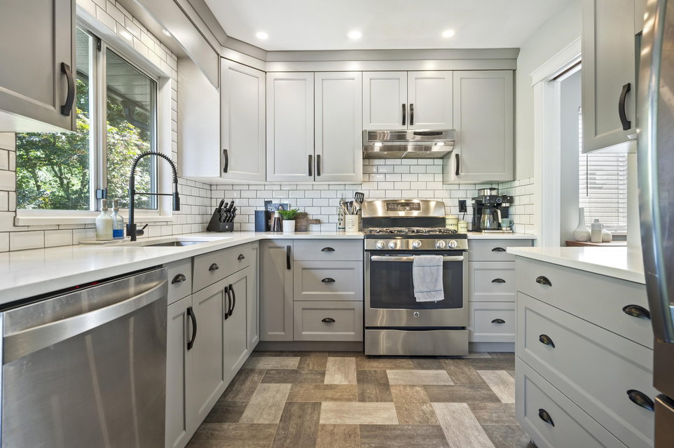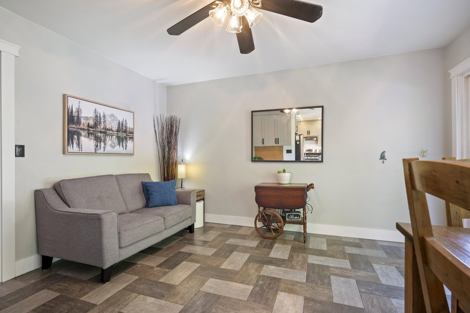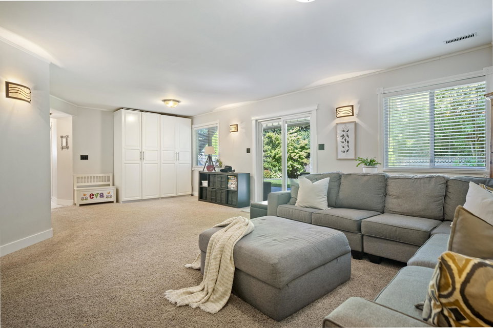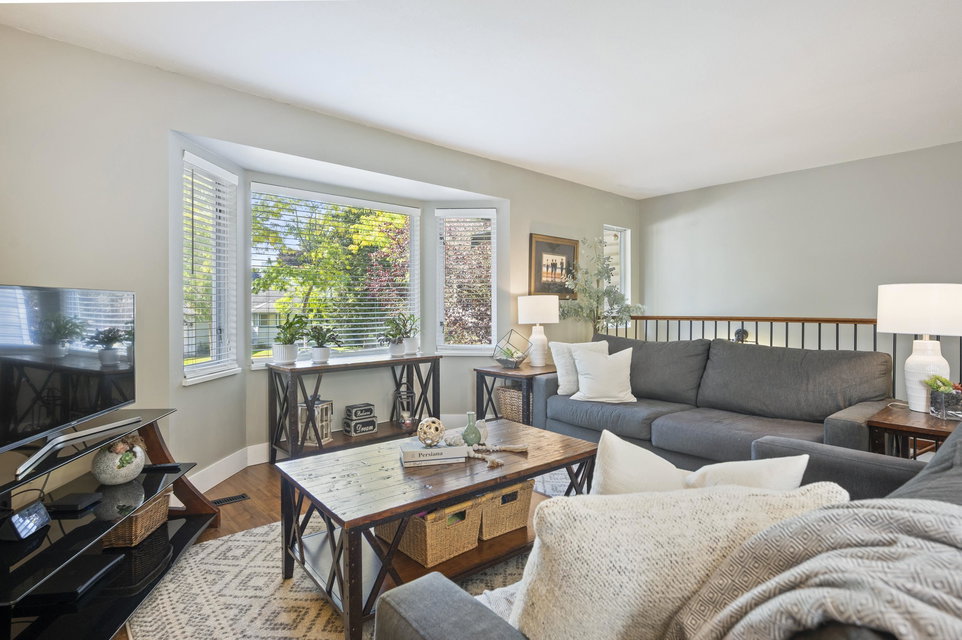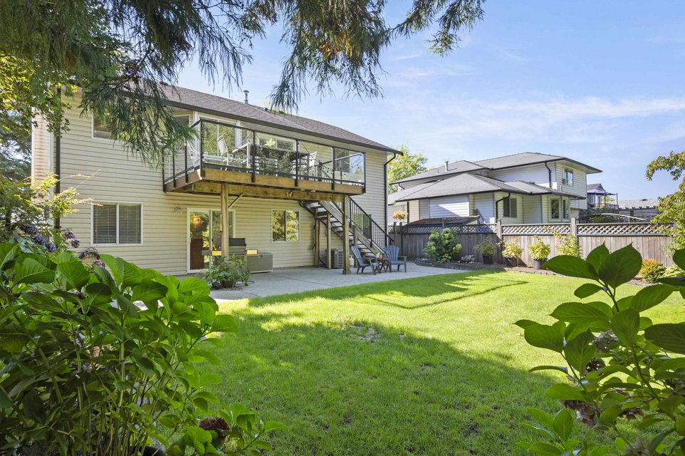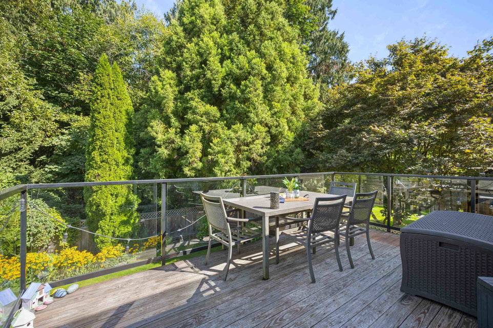 WELCOME HOME to this 4 bedroom, 3 bath PLUS DEN home ON GREENBELT with lovely level, fully fenced backyard. Located within walking distance to Elementary and High Schools, this updated home which includes AC, with huge rec room in the basement is move-in ready! Spacious entry with closet, den, rec room, laundry and 4th bedroom on the lower level with access to backyard. Upstairs on the main floor is an open living/dining room and kitchen with eating area leading to family room with access to upper deck with gas BBQ hookup and boasting mountain and greenbelt views. An easy-to maintain, private backyard and centrally located near to shopping, transit and more. Call today and make this house your new home!