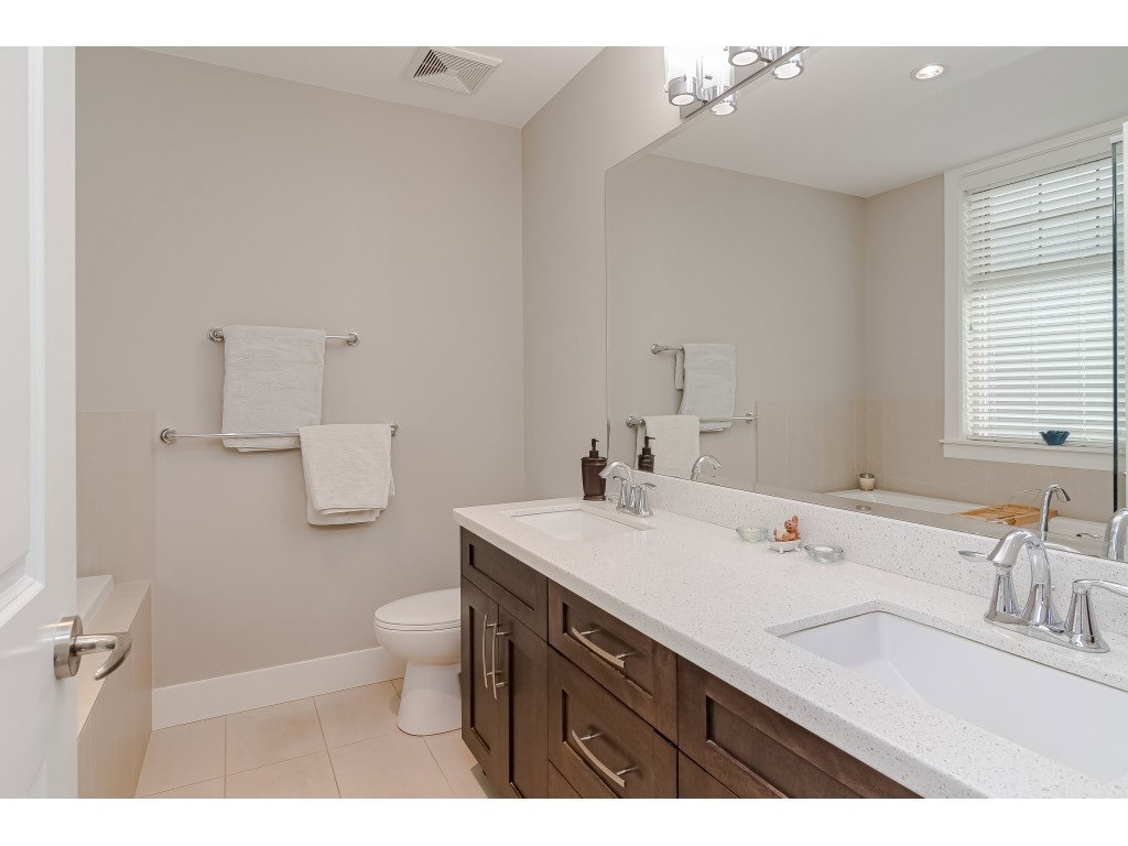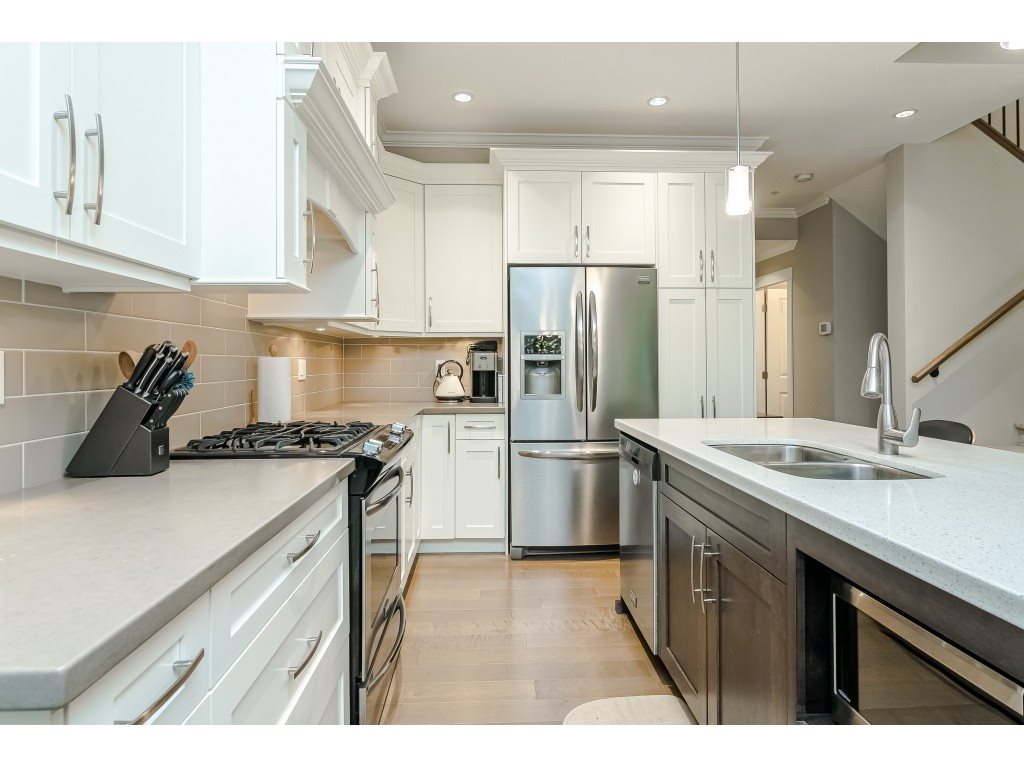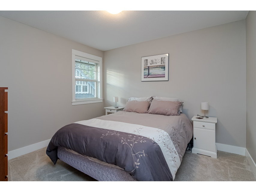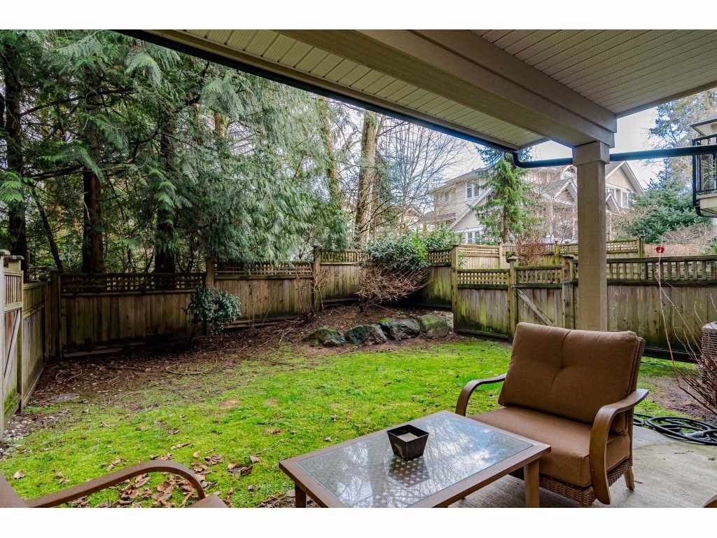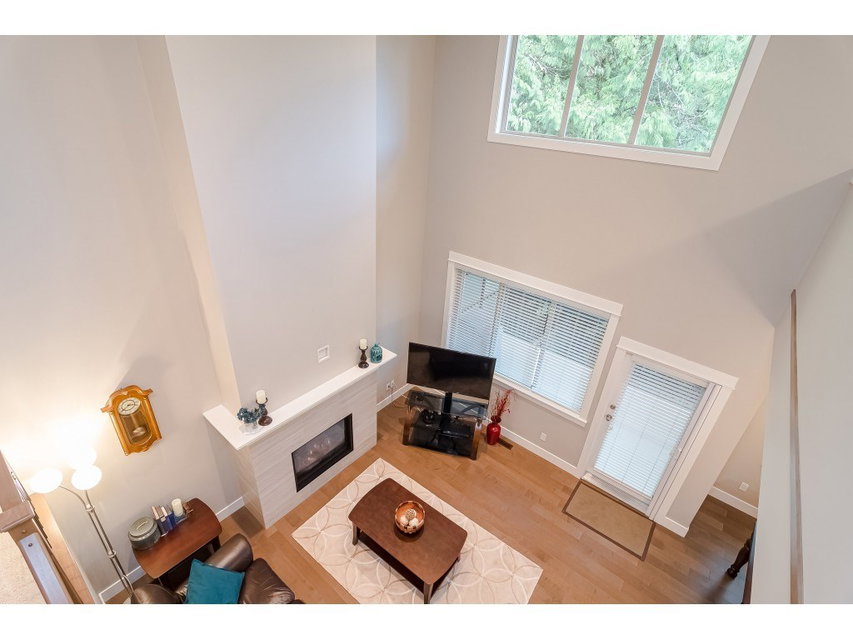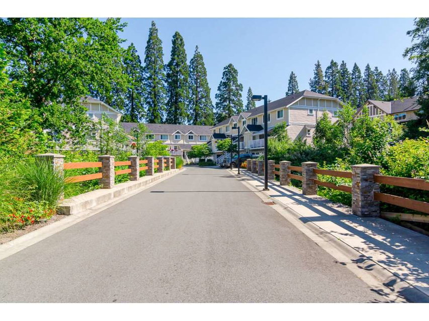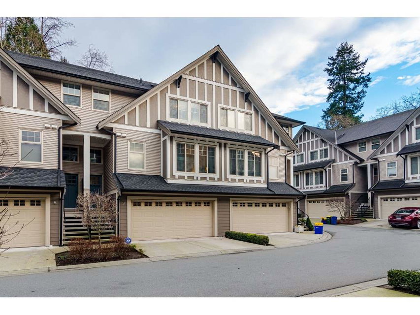 WELCOME HOME to WOODROW LANE. Rarely available, this MASTER ON THE MAIN townhome backs onto GREENSPACE. Well laid out, this unit boasts engineered hardwood flooring on the main floor, open kitchen/eating and family room with huge vaulted ceiling plus a large deck off the family room overlooking green. You will love the large master on the main with spacious walk-in and en-suite. Upstairs is a loft/open office space and a further 2 bedrooms. Enjoy using the basement which has its own 4 piece bathroom, laundry room, and leads to a fully fenced backyard. AIR CONDITIONING and built in vac plus a double SIDE-BY-SIDE garage for easy living! 1 cat OR 1 dog permitted. Call today and make this your new home!