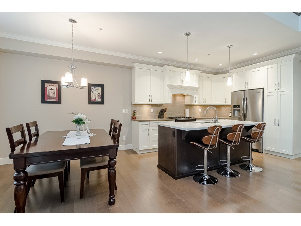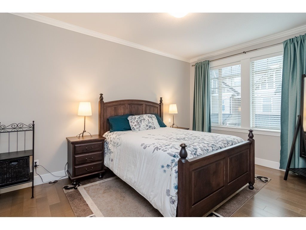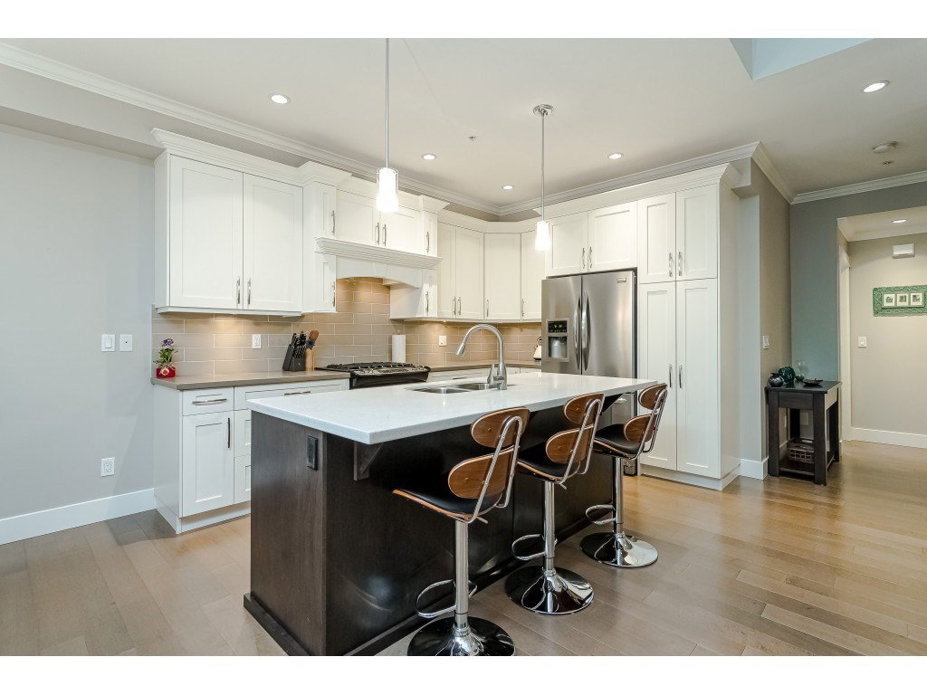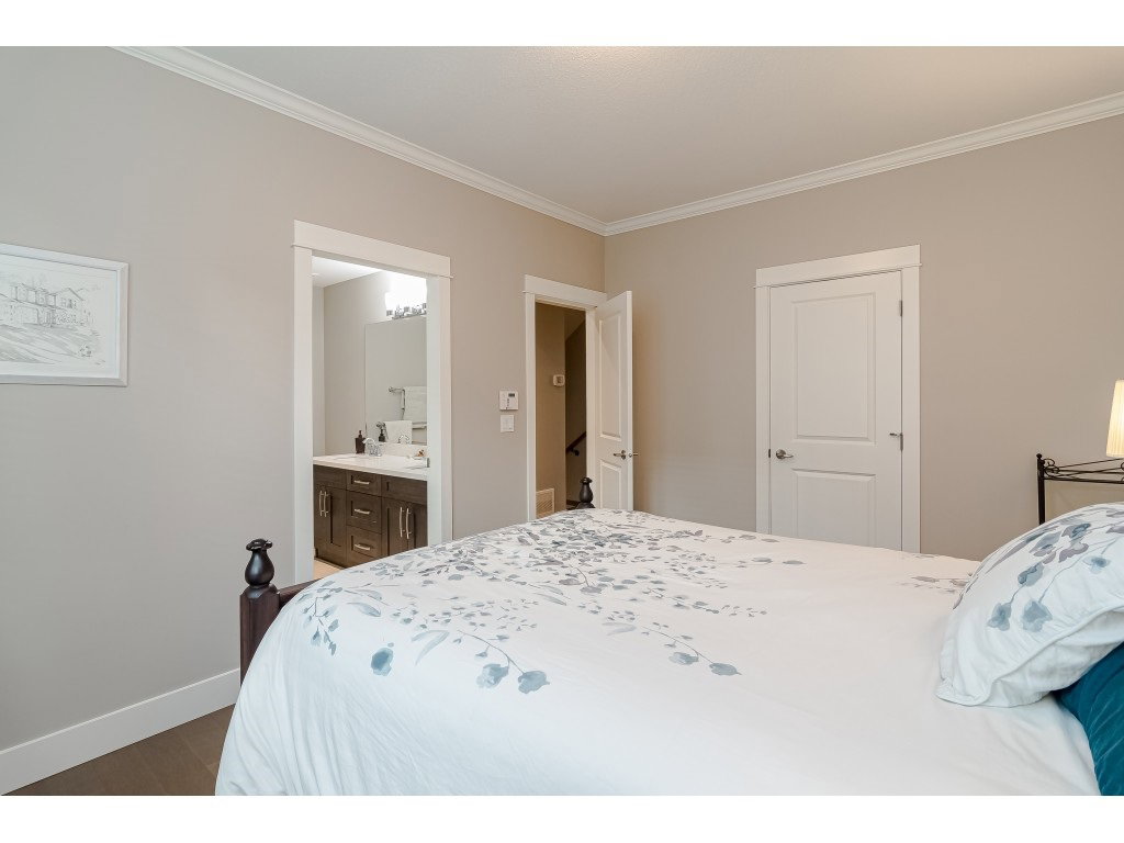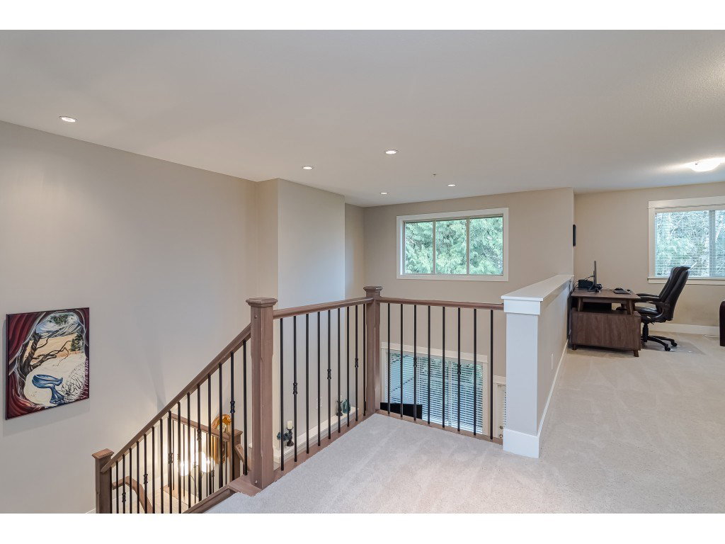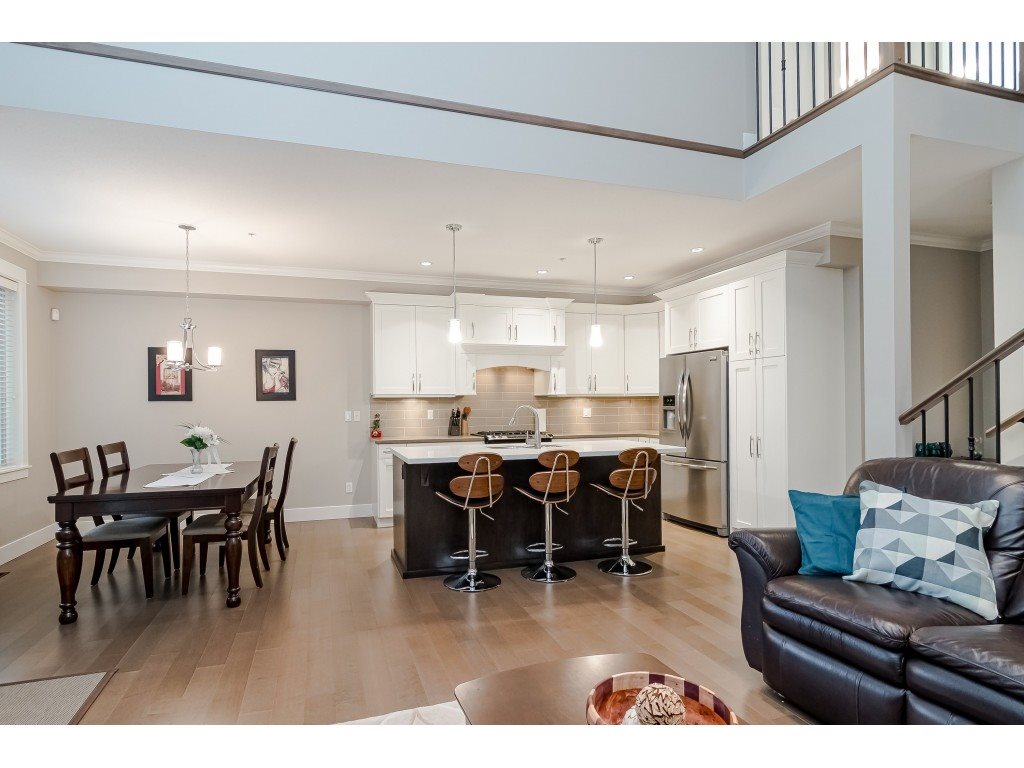 WELCOME HOME to WOODROW LANE. Rarely available, this MASTER ON THE MAIN townhome backs onto GREENSPACE. Well laid out, this unit boasts engineered hardwood flooring on the main floor, open kitchen/eating and family room with huge vaulted ceiling plus a large deck off the family room overlooking green. You will love the large master on the main with spacious walk-in and en-suite. Upstairs is a loft/open office space and a further 2 bedrooms. Enjoy using the basement which has its own 4 piece bathroom, laundry room, and leads to a fully fenced backyard. AIR CONDITIONING and built in vac plus a double SIDE-BY-SIDE garage for easy living! 1 cat OR 1 dog permitted. Call today and make this your new home!