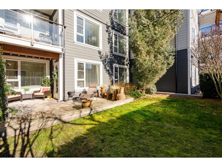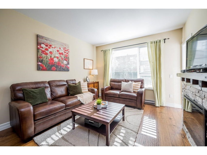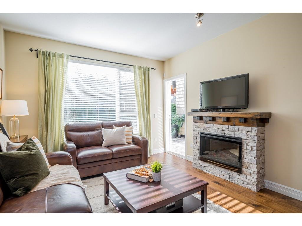 FORT LANGLEY LIVING! Welcome Home to this great opportunity to live in Fort Langley! 2-bedroom, 2 bathroom ground floor, corner unit with sunny south facing, private grassy lawn and patio to enjoy. Bedrooms on opposite sides of the unit, huge master suite with heated bathroom floor, beautiful hardwood flooring and newer carpet, custom electric fireplace and 2 parking stalls plus the convenience of a storage locker across the hall. Well maintained building located just steps from all that Fort Langley offers – trails and river walks, shopping, pubs and eateries and so much more! Call today and make this your new home!