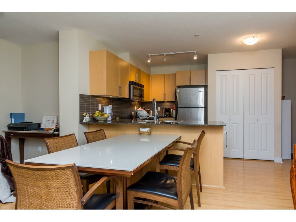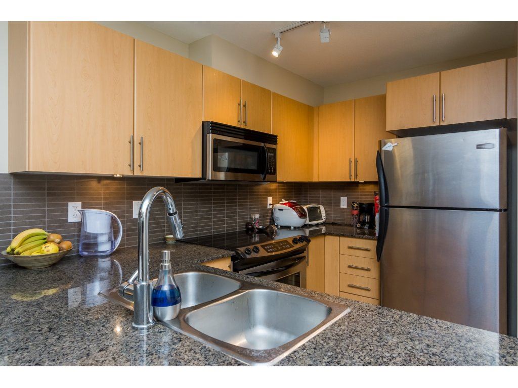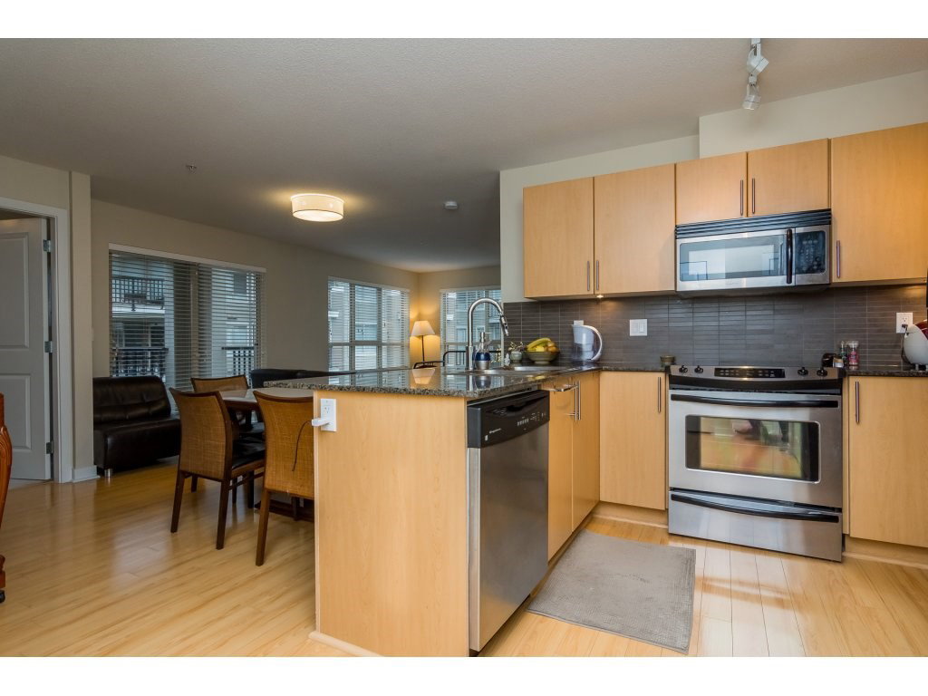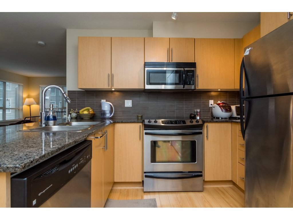 INVESTOR ALERT! WELCOME to this upper, CORNER UNIT in THE GROVE. Well laid out 2 bed plus 2 bathroom unit boasts lots of light, is well laid out with bedrooms on opposite ends of the unit, a nook for computer desk, s/s, granite, laminate and newer carpet and paint, plus in-suite laundry. Large covered deck has mountain views. Within walking distance to shops, restaurants, movie theatre, Calvolth Transit Exchange, and quick access to Highway #1. 2 side by side parking spots plus storage locker. Great opportunity for first time buyers or Investor. Call today and make this your next home!